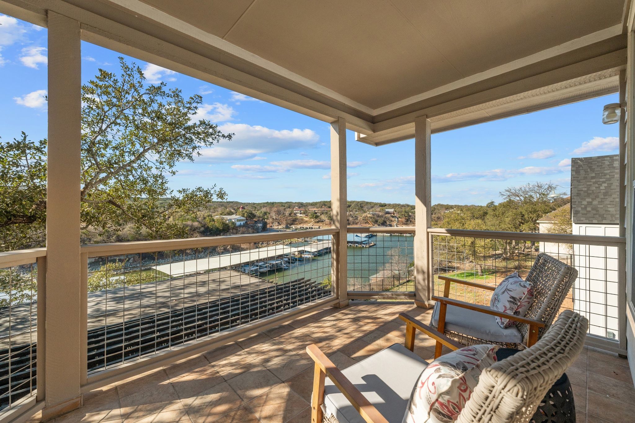 Perched above Lake Travis in Briarcliff, this beautifully updated retreat blends elevated design with easy, everyday comfort. Sunlight spills across the wood-finish tile floors, guiding you through open, welcoming spaces where lake views quietly steal the show. The kitchen is the heart of it all — updated cabinetry, kitchen Aid appliances, designer touches, and room to gather whether it’s weeknight dinners or weekend friends dropping by. Pantry behind kitchen is so functional and lots of storage. Just off the living area, a built-in banquette in the bay window creates the sweetest little corner for morning coffee, homework sessions, or sunset wine with a view. And then… the decks. Layered outdoor living spaces offer shade, privacy, and room to breathe. Host long summer dinners. Read in the afternoon breeze. Watch the sky change colors over the water. This home was made for indoor-outdoor living. With the ability to permit for a dock, your Lake Travis lifestyle can grow right along with you — boat days, paddleboards, sunset cruises, and spontaneous evenings on the water. Roof was recently installed in fall of 2025. Thoughtfully updated and beautifully positioned-A place to simply call yours.