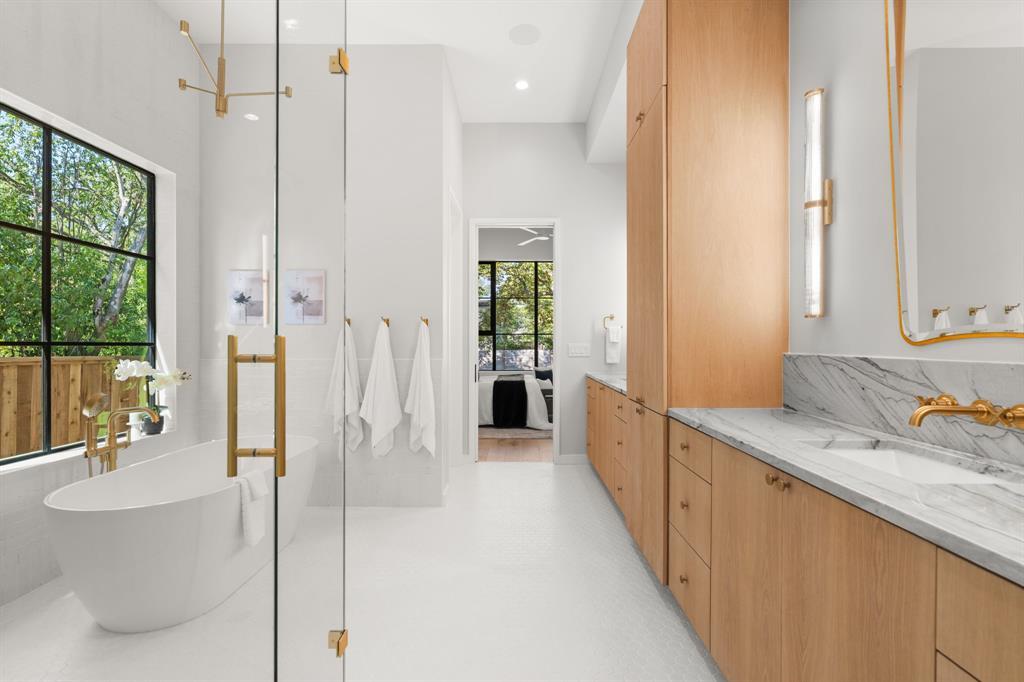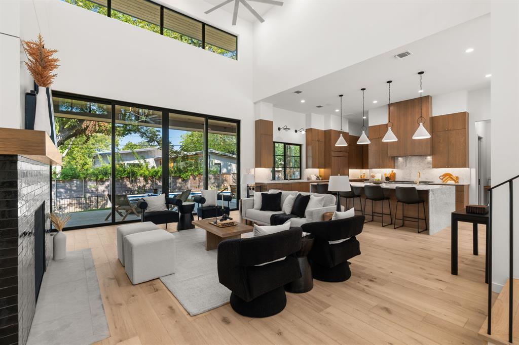 This new construction home is a masterpiece of modern design, offering 5 bedrooms and 5 full bathrooms across a thoughtfully designed layout. Step through the custom 10’ white oak front door into a dramatic main living space, where soaring 20+ foot ceilings and oversized Ram steel sliders set the stage for seamless indoor-outdoor living. Beyond the glass, a sparkling pool, expansive covered patio, built-in outdoor kitchen, and custom outdoor gas fire pit create the ultimate backyard retreat for entertaining or unwinding in style. The chef’s kitchen is a statement of elegance and performance, featuring striking marble countertops, a Wolf/Sub-Zero custom panel appliance package, and a spacious butler’s pantry complete with a second dishwasher. A custom dry bar built into the dining area adds sophistication to every gathering. The home’s five bedrooms are designed with flexibility in mind, including a convenient secondary bedroom on the main floor. Also on the main floor, the spa-like primary suite offers a true retreat with a soaking tub and calming finishes, including access to the covered patio. Throughout the home, thoughtful design abounds—from rich tones of green and blue woven into the interiors, to hidden storage under the stairs, to a custom entry drop zone that marries beauty with function. A three-car garage with an added storage room ensures space for every need, while details like the oversized front entry and curated finishes highlight the craftsmanship at every turn. This home blends bold design with livability—an unforgettable new build in one of Austin’s most desirable neighborhoods.