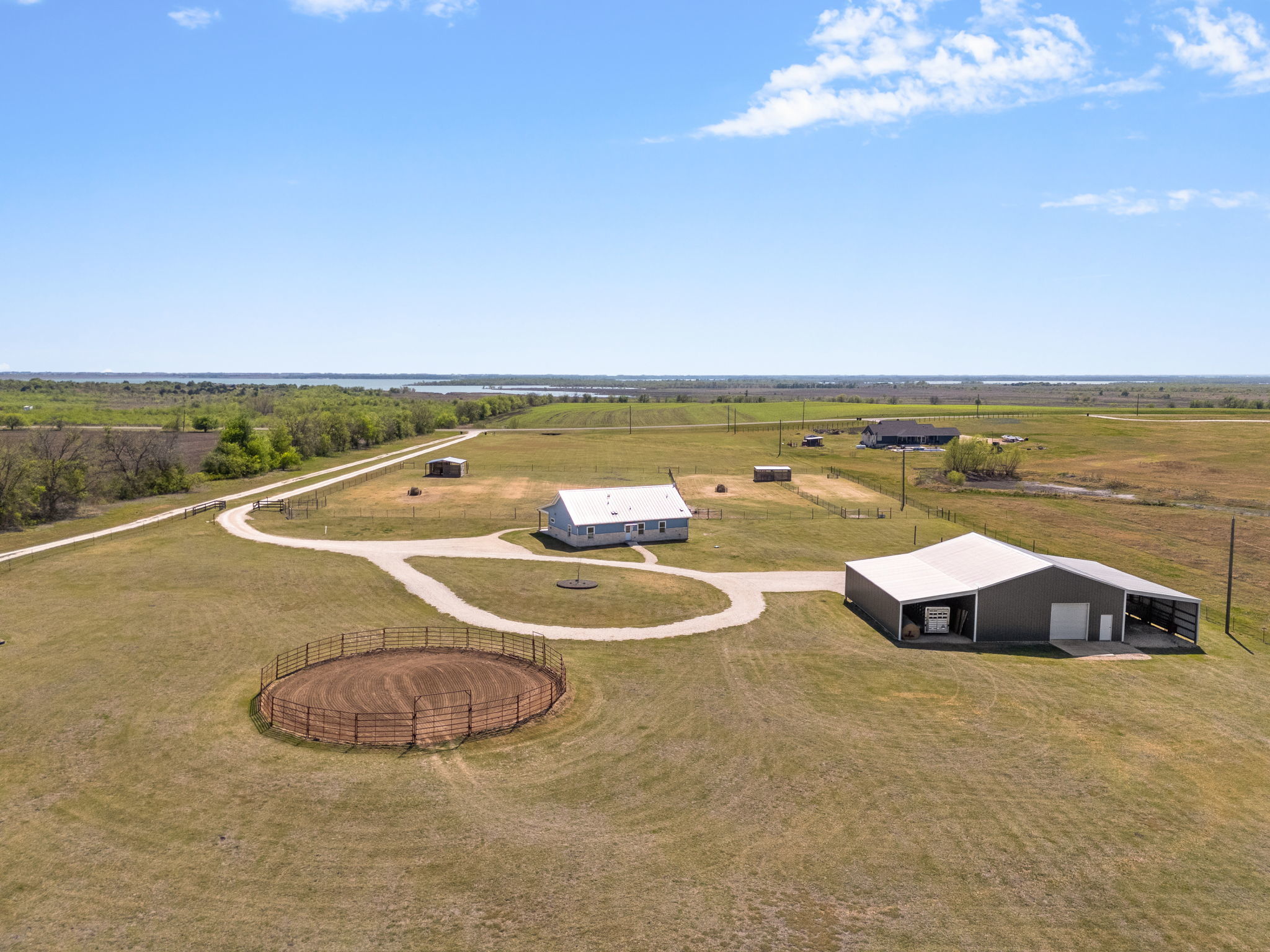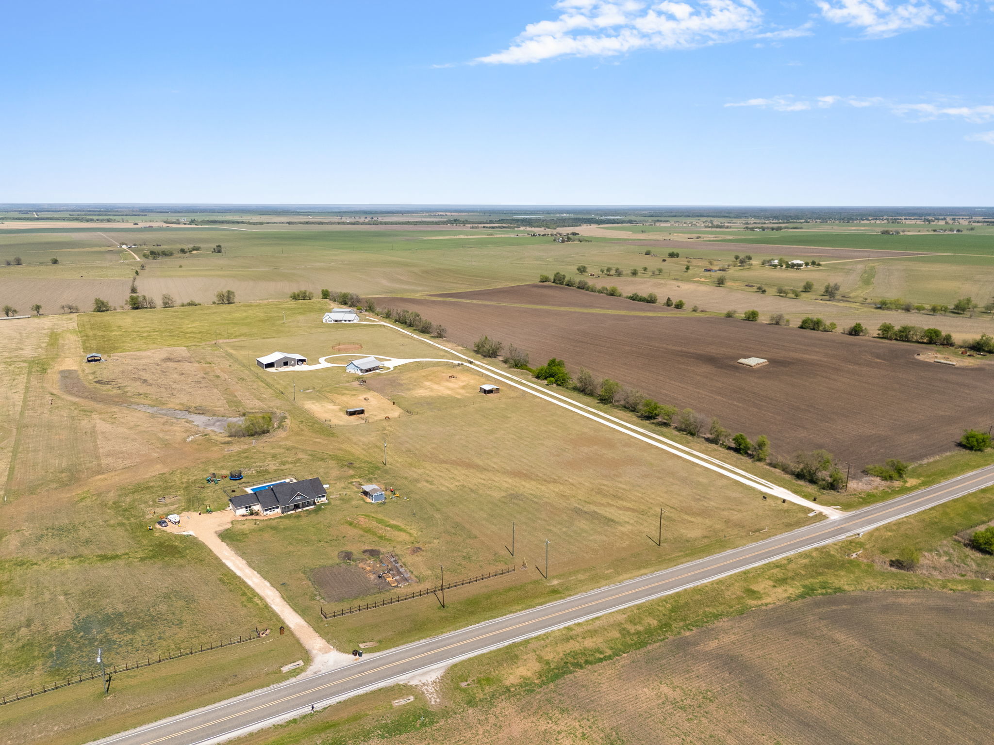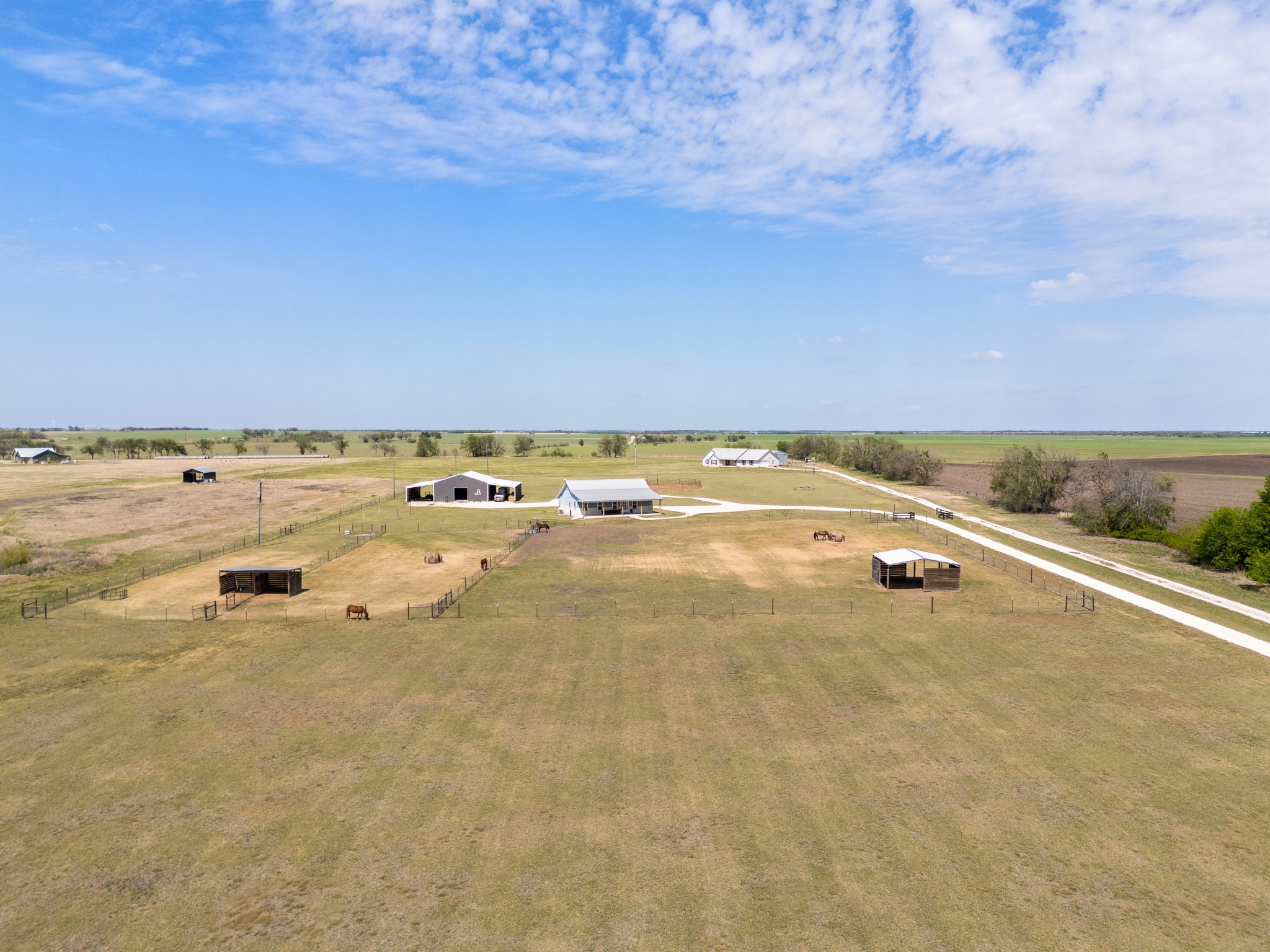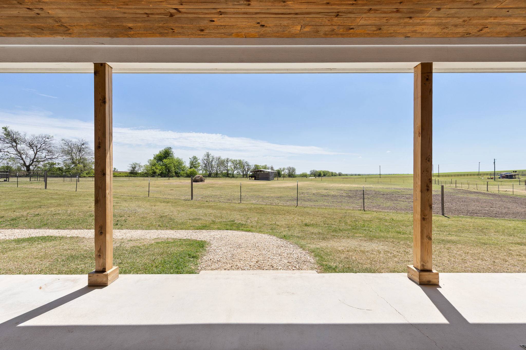 Set on 10 private acres in the quiet countryside of Granger, Texas, 22001 FM 971 offers a unique opportunity for equestrian use, small-scale ranching, or a private homestead. Currently operated as an equine therapy center focused on body work, the property is thoughtfully improved and ready for continued use or adaptation to fit a variety of needs. The 1,650 square foot home features 2 bedrooms and 2 bathrooms with a functional, open layout filled with natural light. A spacious 600 square foot covered porch overlooks the property, creating an ideal setting to enjoy the surrounding landscape. A durable metal roof and extensive gravel work, including an approximately 900-foot entry driveway, circular drive, additional parking areas, and walkways connecting the home, add both function and ease of access. Designed with horses in mind, the land includes multiple fenced pastures with 2” x 4” no-climb fencing, T-posts with safety toppers, and electric hot wire. Each pasture is equipped with underground automatic water systems and shelters, including a 24’ x 24’ shelter in the 1.15-acre pasture and 12’ x 12’ shelters in the additional pastures. A catch pen, connecting gates, and over 4 acres of additional fenced area around the home and barn provide flexibility and efficient movement throughout the property. Additional equestrian features include a 60’ round pen with arena sand and a 12’ x 12’ concrete wash rack. The 80’ x 50’ shop offers exceptional functionality with a 40’ x 50’ main section on concrete, two enclosed 20’ x 50’ lean-tos, 14’ interior walls, two 10’ roll-up doors, and a walk-through door. Underground water, electric, and internet are already in place, along with an automatic steel entry gate with remote and keypad access. This property offers versatility, infrastructure, and the space to create a wide range of possibilities.