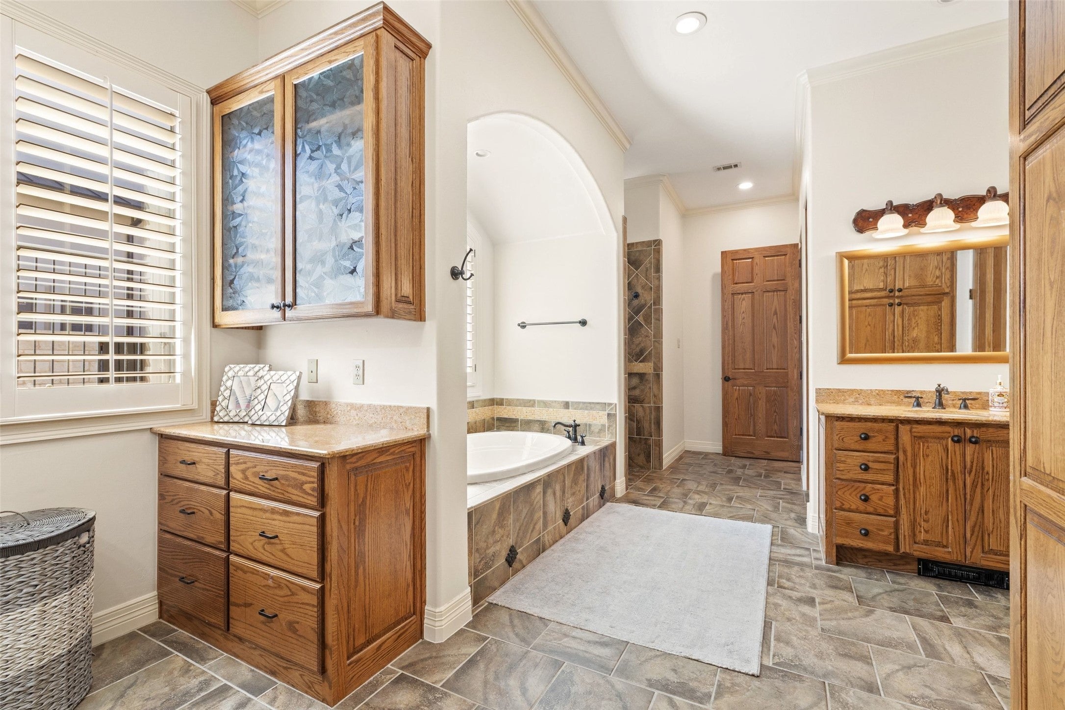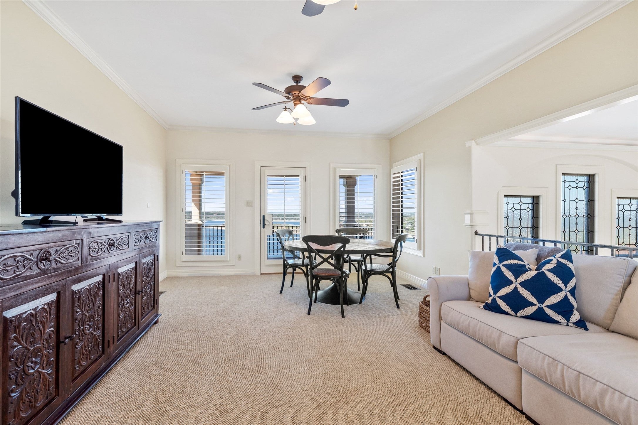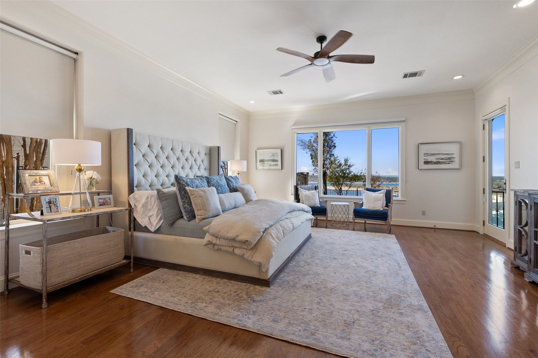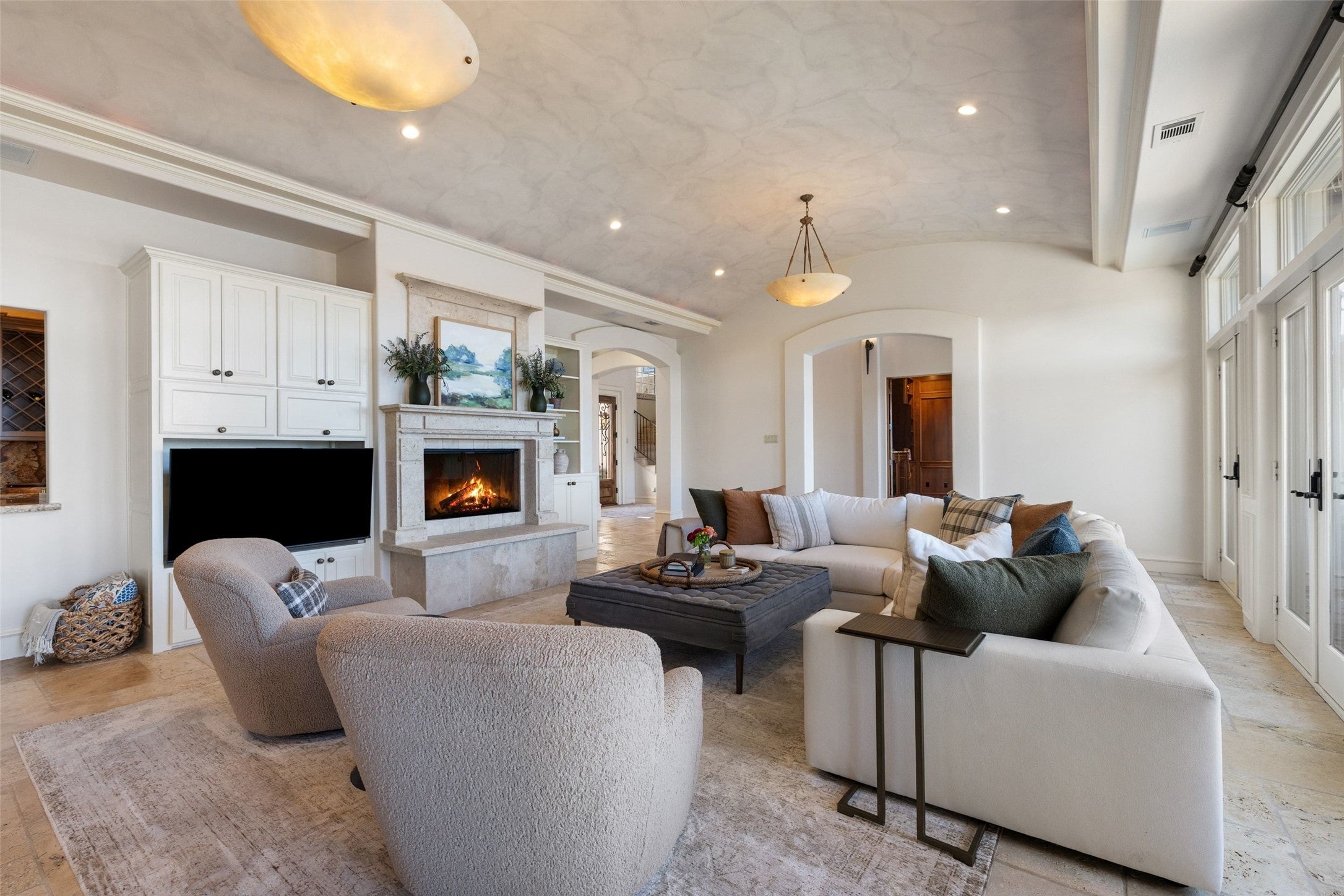 Overlooking sparkling Lake Travis, this Italian-villa-inspired waterfront estate offers one of the most spectacular views in Lakeway and sits high on a rare two-acre homesite within the prestigious, gated community of the Water Front. The home is setback off a quiet cul-de-sac behind a private gated entrance and long driveway, providing an exceptional sense of privacy and scale that’s hard to come by in the coveted Old Lakeway area. Combined with expansive manicured lawns, lush landscaping, and an elegant courtyard with a striking fountain pool, the curb appeal is dramatic and impressive. Custom built by award-winning Vintage Builders, the home showcases outstanding craftsmanship and timeless architectural details including handpainted barrel ceilings, extensive built-in woodwork, and an infinity-edge pool overlooking the deep waters of Lake Travis. The floorplan, spanning approximately 5,200 SF, was thoughtfully designed with beautiful spaces for everyday comfort and sophisticated entertaining. Multiple living and dining areas are found throughout the home, as well as dual master suites on the first floor and two additional guest bedrooms upstairs both with private en suite bathrooms. Plus unique features like the grand foyer, wood-paneled family room, and two-story study add flair and multi-purpose function. With unforgettable views, exquisite style, and resort-style living 5 Water Front Avenue is a one-of-a-kind lakefront estate in the heart of Lakeway, the caliber of which rarely becomes available.