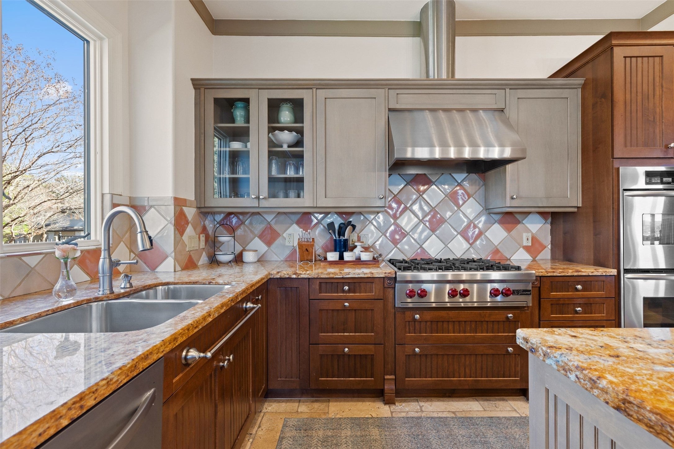 - Built-In Oven, Dishwasher, Gas Cooktop, Disposal, Microwave, Plumbed For Ice Maker, Refrigerator, Stainless Steel Appliance(s), Bar Fridge