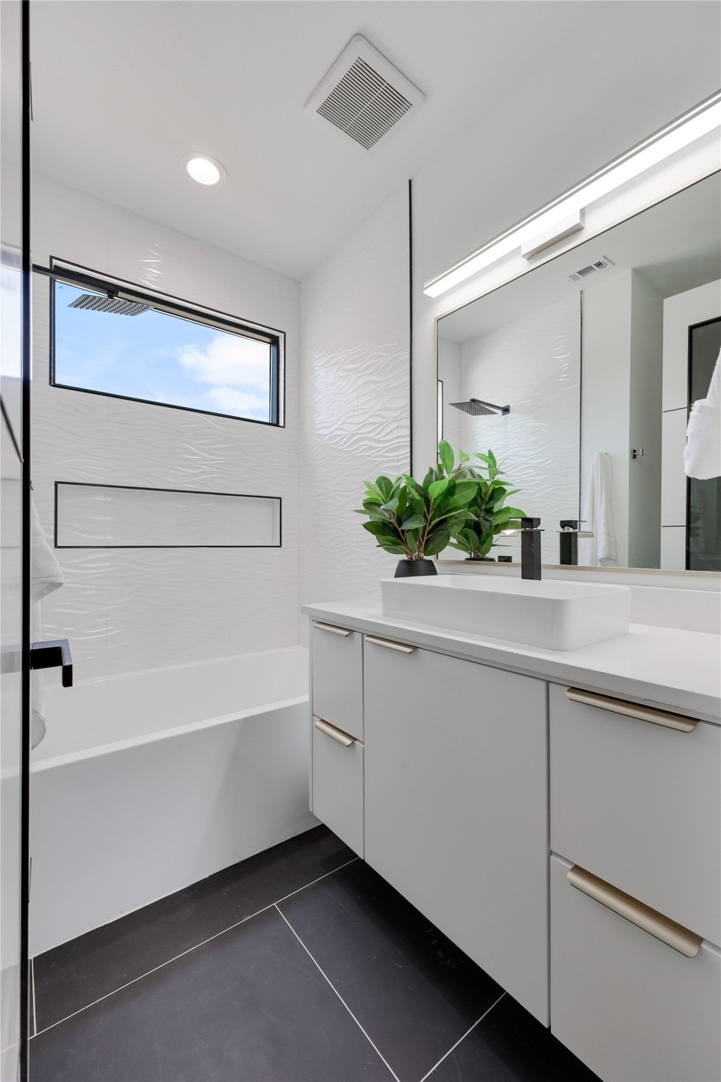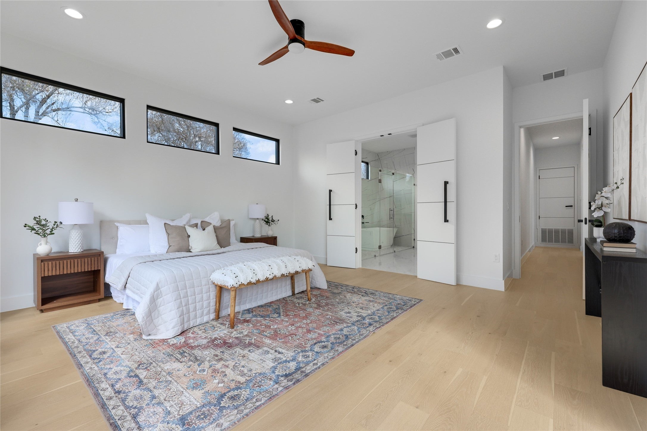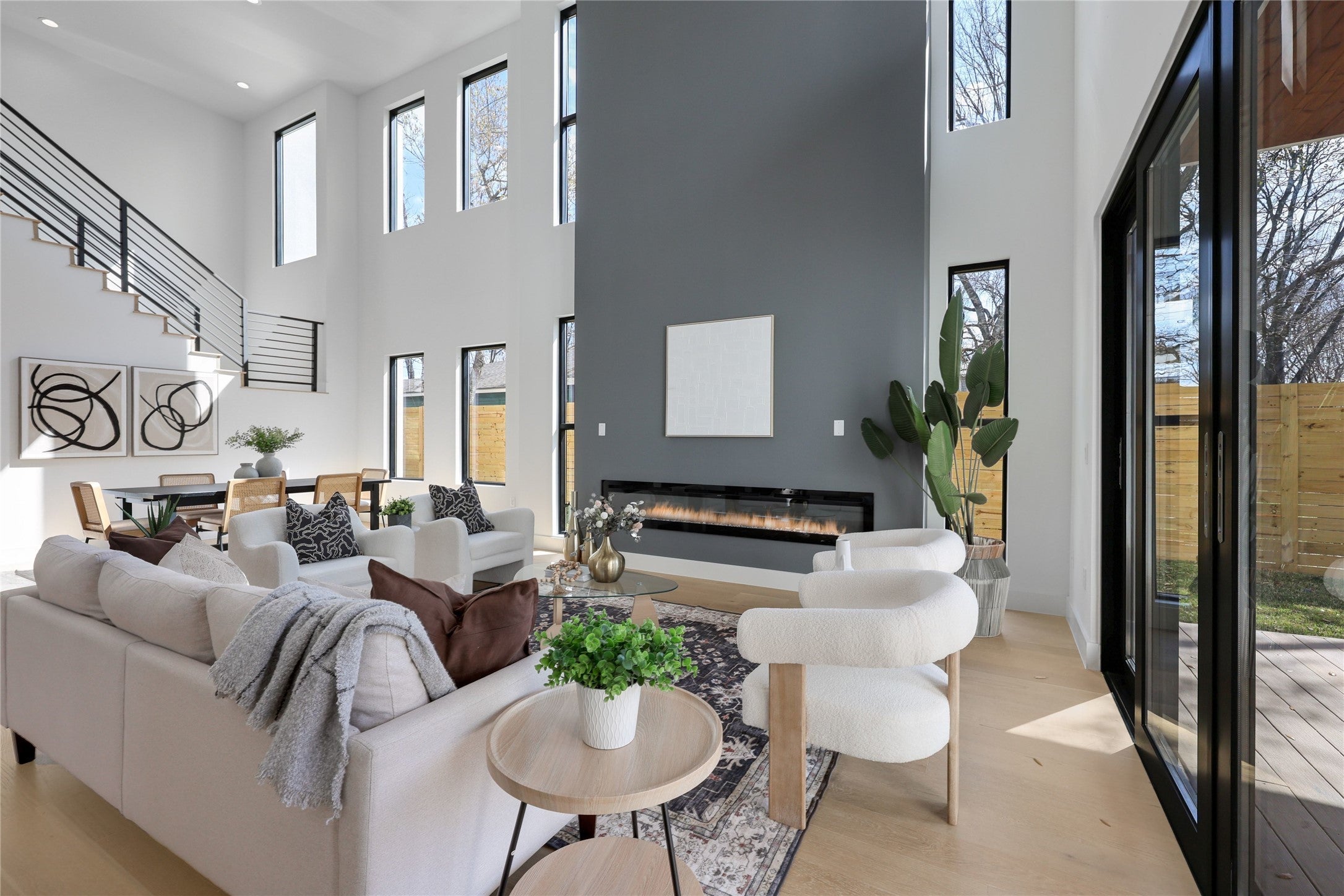 NEW CONSTRUCTION - STATEMENT HOME IN CRESTVIEW. Located in the heart of Crestview, this striking modern residence is designed for those who want more than just a great address. This home reflects intention, confidence, and presence. With coveted south rear exposure, the property is unusually well positioned for natural light, outdoor living, and poolside entertaining. No compromises here! This site allows architecture and lifestyle freedom of expression The home offers 3,272 square feet of conditioned living space, complemented by an attached two-car garage that meaningfully enhances daily functionality, storage, and total under-roof coverage. The layout is flexible, yet deliberate. Featuring five bedrooms and five full bathrooms in a home that enables community while also offering separation is hard to find. The home communicates quality through proportion, material selection, and design. Solid-core interior doors add weight and sound control throughout, while French oak floors bring warmth and texture to the modern design. The kitchen is centered around a quartz waterfall island with custom cabinetry and a premium appliance suite. The color color palette is cohesive and creates a calm, timeless interior, balanced by dramatic 40-foot ceiling volumes that flood the main living spaces with light. A built-in gas fireplace anchors the primary living area as a sculptural focal point. The home supports both entertaining and everyday use, making the space equally suited for quiet mornings or hosting with ease. Indoor to outdoor extension is key to the design. Black framed multiglides extend to covered patios directly to the pool. A south-facing rear exposure captures consistent daylight and enhances year-round usability. Clean lines and strong proportions result in a home that makes a statement without shouting
