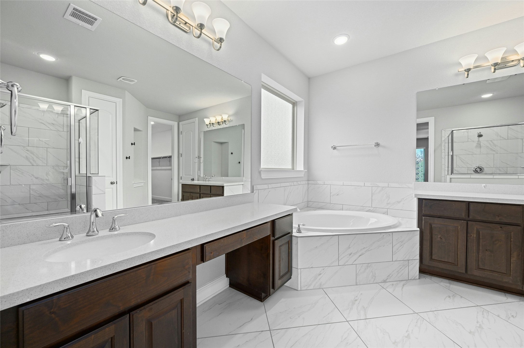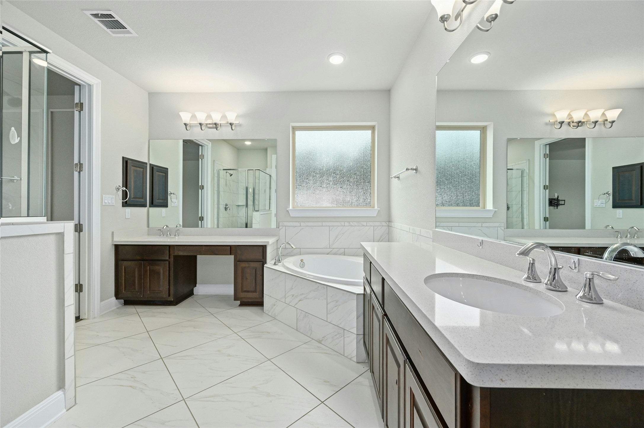 Located in the highly sought after Travisso neighborhood, with upgrades throughout. The home features four bedrooms, all with ensuite baths, and a half bath. Additional structural upgrades include a separate office, media room with built-in desks, and an over-sized game room with partial hill country views. Upon entering, a stately foyer with 20’ ceilings gives way to the formal dining room and open concept living. The vast ceilings flow seamlessly into the family room, which is showered with three layers of windows and an abundance of natural light. The open floor plan features a large kitchen with an eat-in center island, stainless steel appliances, gas cooktop, ample countertop space, and a butler’s pantry. The main level primary suite offers dual vanities, a large walk-in closet, a garden tub and a separate shower. Perfect for entertaining, the kitchen is accented by a covered back patio with soaring 20’ ceilings and a substantial back yard. Enjoy the Travisso lifestyle in the Texas hill country where the amenities include a clubhouse, miles of trails, a fitness center and a resort style pool area.
