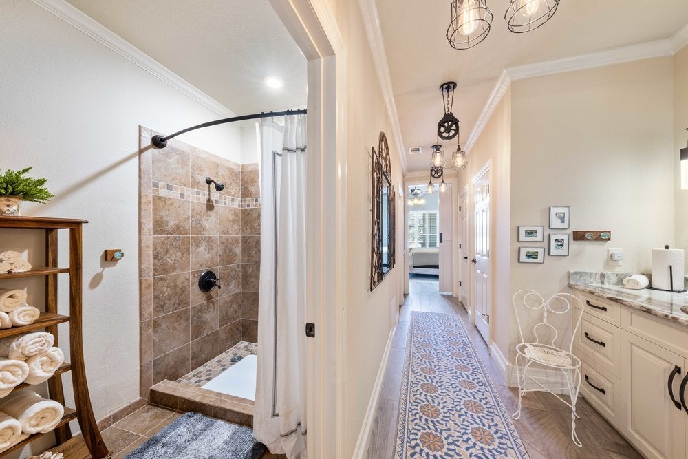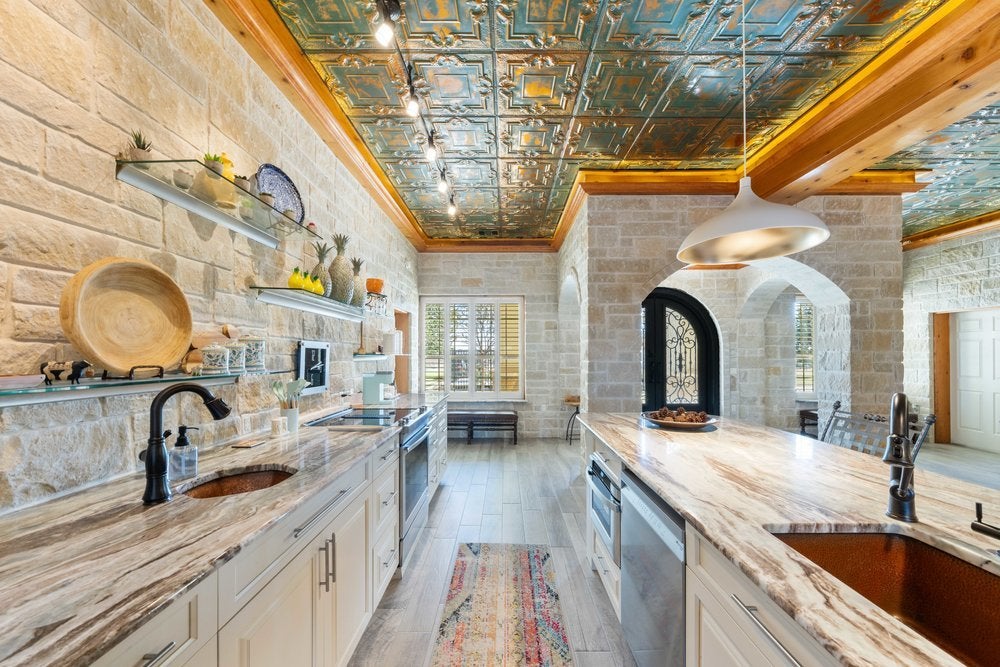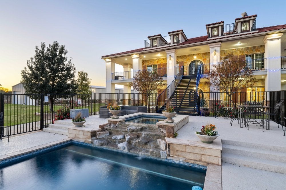 Set along the banks of the Llano River, this exceptional gated Hill Country estate offers privacy, space, and refined living on approximately 6 acres. The main residence features a thoughtfully designed open-concept layout with a chef's kitchen, spacious dining and living areas, two generous bedroom suites, and a private office. Soaring architectural details and deep wraparound covered porches create a seamless indoor-outdoor lifestyle with peaceful river views. Designed for comfort and versatility, the property also includes multiple private-entry guest suites, ideal for extended family or visitors, along with a detached shop and 4-car garage for storage, hobbies, or recreational use. Resort-style outdoor amenities include a sparkling pool and spa, firepit gathering area, and a fully equipped pool house. Located just minutes from the heart of Llano, this rare riverfront estate offers luxury living in a truly special setting.