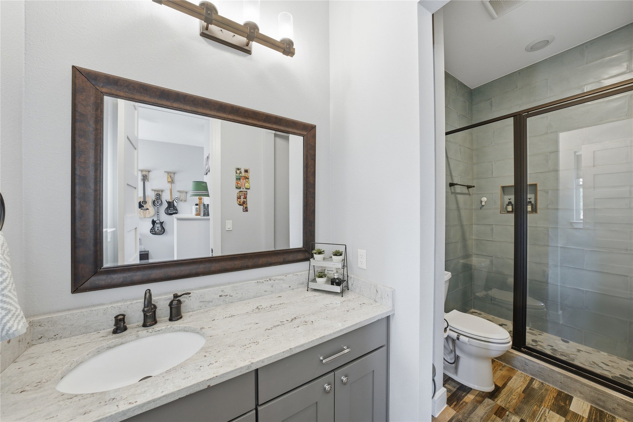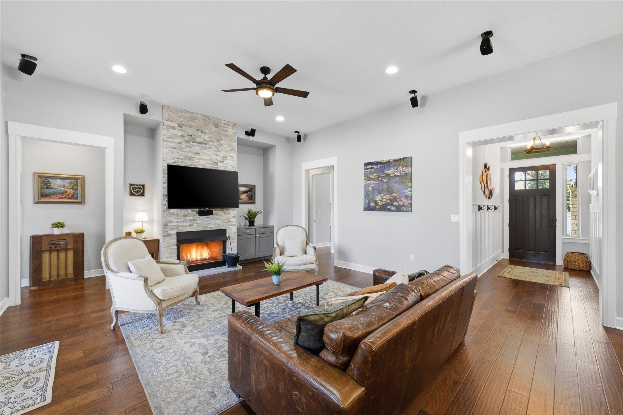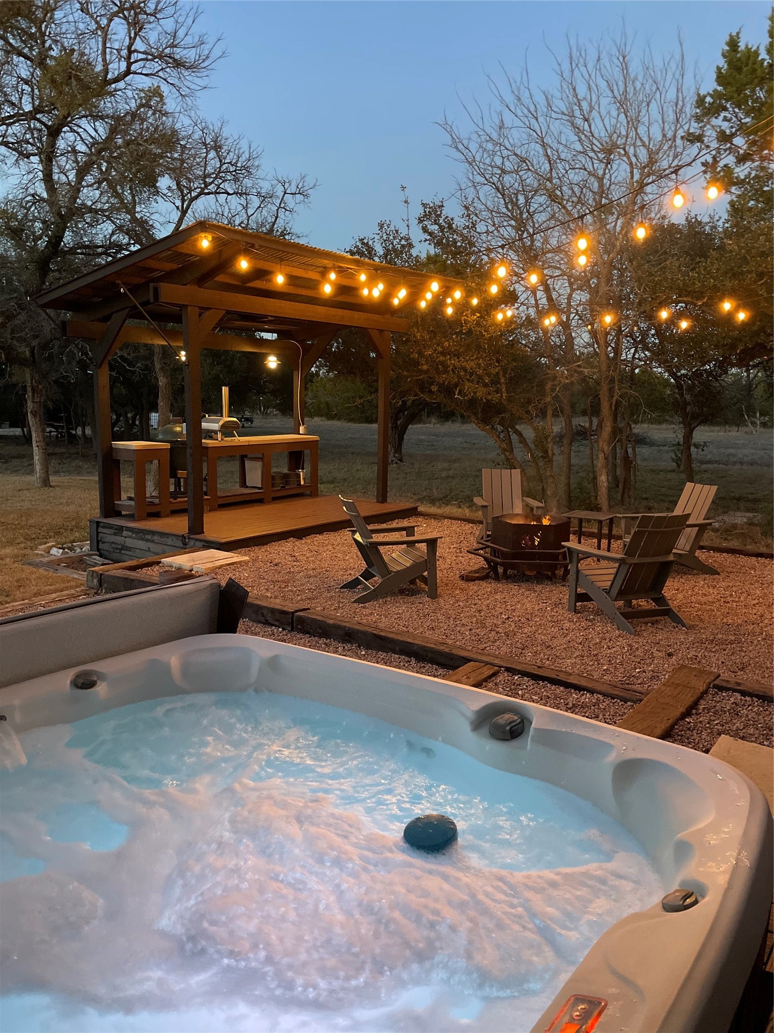 Discover country living at its finest in this modern craftsman custom home on 2.91 acres—peaceful rural serenity with modern amenities just 15 minutes to Georgetown. This one-story home offers 4 bedrooms, 3 full baths, and 2 half baths, plus a bonus room and a separate media room. Three bedrooms feature private ensuite baths, and the home is filled with warm natural light, wood flooring, and custom finishes throughout. The chef’s kitchen shines with granite countertops, a farmhouse sink, stainless appliances, and abundant prep space, with a separate dining room ready for gatherings. A private office with its own exterior entrance and dedicated half bath offers ideal flexibility for a home-based business (and can function as a 4th bedroom). The bonus room is perfect for a gym, playroom, or extra workspace, while the separate media room makes an ideal game room, music studio, or second living area. Step outside to an outdoor oasis featuring a covered pergola grill area with stone countertop, hot tub, and adjoining fire pit—made for entertaining under wide Texas skies. Enjoy in-ground irrigation plus raised-bed drip lines. Car enthusiasts will love the 900 sq. ft. workshop with spray-foam insulation, 125-amp service, a hydraulic car lift, and upper loft storage. Full RV hookups include 50-amp electric, water, and septic. The property is fully fenced with an electric gate. Tesla solar panels and two Tesla Powerwall's offer backup power with true off-grid potential and added peace of mind. A private water well includes a 1,500-gallon holding tank, full-house water softener and filtration system, plus a private septic system—supporting self-sufficient country living. A rare opportunity to enjoy craftsmanship, comfort, and Texas charm within easy reach of town—come experience it in person.