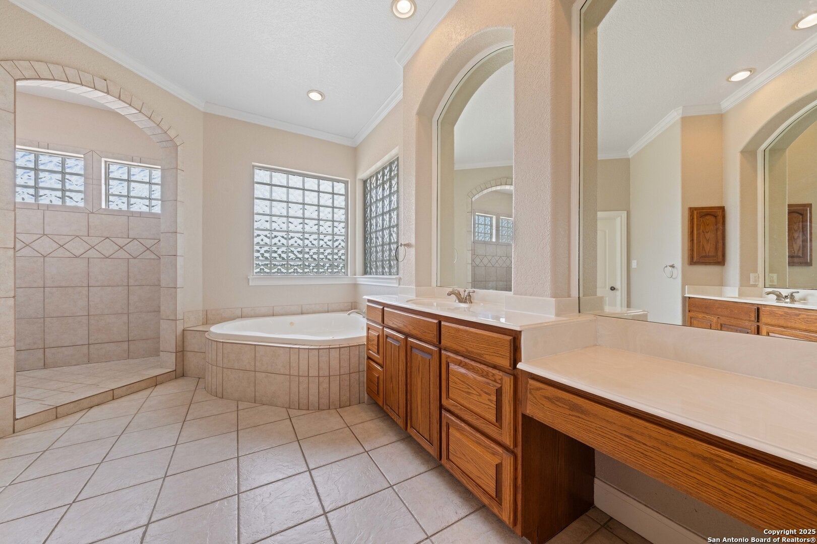 Nestled on a spacious .62-acre corner lot in the highly desirable Fair Oaks Ranch, this stunning Mediterranean-style custom home offers timeless elegance and exceptional comfort. Boasting 5 bedrooms, 3 1/2 bathrooms, and a three-car garage, the home features a thoughtfully designed open floor plan perfect for everyday living and entertaining. The heart of the home is a chef's kitchen which opens to a breakfast nook and a cozy living room that has access out to the pool. Three of the bedrooms are located on the main floor and the other two bedrooms are upstairs. The primary suite, conveniently located on the main floor, includes a spa-like bath with dual vanities, a soaking tub, and two large walk-in closets plus access out to the pool. Outdoors, enjoy a park-like backyard complete with a large covered patio and a sparkling pool, ideal for gathering year-round. Located in a prime location feeding into top-rated Boerne schools, this home offers luxury, space, and convenience in one of the Hill Country's most sought-after communities.