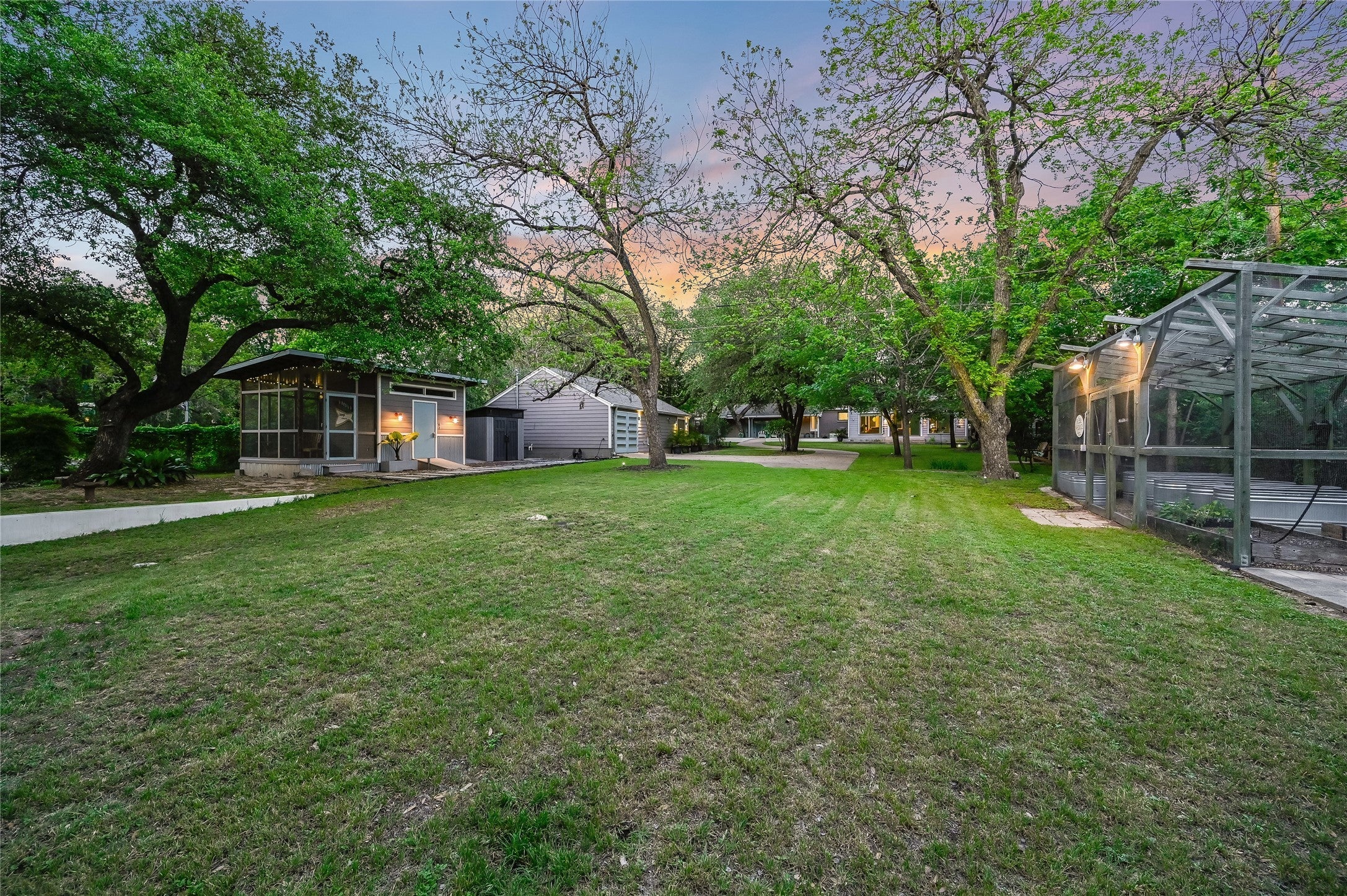 Location. Privacy. Space. Beauty. Access. Versatility. Multi-Generational or income producing and zoned for even more expansion: this iconic Allandale estate has it all, and more. This property features two separate meticulously maintained & upgraded homes, with zoning for a third structure. The Main Residence is a 3 bed/2 bath, 2596 SF home featuring a Great room with panoramic windows and sliding doors opening to the park-like backyard, 2 gas fireplaces, hardwood floors, low-E windows, a newer roof & a flexible in-law layout ideal for guests or growing households. The second House is a 1 bed/1 bath, 836 SF home featuring International Modern-style design with vaulted ceilings, large windows, a full kitchen, a spacious living area, walk-in closet, gym, and heated/cooled laundry + storage, & a private entrance and patio. Consistent rental income with repeat guests. Perfect for multi-generational living, guest quarters, or long-term investment. All of this is located on an expansive .86-acre estate lot featuring tree-shaded grounds, a screened-in porch overlooking Shoal Creek, a large enclosed garden with raised beds, two storage sheds & a carport workshop with ample storage space, a detached outbuilding for lawn tools, sports gear, or creative use, a circular driveway, extra parking pad, drive-through carport, an irrigation system, alarm system, landscape lighting, & broadband-ready. Located in a Cyclist-Friendly Location with direct access to Shoal Creek Trail, where safe, dedicated bike paths provide a secure & scenic ride through Austin's greenbelt. Allandale is one of the City's best neighborhoods for biking and commuting. Minutes to Burnet Road corridor, The Grove, Central Market, Seton and Austin Heart hospitals, and UT. 15 minutes to downtown Austin and Bergstrom International Airport. Zoned to Highland Park Elementary, a National Blue Ribbon school, Lamar MS & McCallum Fine Arts Academy.
