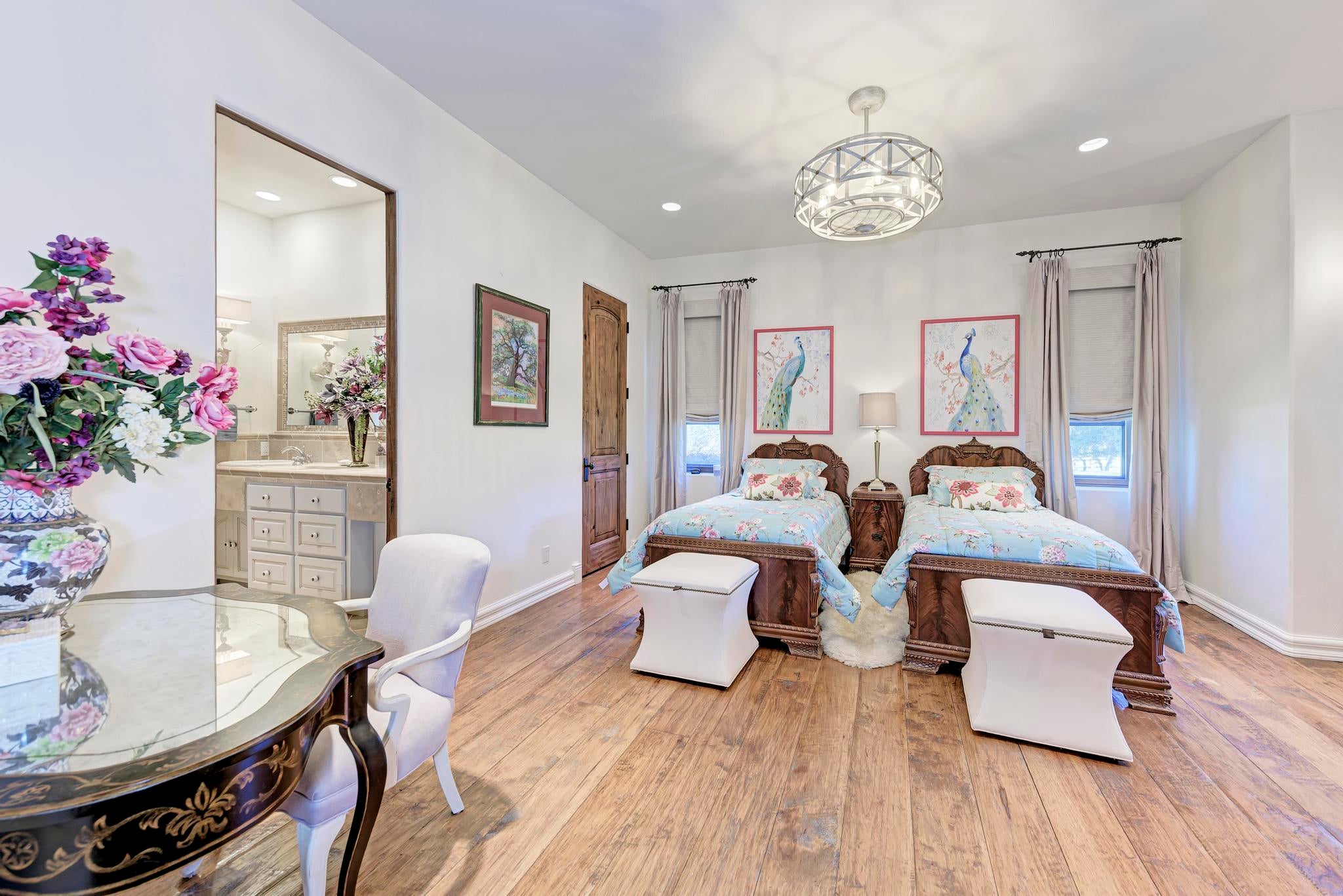 Furniture negotiable - 4BR/4BA/3HalfBA/3Garage. A Custom Estate on 4.3+ Acres in Gated Equestrian Community – Membership waiver to Horseshoe Bay Resort, featuring four championship golf courses, premier amenities, and nearby lakes for boating and recreation. Beautifully appointed custom home is set in prestigious Bay Country with rolling terrain and white fencing. Enjoy a sparkling pool with waterfall, meditation garden, and access to neighborhood horse trails. Bay Country is a recognized bird sanctuary and may qualify for ag exemption on unimproved acreage. Walls of windows capture scenic views and fill the home with natural light. The gourmet kitchen features Bentwood cabinetry, gas range, cabinet-front Sub-Zero refrigerator, and island drawers. Hand-scraped hickory floors, antique French barn pavers, and custom Santa Fe doors add warmth and character. Flexible floor plan includes formal living and dining, family room, study, game room with half bath, and separate guest quarters with kitchenette and private entrance. The primary suite offers a balcony, fireplace, dual vanities, soaking tub, walk-in shower, and cedar closets. 3-acre minimum lots create a private, small-community feel with space for horses. Owner is a licensed Texas Realtor.