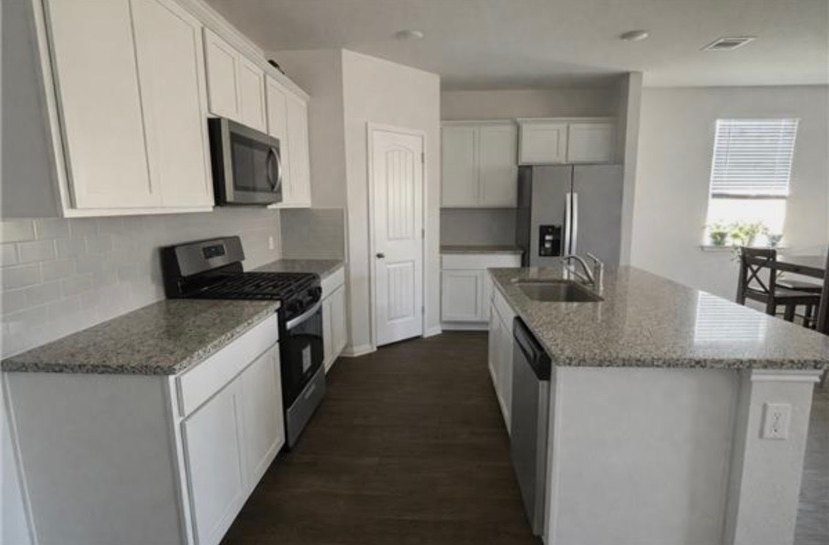 Move-in ready 4-bedroom, 2-bath home with an open layout and modern finishes. Features include LVP, granite countertops, stainless steel appliances, subway tile backsplash, and a large kitchen island. Spacious primary suite with dual vanities, walk-in shower, and walk-in closet. Conveniently located near I-35, shopping, dining, and Georgetown schools.