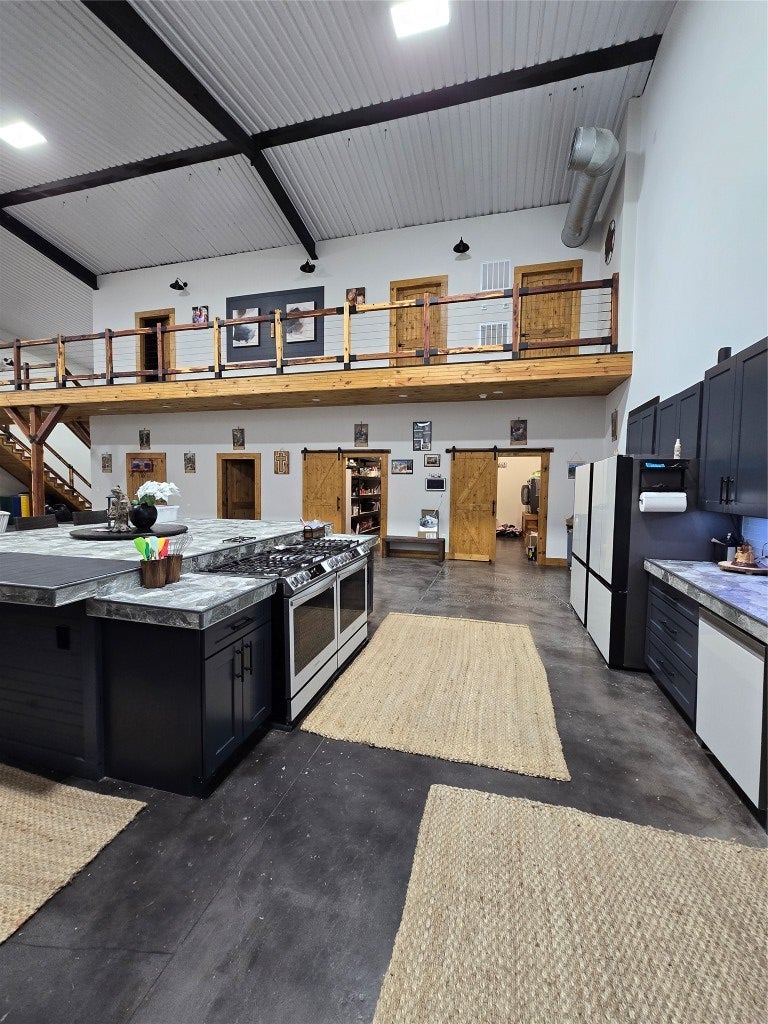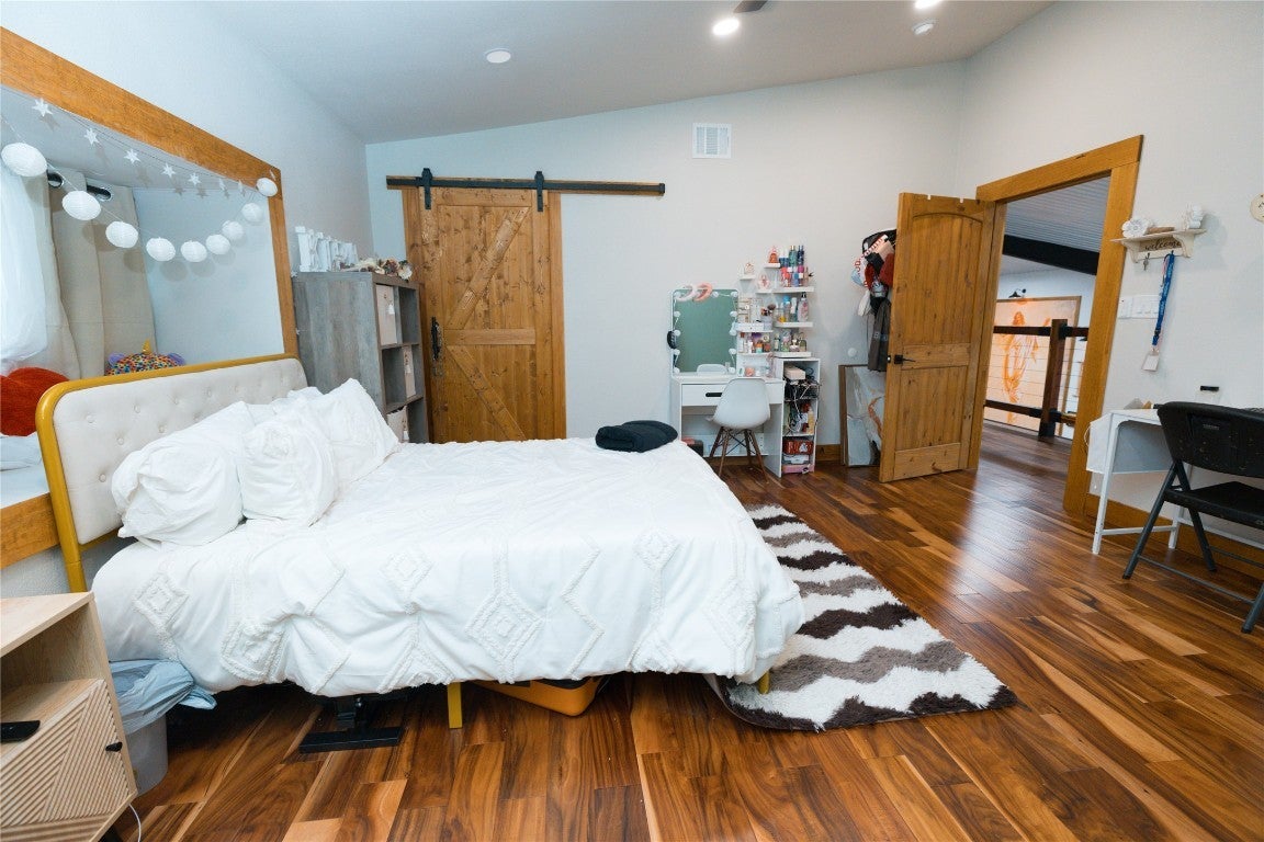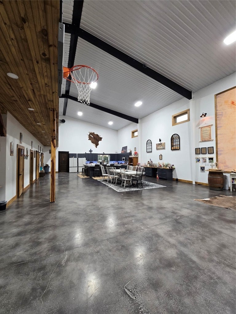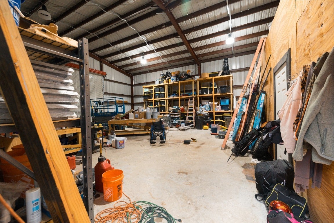 Barndo Mansion Retreat on Unrestricted Acreage This custom 7,200 sq ft Barndo Mansion offers the perfect blend of rustic charm and modern comfort. Step into an impressive open-concept layout featuring 20-foot ceilings, a grand foyer, dual staircases, and a walkway overlooking the main living area. Designed for functionality and entertaining, the floor plan includes 4 bedrooms, 3 full bathrooms, a private office, large butcher pantry with exterior access for convenient grocery drop-off, laundry room, and a spacious kitchen/dining/living/game area ideal for gatherings. The downstairs owner’s suite is a private retreat with a 4-head walk-in shower, standalone soaking tub with TV, double vanity, and a generous walk-in closet. The home features a warm country-rustic aesthetic, including wood interior doors, custom trim, barn-style sliding doors, and detailed wood accents throughout. Upstairs, you’ll find 3 additional bedrooms, a full bath, mechanical/storage room, and a charming corner used as a library nook overlooking the open living space below. The concrete back porch is already equipped with electric and plumbing, ready for your outdoor kitchen/ entertainment design. An addition: 500 sq ft enclosed gym/office provides flexible use options such as fitness, studio, homeschool, or business space attached to the shop/garage. The 2,000 sq ft 40x50x18 shop/garage includes a fully equipped finished guest home (~500 sq ft) with full kitchen, butcher block counters, full bathroom, washer/dryer hookups, and open living/sleeping layout-ideal for guests, multi-generational living, or rental income. Situated on unrestricted property with fenced backyard and peaceful country views. No HOA. There is minimal construction remaining; giving you the opportunity to customize final details to match your personal style and vision, to truly make it your own. This one-of-a-kind Barndo Mansion is move-in ready, completely livable, and ready to entertain and accommodate guests.