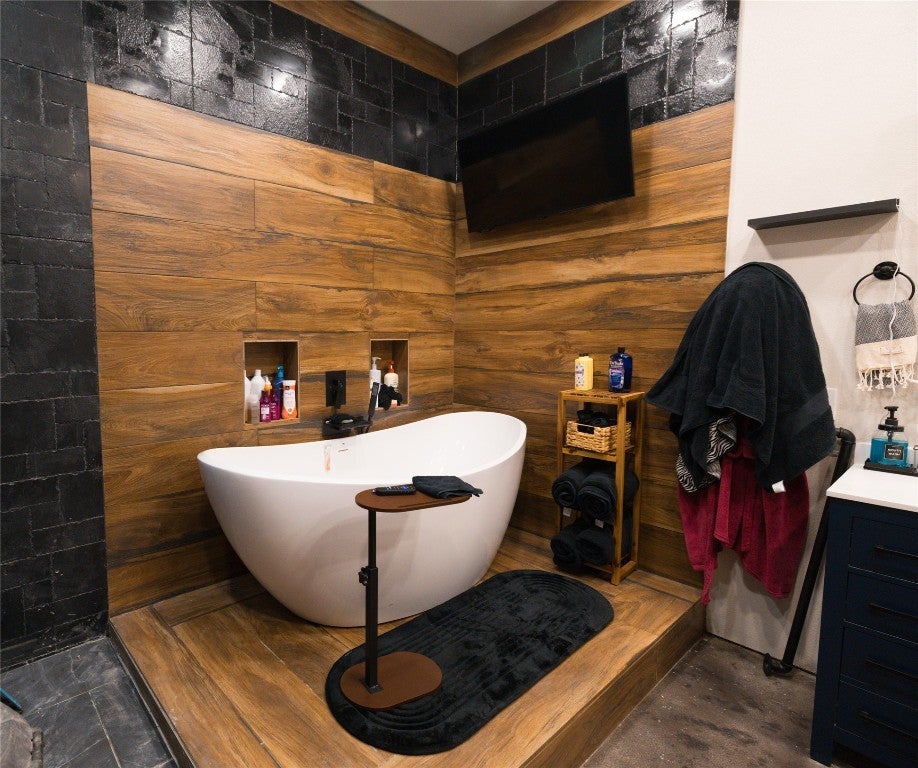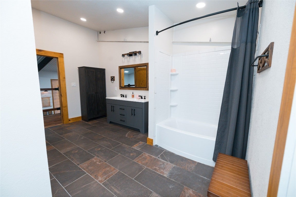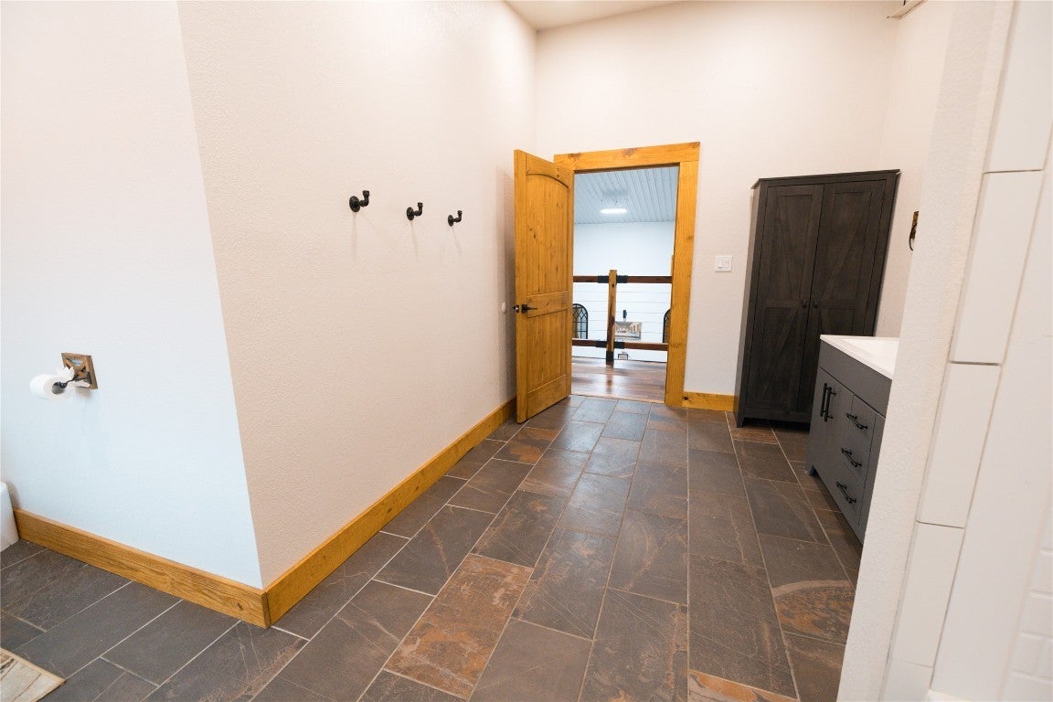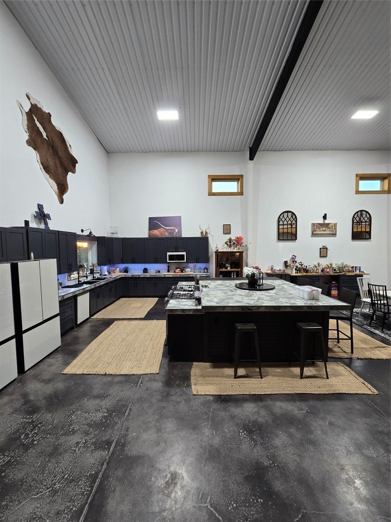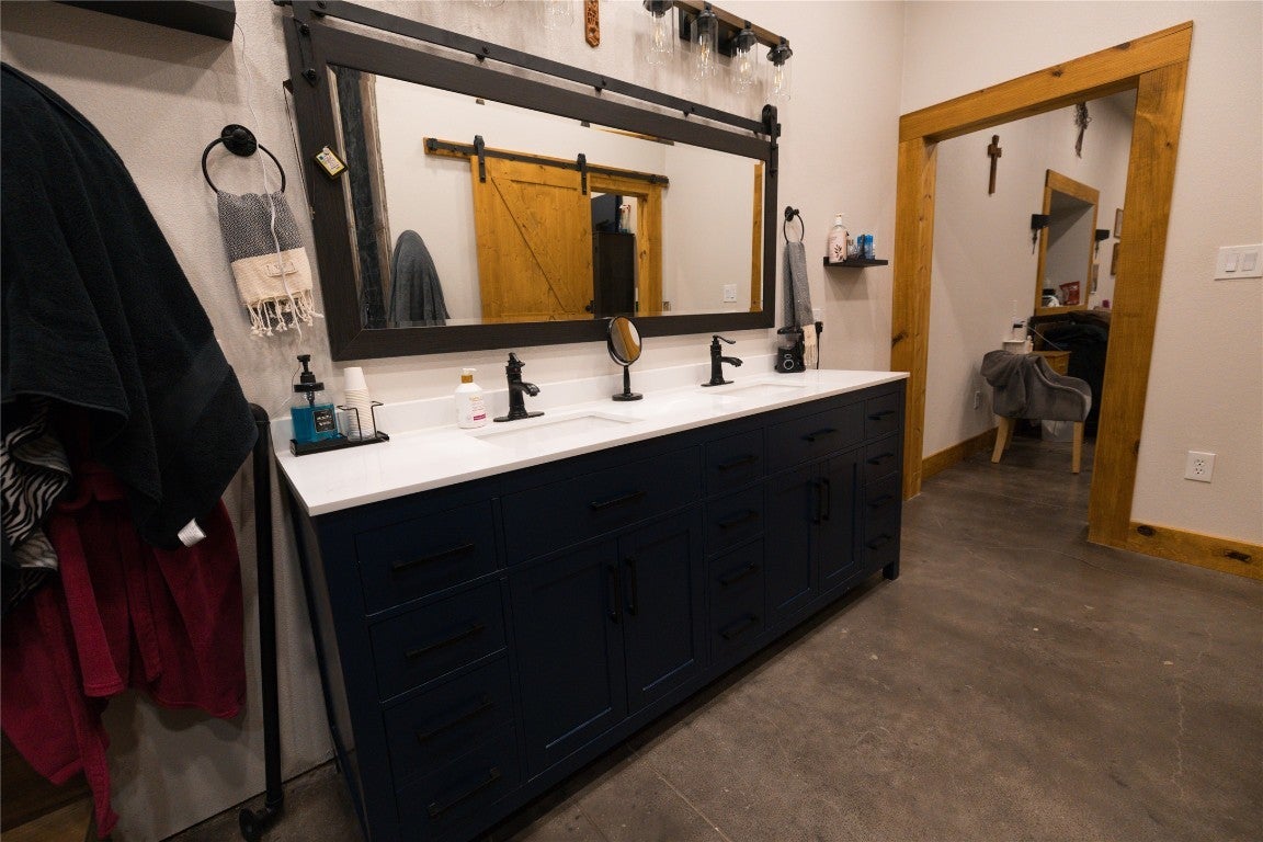 Barndo Mansion Retreat on Unrestricted Acreage This custom 7,200 sq ft Barndo Mansion offers the perfect blend of rustic charm and modern comfort. Step into an impressive open-concept layout featuring 20-foot ceilings, a grand foyer, dual staircases, and a walkway overlooking the main living area. Designed for functionality and entertaining, the floor plan includes 4 bedrooms, 3 full bathrooms, a private office, large butcher pantry with exterior access for convenient grocery drop-off, laundry room, and a spacious kitchen/dining/living/game area ideal for gatherings. The downstairs owner’s suite is a private retreat with a 4-head walk-in shower, standalone soaking tub with TV, double vanity, and a generous walk-in closet. The home features a warm country-rustic aesthetic, including wood interior doors, custom trim, barn-style sliding doors, and detailed wood accents throughout. Upstairs, you’ll find 3 additional bedrooms, a full bath, mechanical/storage room, and a charming corner used as a library nook overlooking the open living space below. The concrete back porch is already equipped with electric and plumbing, ready for your outdoor kitchen/ entertainment design. An addition: 500 sq ft enclosed gym/office provides flexible use options such as fitness, studio, homeschool, or business space attached to the shop/garage. The 2,000 sq ft 40x50x18 shop/garage includes a fully equipped finished guest home (~500 sq ft) with full kitchen, butcher block counters, full bathroom, washer/dryer hookups, and open living/sleeping layout-ideal for guests, multi-generational living, or rental income. Situated on unrestricted property with fenced backyard and peaceful country views. No HOA. There is minimal construction remaining; giving you the opportunity to customize final details to match your personal style and vision, to truly make it your own. This one-of-a-kind Barndo Mansion is move-in ready, completely livable, and ready to entertain and accommodate guests.