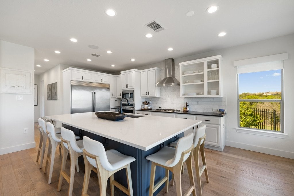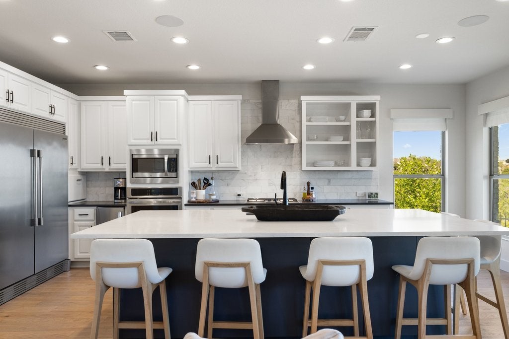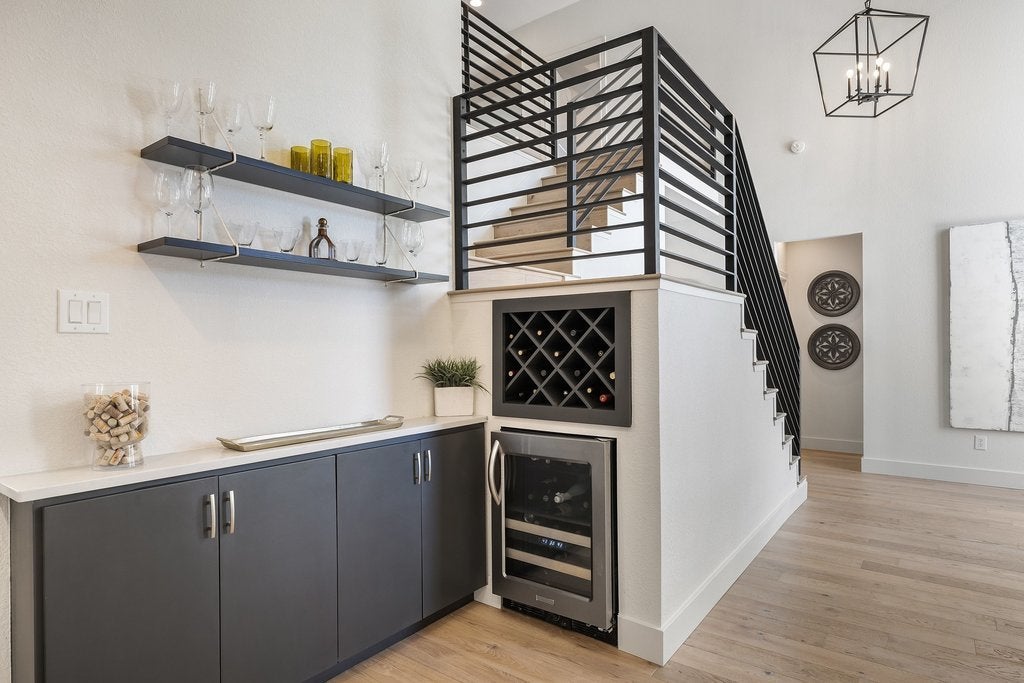 - Built-In Oven, Dryer, Dishwasher, Gas Cooktop, Disposal, Microwave, Refrigerator, Stainless Steel Appliance(s), Wine Refrigerator, Washer