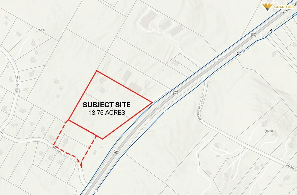 Gold Tier Real Estate is proud to present 13.75 acres for sale on Highway 290 just west of Austin. An additional adjacent 4.50 acres is also available to purchase and may be utilized for a secondary access point onto SW Oaks Drive. The property is located directly off Highway 290 and benefits from a recorded access easement, providing direct ingress and egress for future development. The surrounding area continues to experience significant growth, with a recently completed HEB nearby and multiple national retail users located within the Belterra development just down the road. The site features gentle topography and favorable terrain, making it well suited for a variety of development uses. Water service is available through WTCPUA, which has 12 inch and 24 inch water lines along Highway 290. An on site sewer solution will be required. The property has no deed restrictions and has been de annexed from the Austin ETJ, allowing for development under Travis County regulations. Seller financing may be available. Please contact the agent for additional details. **Buyer to verify all information through independent due diligence. Broker makes no representations or warranties regarding the accuracy of the information herein.**