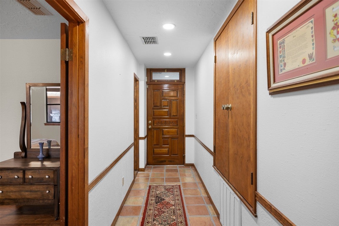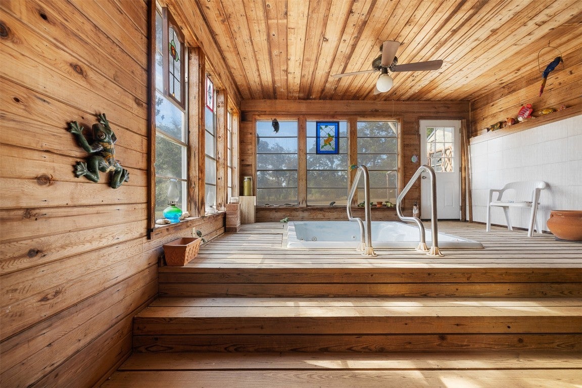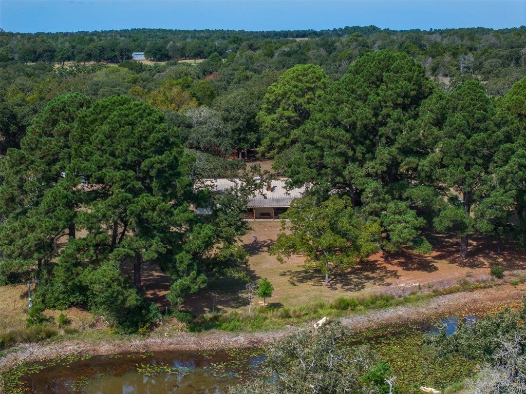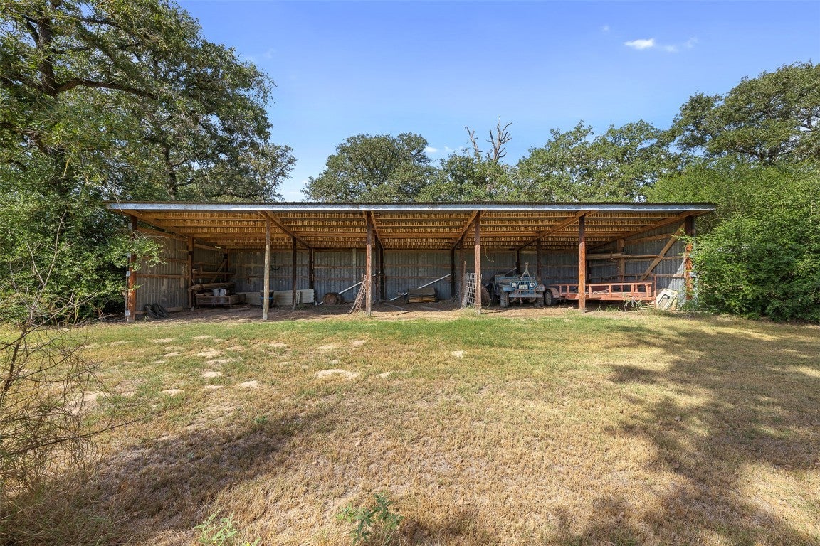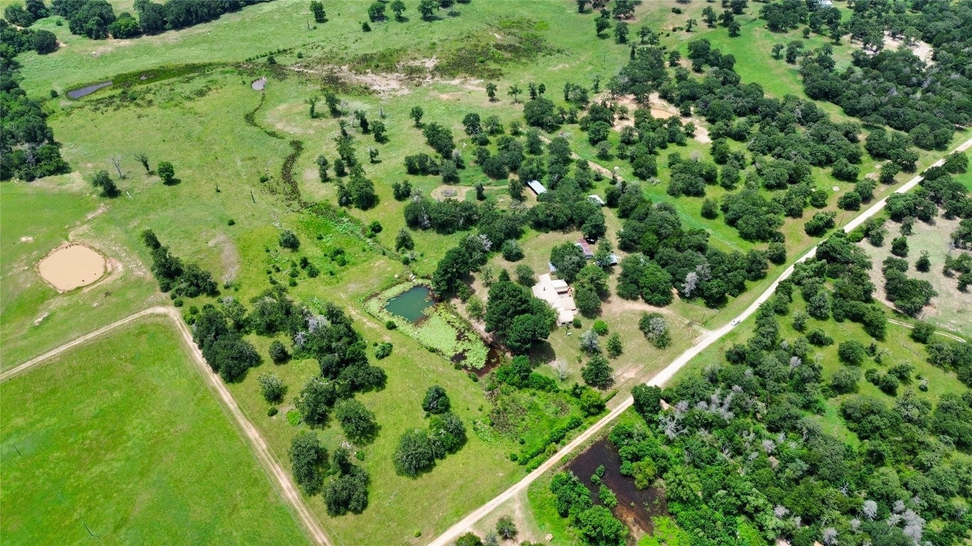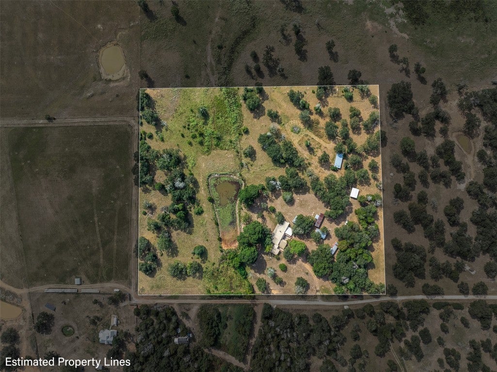 This 14-acre country estate features a spacious stucco hillside 2,720 square foot residence including three bedrooms, two bathrooms, and a versatile flex space suitable for use as an office or fourth bedroom. The interior showcases distinctive Saltio Mexican tile flooring, recessed lighting, raised ceilings. and a spacious & bright living area with built-in shelves and a wood-burning Heatilator fireplace. The expansive kitchen provides ample counter and cabinet space. Custom Mexican-style steps lead to an open outdoor atrium designed for gatherings and outdoor dining, also accessible from the home. The covered front porch offers views of surrounding pastureland and a stocked aquifer pond. The property is cross-fenced with new five-strand barbed wire, supporting ongoing agricultural exemption through cattle operations. Additional amenities include an older mobile home, workshop attached to a red guest cabin, which comprises a single bedroom, bathroom, and living space. The greenhouse is fully equipped with electricity and water utilities, and the barn, featuring a dirt floor, accommodates farming equipment efficiently.