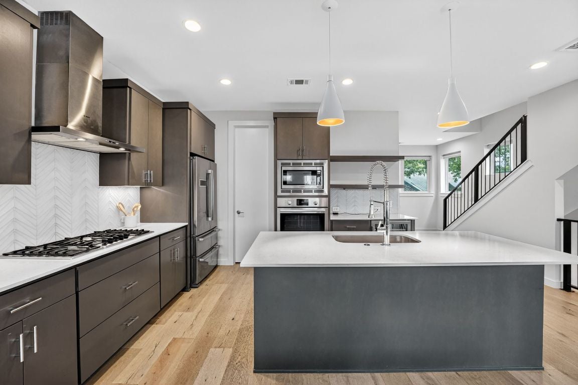 2301 Bluebonnet Lane is a rare stand-alone home offering privacy, space, and unbeatable walkability in the heart of Austin. Located within a small condo regime, it shares only one immediate neighbor and is bordered by mature trees on two sides. Inside, the open-concept main level is bright and inviting, featuring granite countertops, modern appliances, an outdoor patio, and seamless flow for entertaining. The home spans three stories with 3 bedrooms, 3.5 baths, a walk-in primary closet, a massive walk-in shower with three shower heads, a soaking tub, and laundry conveniently located on the same level as the primary suite. Upgrades include new windows, a new rooftop patio, powered blinds, and a UV-light air filtration system integrated into the HVAC. A two-car garage adds rare storage and parking flexibility, while the private rooftop deck delivers panoramic downtown skyline views—perfect for sunsets, gatherings, and fireworks. From this prime Zilker/Barton Hills location, you can walk to South Lamar’s restaurants, bars, and coffee shops, or stroll to Zilker Park and the surrounding neighborhoods. Bus lines and bike lanes along South Lamar make commuting effortless, and you’re less than five minutes to downtown.