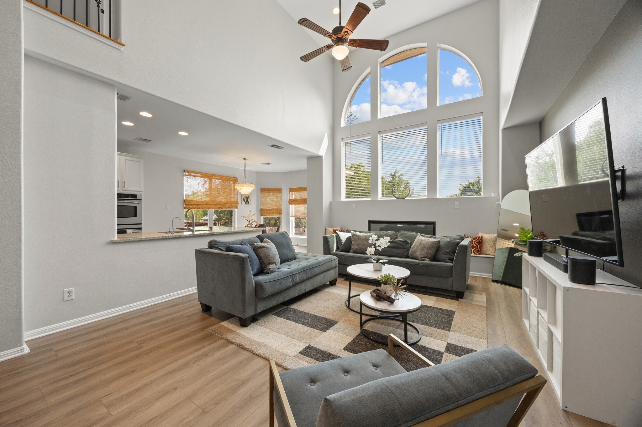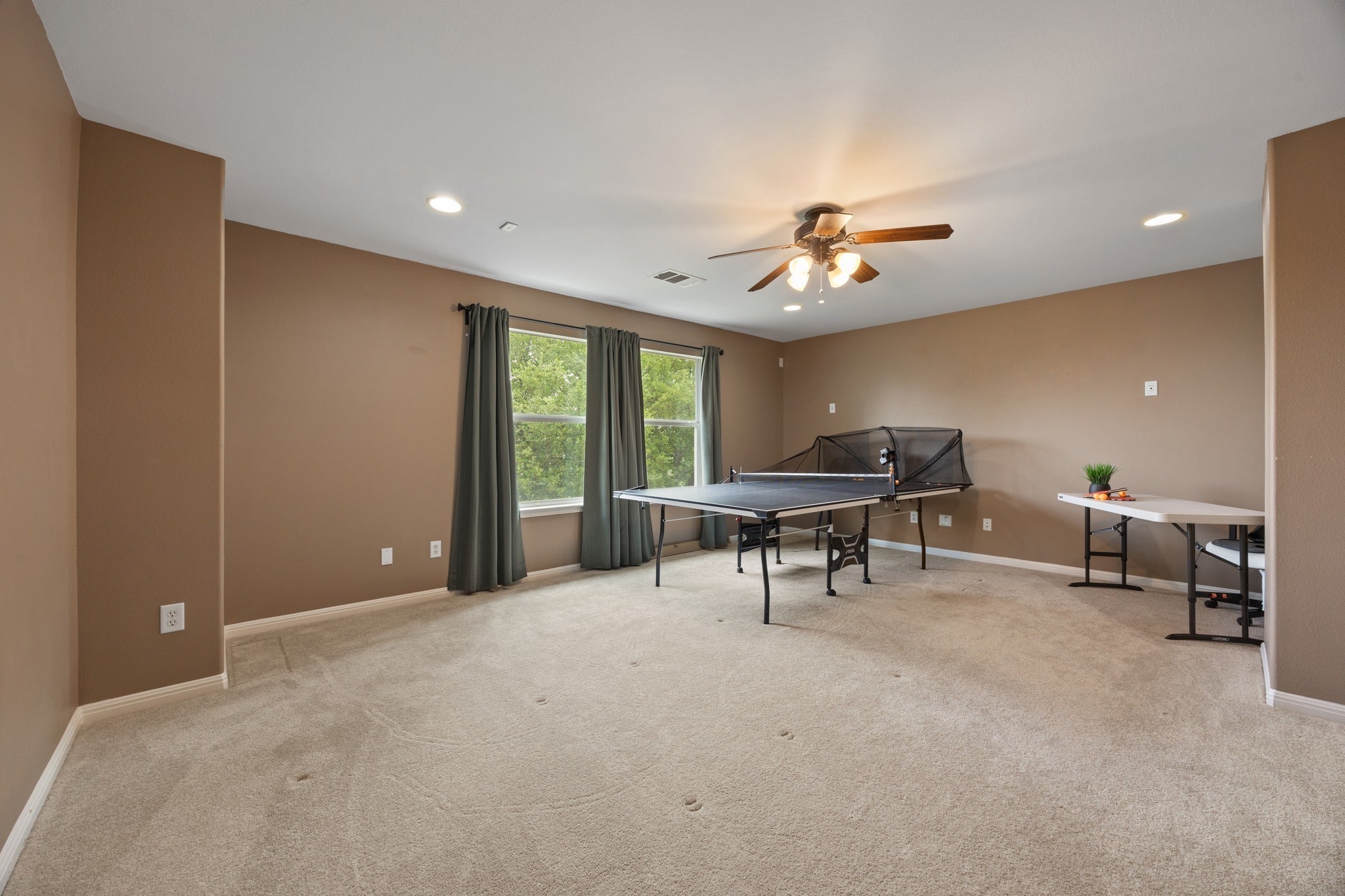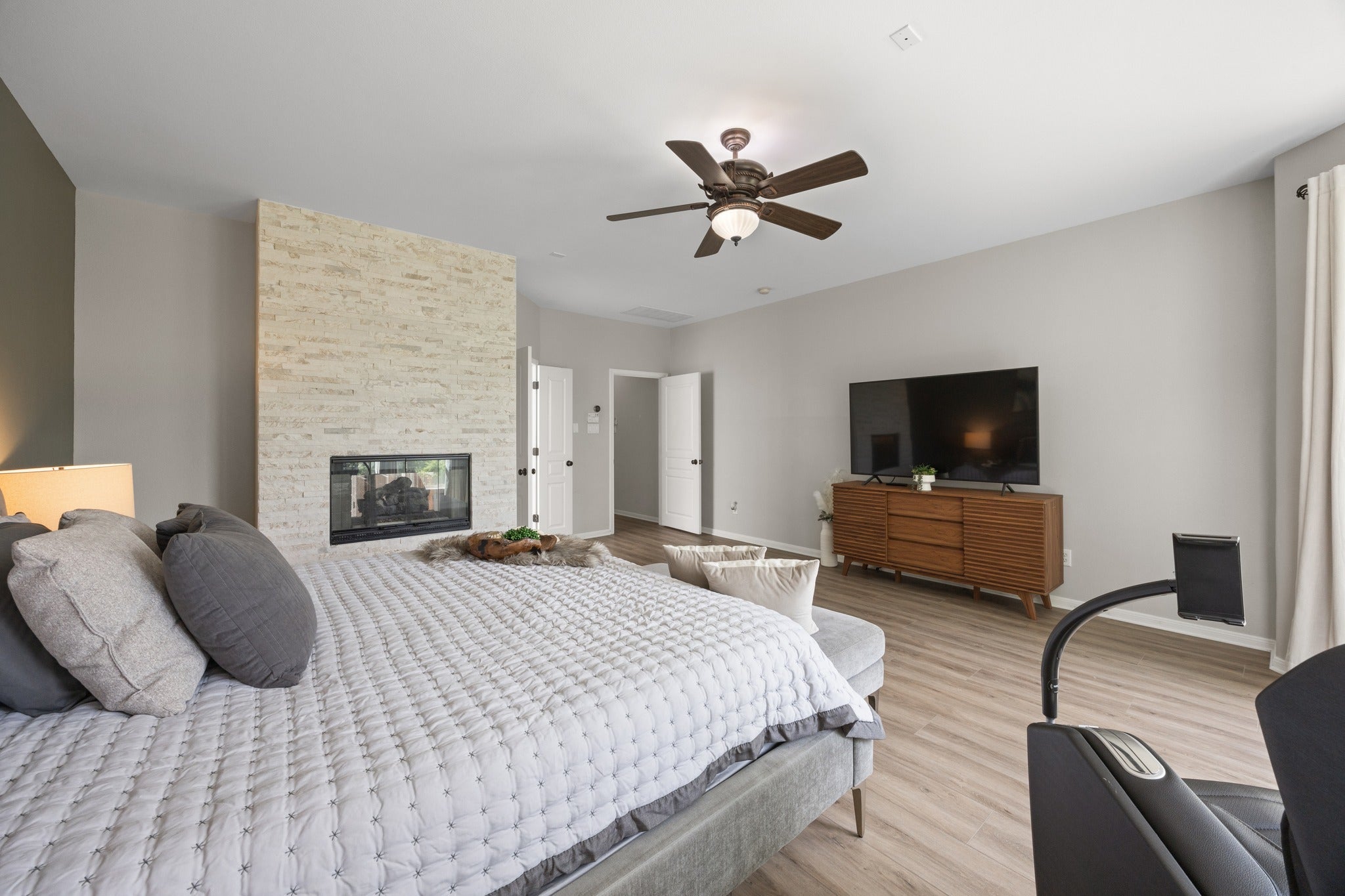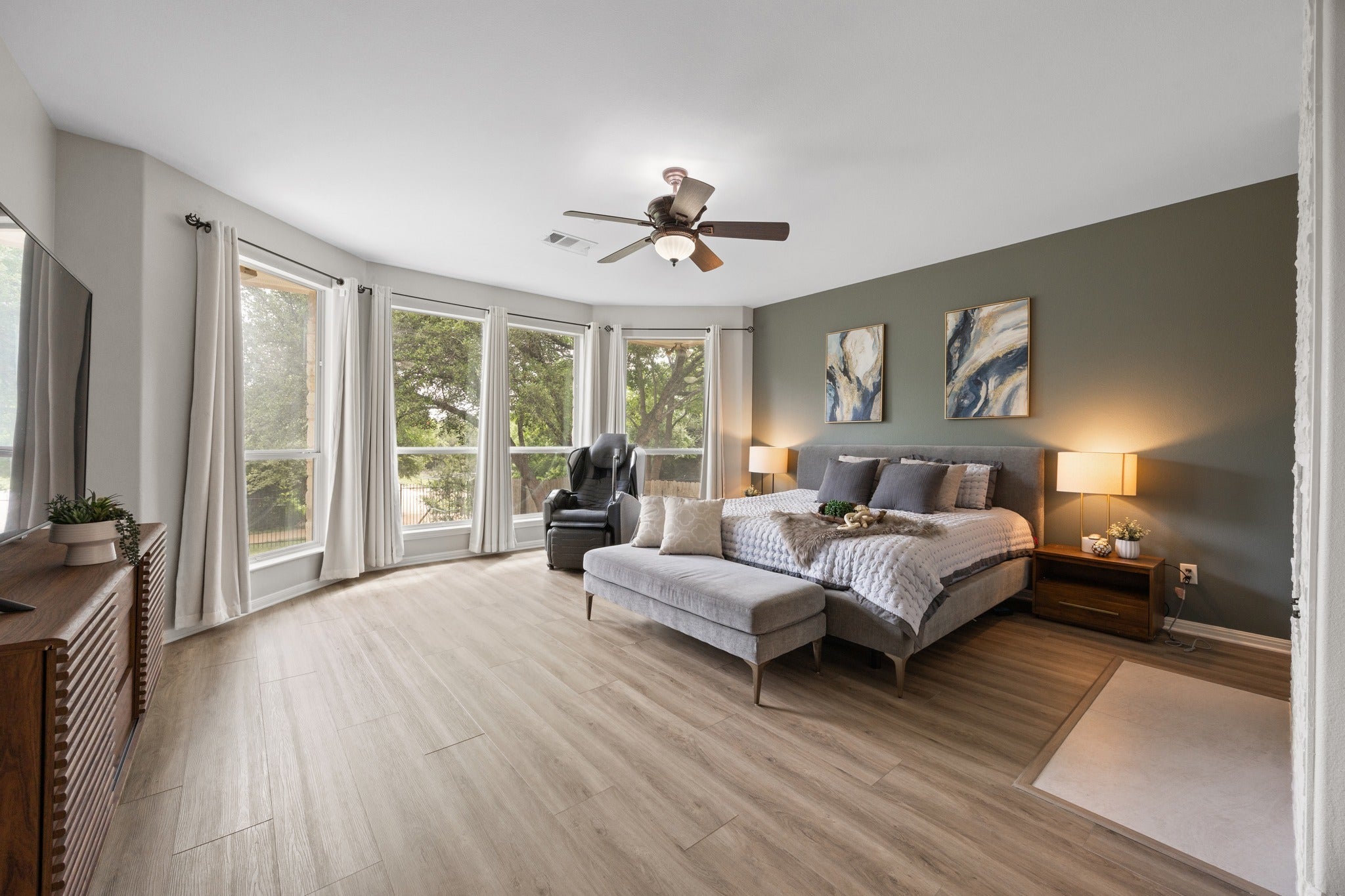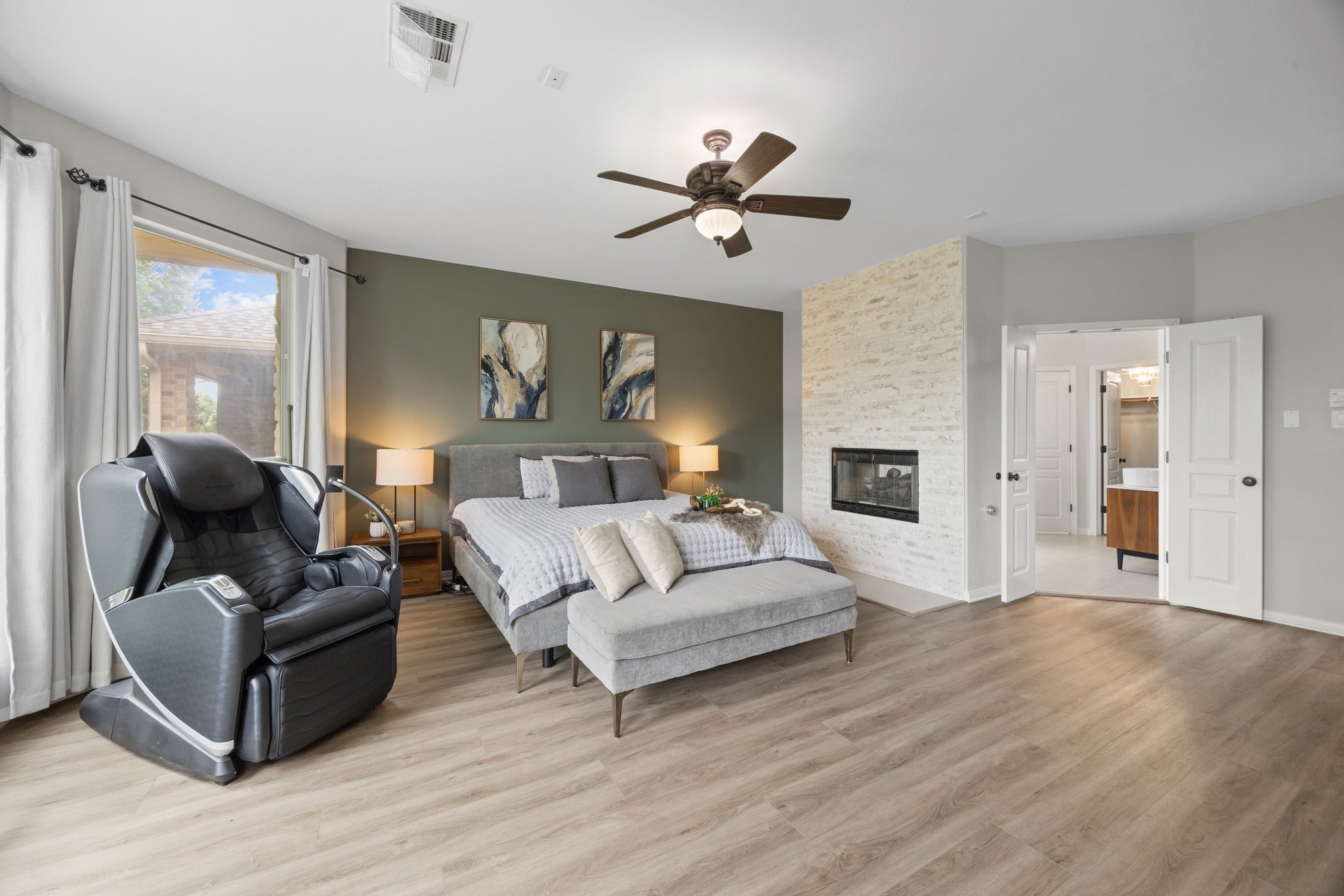 Over $80,000 in upgrades make this home truly stand out! Recent improvements include a full roof replacement, a completely remodeled primary suite, modern lighting fixtures, new carpet and flooring, and a fresh interior repaint completed after the current owners purchased the home. Designed for both comfort and style, the home features two fireplaces—a striking granite tile accent wall fireplace in the primary bedroom and an electric fireplace in the living room with multiple lighting options, creating a warm and luxurious ambiance throughout. This home perfectly blends modern upgrades with elegant living, offering a move-in-ready experience with high-end touches. Located in the highly desirable Round Rock ISD, this beautiful property sits in a quiet community and backs to a rare greenbelt with a peaceful walking trail—offering both privacy and scenic views for you to enjoy your morning, afternoon or evening. This spacious two-story home features a primary bedroom on the main floor with soaring ceilings and abundant natural light. Upstairs, you’ll find a large game room that can easily be converted into a media room with sun-blocking curtains installed. With 5 bedrooms and 3 & 1/2 full baths upstairs, the layout provides flexible space for a home office, gym, or guest rooms—perfect for modern living. Enjoy unbeatable convenience with easy access to nearby outlets, restaurants, I-35, retail centers, and hospitals. This home truly offers comfort, functionality, and versatility—don’t miss this incredible opportunity!