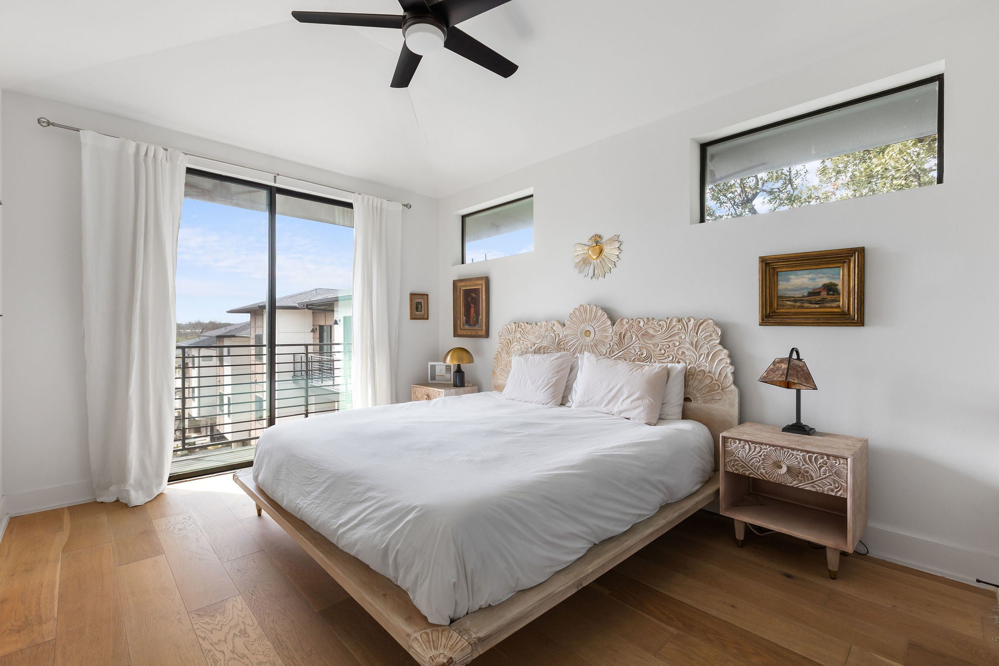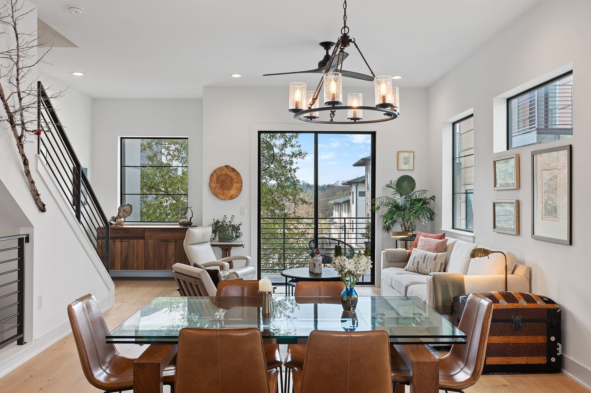 Step into a unique, light-filled treehouse condominium with the best of indoor/outdoor living. This contemporary 3-bed, 3.5-bath property is nestled in the quiet and sought- after South Lamar ”04” neighborhood, conveniently located near some of Austin’s best shopping, dining, and entertainment venues, and only 10 minutes from downtown and 15 minutes from the airport. Inside you will find wide plank wood flooring, shaker-style cabinetry, and sleek hardware, with curated design details throughout. The spacious layout includes three bedrooms, all with en-suite bathrooms, and a one-car garage with extra parking in the driveway. The first floor offers a private bedroom and bath, ideal for guests or a home office. The second level has an open-concept kitchen, dining and living spaces with a balcony for fresh-air lounging. Large sunlit windows look out on mature trees. The third level features the primary bedroom with a modern tiled bath and a balcony overlooking the treetops. The third bedroom and full bathroom is also on this level, as well as a stacked washer and dryer for convenience. This home is an end unit featuring three sides of windows and a landscaped limited common area with expanded deck - the only one like it in this complex. The community includes a dog park, fire pits, and grills. This meticulously maintained home is move-in ready and has been exclusively occupied by the original owner. Wi-fi smart thermostats add to the high efficiency design of the home, ensuring low utility costs. Ready and available for move in!