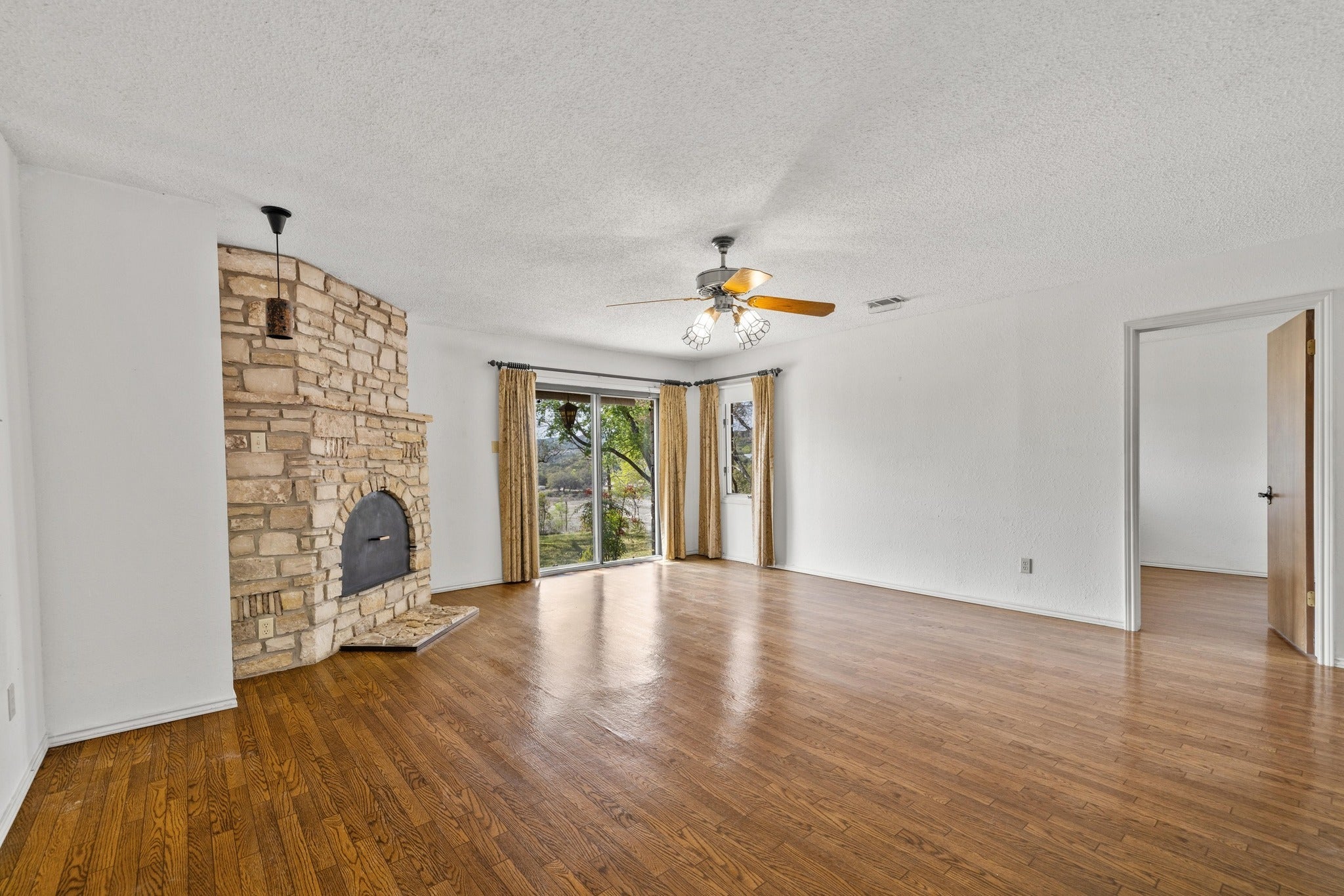 - Family Room, Stone, Wood Burning