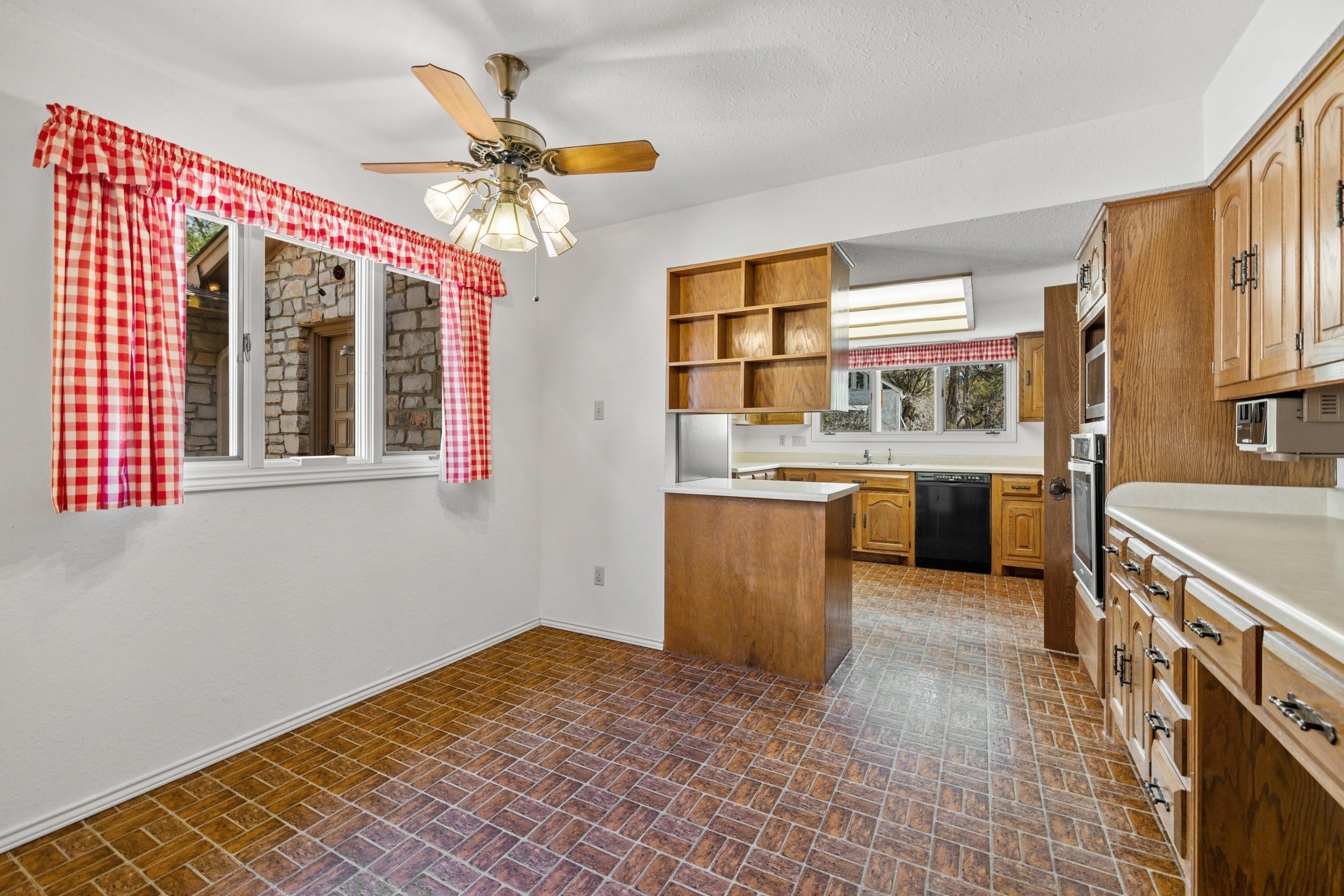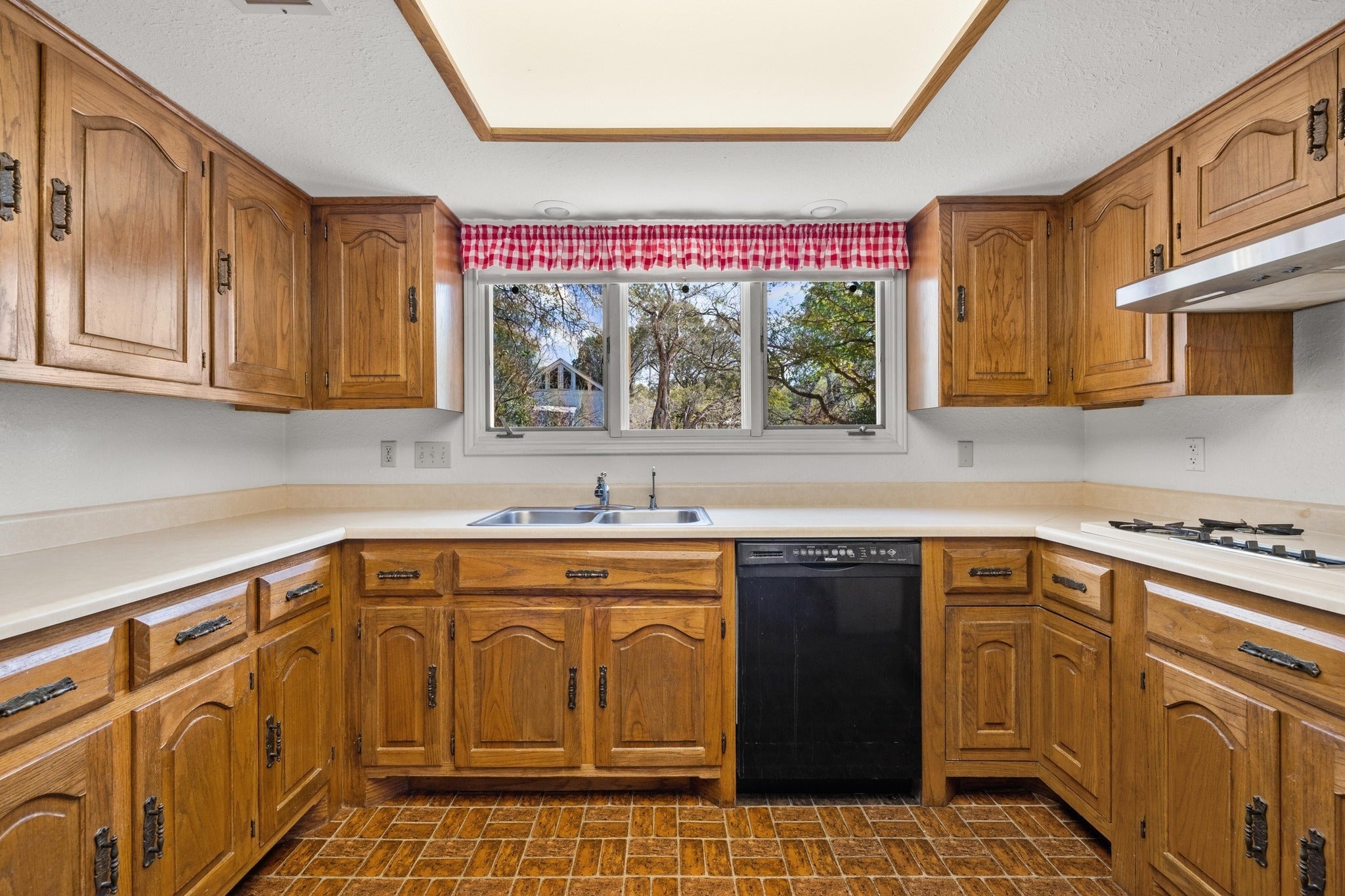 - Dishwasher, Microwave, Built-In Oven, Electric Oven, Exhaust Fan, Free-Standing Refrigerator, Gas Cooktop, Gas Water Heater, Range Hood