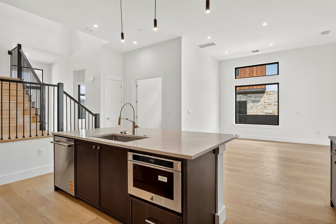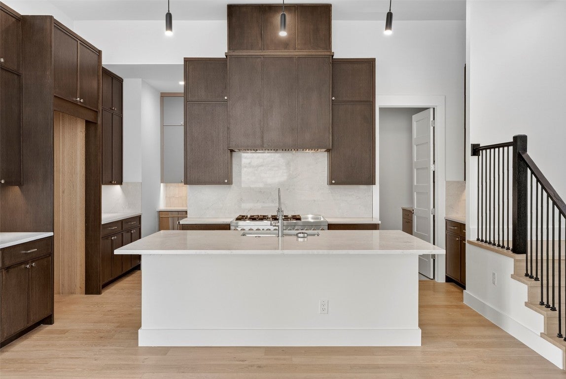 Milky Way at RiverPlace is a rare opportunity to own a new home in one of Austin’s most sought-after neighborhoods, blending Hill Country scenery with modern luxury. Nestled within the award-winning RiverPlace community and surrounded by stunning canyon landscapes, this private enclave by M Signature Homes offers a lifestyle defined by elegance and convenience. Residents enjoy access to River Place Country Club, miles of nature trails, and top-rated Leander ISD schools, all within minutes of Lake Austin, Four Points, and the city’s most desirable shopping and dining destinations. This exceptional home at 10105 Milky Way Drive showcases architectural sophistication with its smooth limestone exterior, front and rear balconies with impressive views, and a private pool that creates the perfect outdoor retreat. Inside, the spacious design features 20-foot entry ceilings, 12-foot ceilings throughout the main level, and a contemporary open-concept layout filled with natural light. The chef-inspired kitchen includes custom cabinetry, 63-inch upper cabinets, quartz countertops, designer backsplash, and a professional dual-fuel range. Exquisite wood flooring runs throughout, elevating the interior with warmth and refinement. Each bedroom includes its own en suite bathroom, ensuring comfort and privacy for every resident or guest. Energy-efficient construction and premium materials are consistent with M Signature’s standard for excellence, including advanced insulation, high-performance HVAC systems, and tankless water heating. With its refined finishes, outdoor kitchen, and impeccable craftsmanship, this home captures the very best of RiverPlace living—modern design surrounded by timeless Hill Country beauty.