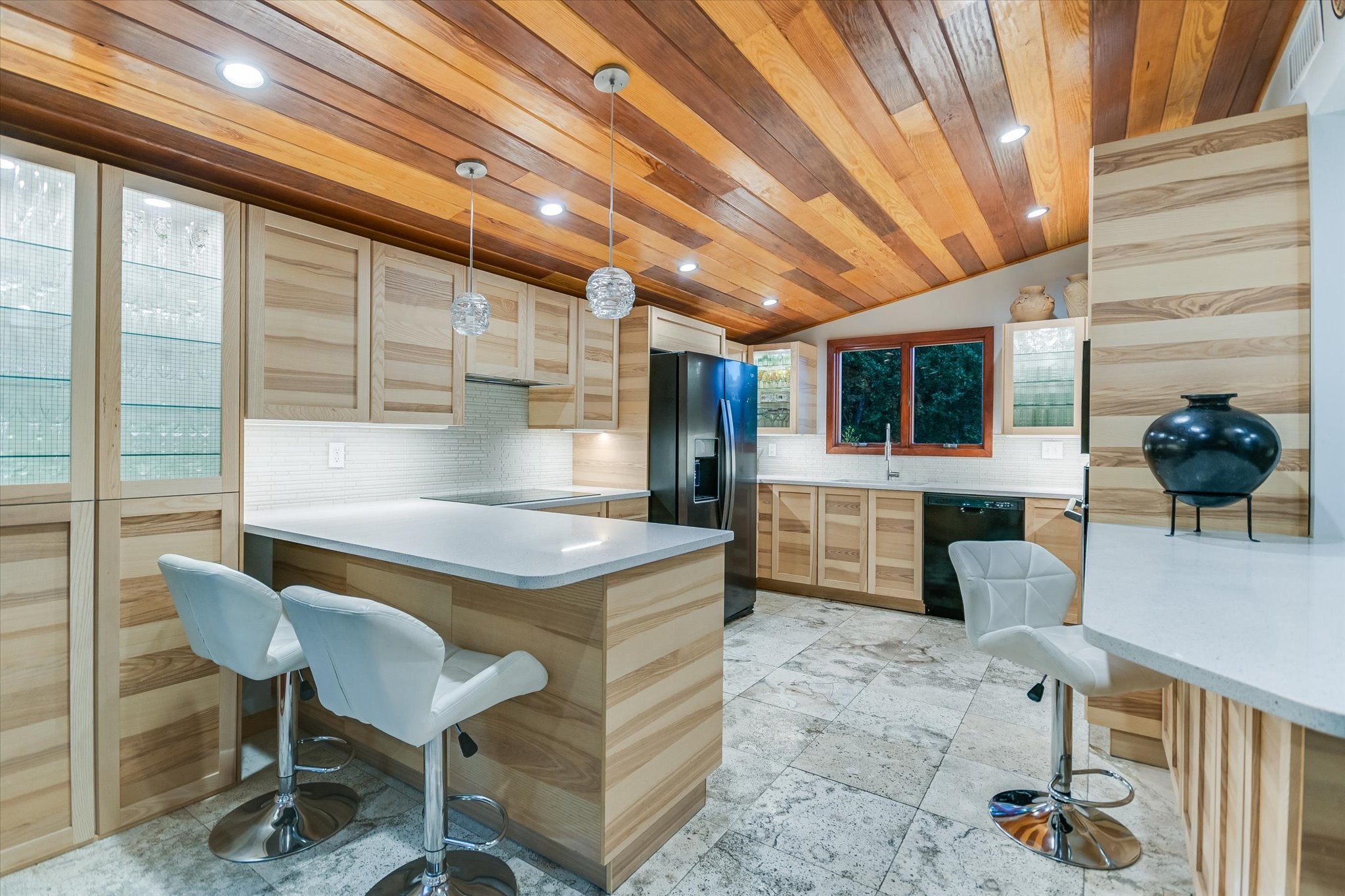 Tucked into a quiet cul-de-sac in the heart of West Lake Hills, just steps from Rollingwood, this rare 1971 A.D. Stenger-designed home is the kind of place we wish Austin made more but rarely does anymore. Set on an oversized half-acre wooded lot in the nationally acclaimed Eanes ISD, it offers genuine privacy, treehouse canopy views, and an address that puts you just 7 minutes from downtown, Zilker Park, and Barton Springs. The architecture earns its pedigree. Original wood-paneled cathedral ceilings soar overhead, hand-forged iron details anchor the spaces with character, and a thoughtfully designed split-level layout gives the home a warm, layered quality that feels both intentional and lived-in. Updates have been made with true craftsman care, Anderson windows, renovated bathrooms, new flooring, fresh paint, and a roof replacement among them, preserving the home's mid-century bones while bringing it fully into the present. The kitchen strikes the right balance: striated wood cabinetry and quartz counters meet natural textures in a space that feels elevated without feeling fussy. Four bedrooms, three full baths, and multiple living areas give the home real flexibility. Quiet and cozy one evening, ready to entertain the next. Then there's the Big Surprise!......a 700-square-foot climate-controlled lower level, currently outfitted as a professional photography darkroom, quietly honoring the home's long artistic history. Music studio, painting retreat, workshop, home gym, the space is waiting for its next chapter. Soul. Space. Story. This is a true Austin original.