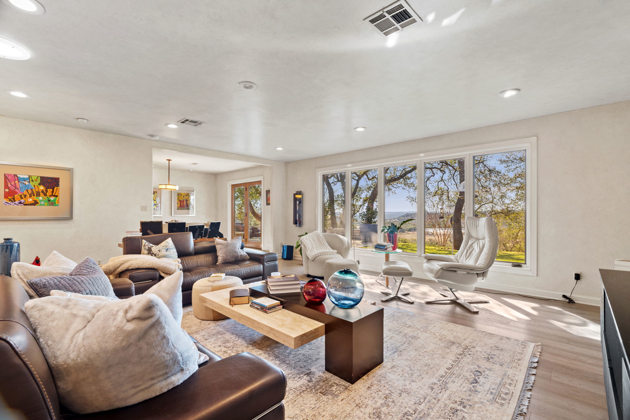 Perched atop a scenic hill, this exceptional property offers a tranquil retreat with breathtaking horizon views and a wealth of amenities. The main residence features 3 bedrooms and 2 bathrooms, while a separate 2-bedroom, 1-bath guest suite includes an office and gym. An equipment barn with an attached chicken coop is located near the main residence. Outdoor living is elevated with an infinity-edge pool, lush gardens, stocked fishing ponds, hiking trails, and cross-fencing for livestock. Located only 23 miles west of downtown Austin and unrestricted for development, Spicewood Retreat not only captivates with its aesthetic appeal but also presents an appealing investment prospect. The rolling terrain has been mostly cleared of juniper trees and is covered with live oaks, red oaks, hackberry and many other desirable hardwoods. Deer and other wildlife frequent the property daily and use the water troughs provided for this purpose. The paved road features a gated stone entry and winds uphill through the oaks to the main residence. Ready for its next steward, this property embodies the perfect blend of natural beauty, luxury, and potential.