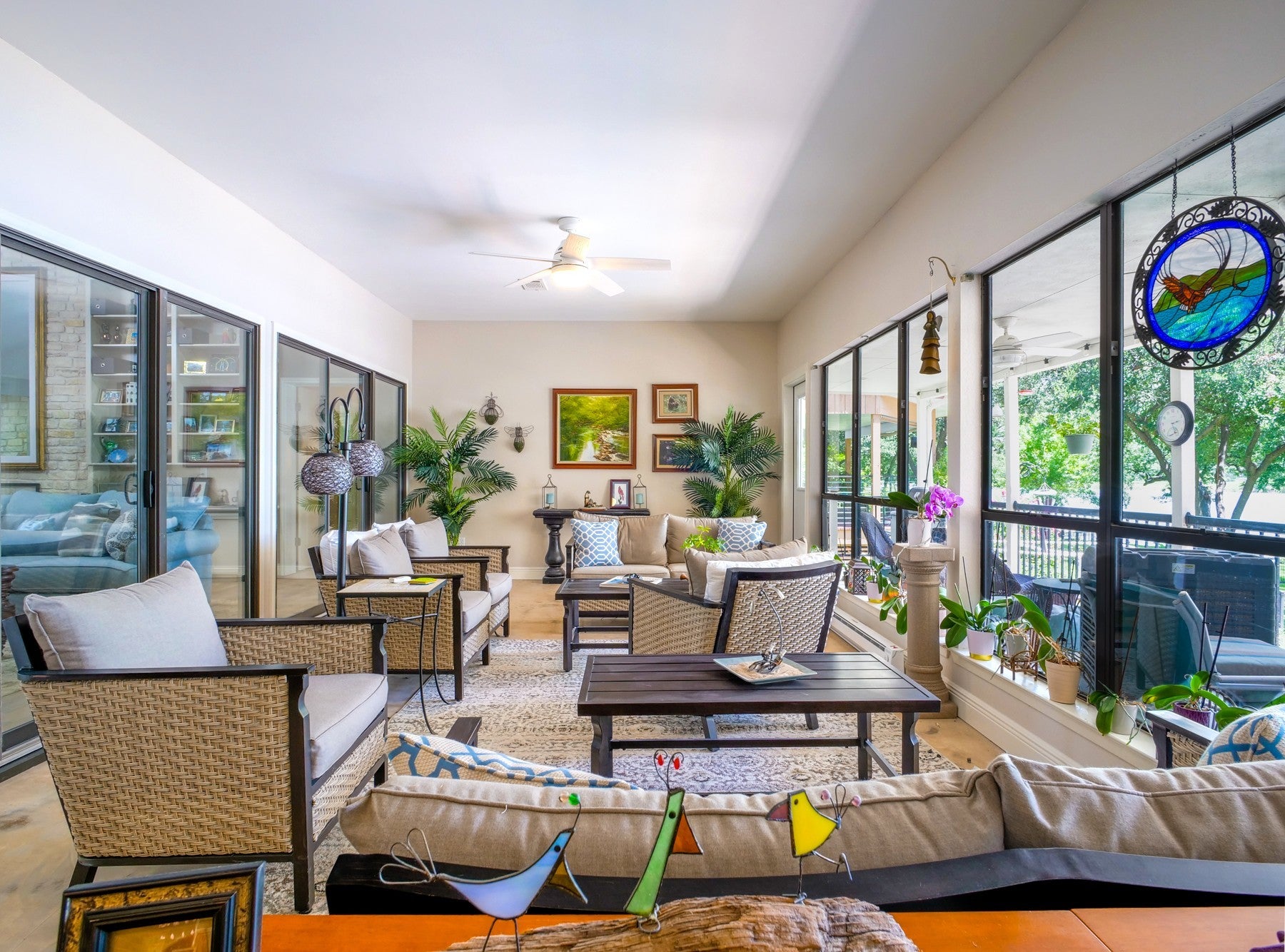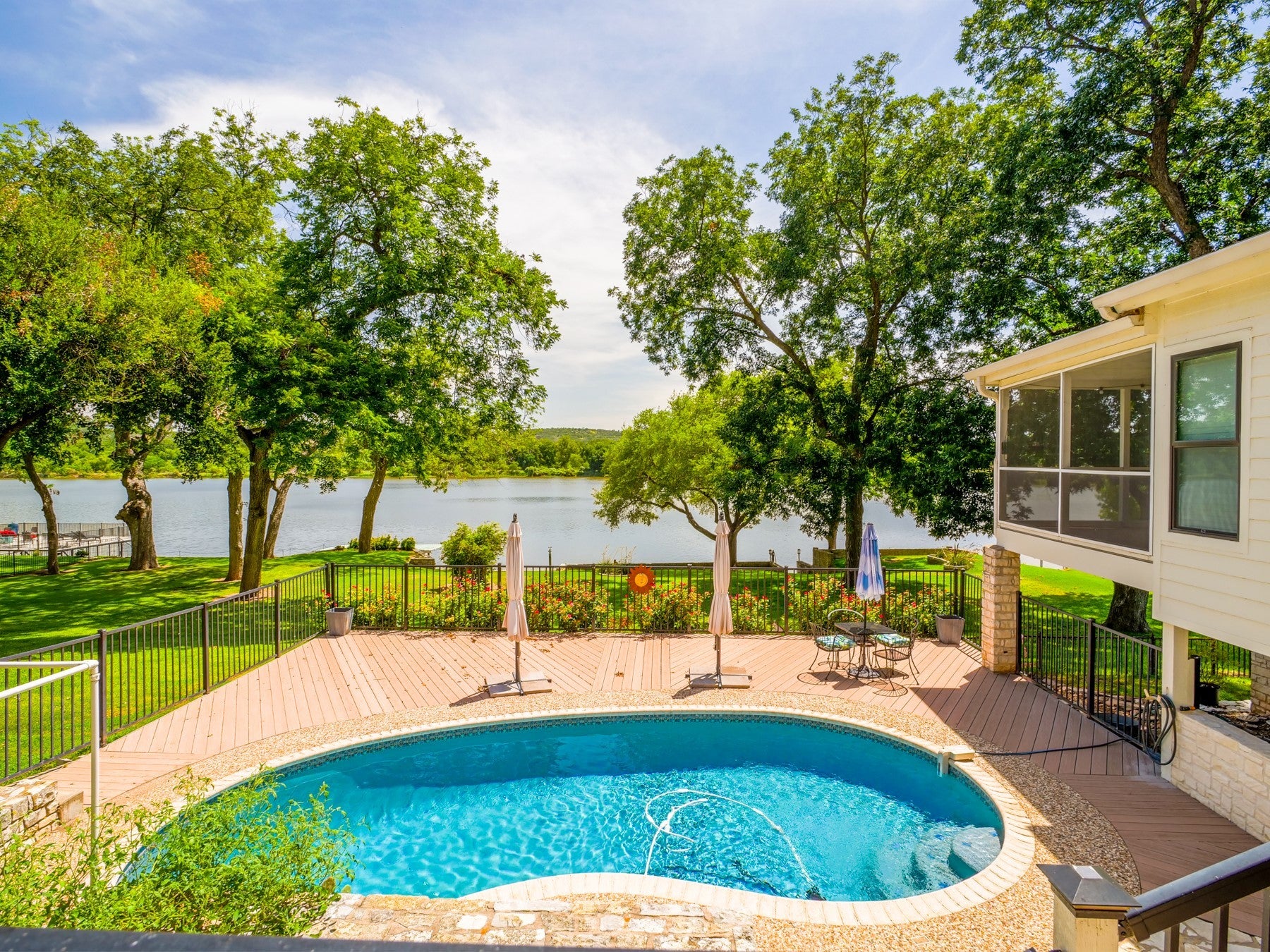 90' of gorgeous open Lake Marble Falls waterfront located in the Gated Community of Meadowlakes. Incredible open water views with large mature trees. 3 full bedrooms, 4 bathrooms, and with one half bathroom. Each bedroom has its own bathroom. Large master suite is equipped with a huge master bath and enormous walk in master closet. Master also has access to screened in deck with water views. As you enter the home you are welcomed by a huge open living area. There is a dining room/bonus room that is currently being used at an exercise room. Kitchen area is very spacious and is equipped with stainless steel appliances, granite counter tops, tons of cabinetry, and a large pantry. It also connects to an additional second living area. There are two separate office/4th or 5th bedroom areas. Enjoy the spectacular water views from the separate enclosed heated and cooled covered bonus room. There is an additional outside covered deck that overlooks the swimming pool. In addition to the two-car garage there is a heated and cooled workshop/storage room. This home has so many features. Must see to appreciate all the amenities this home has to offer.