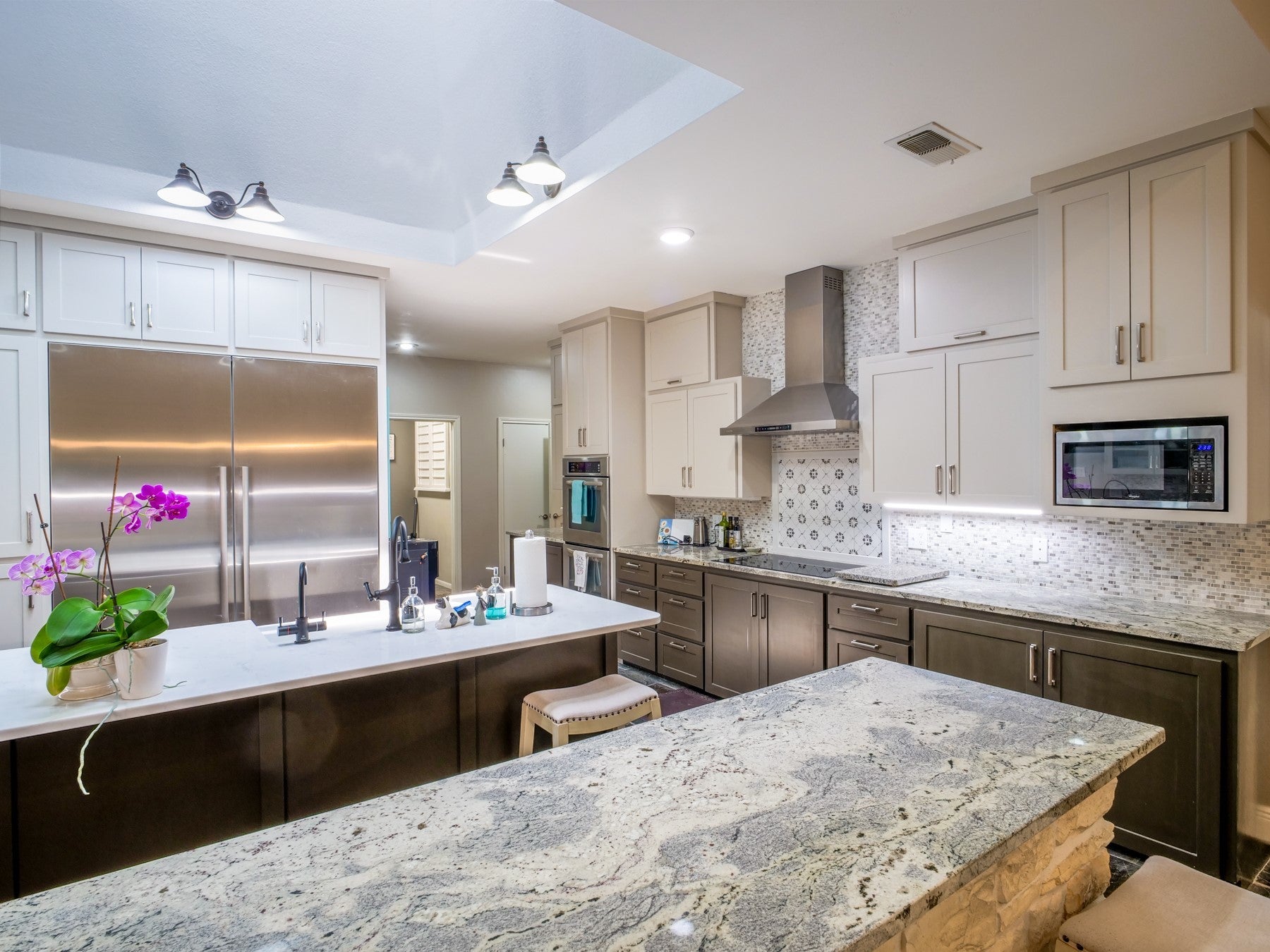 - Dishwasher, Disposal, Microwave, Oven, Built-In Oven, Cooktop, Electric Water Heater, Exhaust Fan, Stainless Steel Appliance(s)