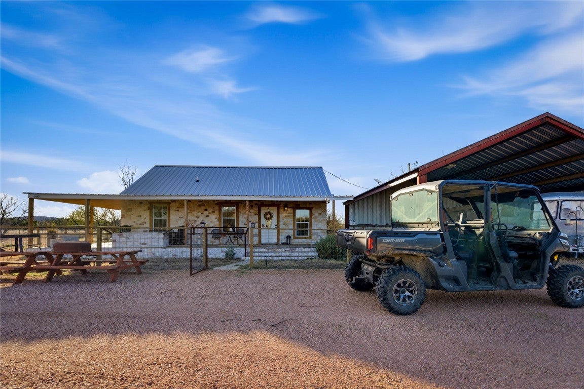 Overview: Hickory Grove Meadows spans 65.23± acres across Llano and Mason Counties, offering a versatile Hill Country ranch ideal for recreation, hunting, or a homestead. The property features rolling terrain, mature hardwoods, scenic views, and a recently updated home—well suited for weekend use or full-time living. Location & Access: Conveniently located with ~35-minute access to Llano and Mason and approximately one hour to Fredericksburg, Enchanted Rock, and Horseshoe Bay Resort. The ranch offers 1,050± feet of Buffalo Road frontage for easy access. Improvements: A remodeled 1,200± sq/ft home includes two bedrooms, one bathroom, and interior updates completed in 2022–2023, while retaining its wood-burning fireplace and foundation. Additional improvements include a wraparound porch, detached carport with RV hookups, 30' x 30' hay barn, resurfaced driveway (2025), drip system for the pond, and full perimeter fencing with 7-strand barbed wire. Water: Water features include an electric well, 2,500-gallon storage tank, and a ½-acre pond fed by a 1,500± ft wet-weather creek that runs east to west across the property. Land & Wildlife: Rolling topography with ~40 feet of elevation change, pastureland to the west, and hardwoods and mesquite to the east. Wildlife includes Axis, Whitetail, Turkey, Dove, and Hogs. A Wildlife Valuation is in place, with one blind and two feeders conveying. Remarks: Hickory Grove Meadows combines strong water features, rolling Hill Country terrain, abundant wildlife, and a renovated home—all within close proximity to premier destinations and ready for immediate enjoyment.