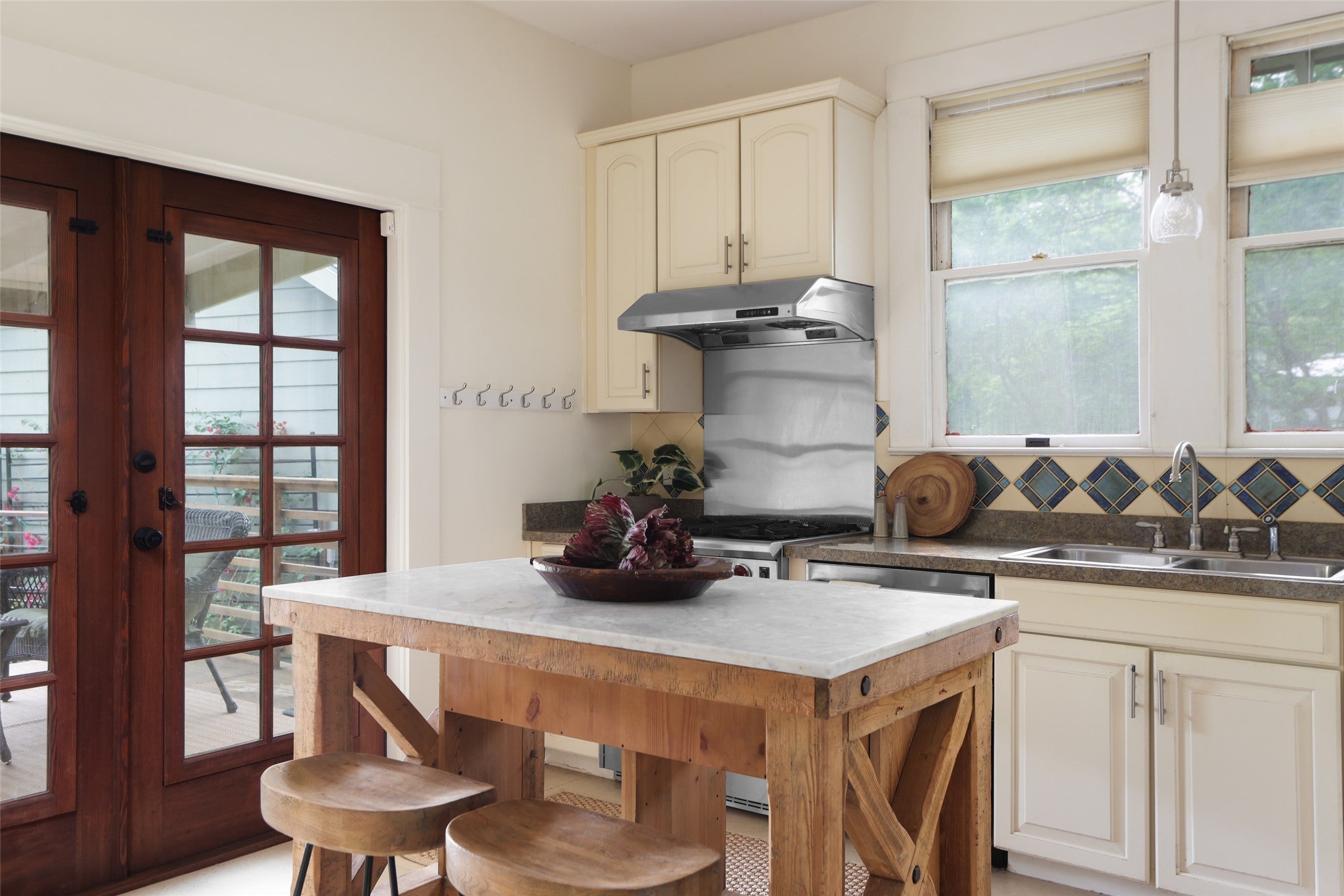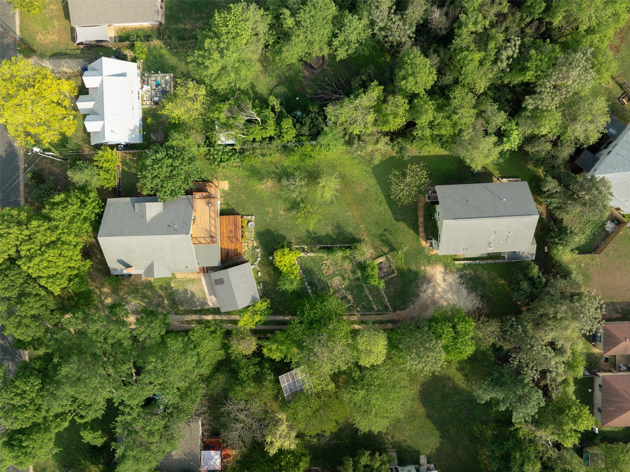 CURRENTLY LEASED for $10,000/mo through May 31, 2026. Rare South Austin compound on ~0.70 acres near Garrison Park offering three distinct living spaces and exceptional flexibility. The main 1917 Craftsman-style home features 3 bedrooms, 3 bathrooms, and 2,554 square feet, blending original character with thoughtful updates. The first level includes two bedrooms and two baths, wood floors, built-ins, and a well-appointed kitchen with Wolf and Sub-Zero appliances. A light-filled bonus room opens to a spacious Ipe deck. Upstairs, a third bedroom and full bath with private deck can also function as a separate studio with its own entrance. At the rear of the property, two additional units built in 2011 include a 1,191 SF downstairs apartment and a 1,387 SF upstairs apartment, each offering privacy and versatility. An expansive enclosed garden and lush surroundings complete the setting. Ideal for owner-occupants, multi-generational living, or income-producing use.