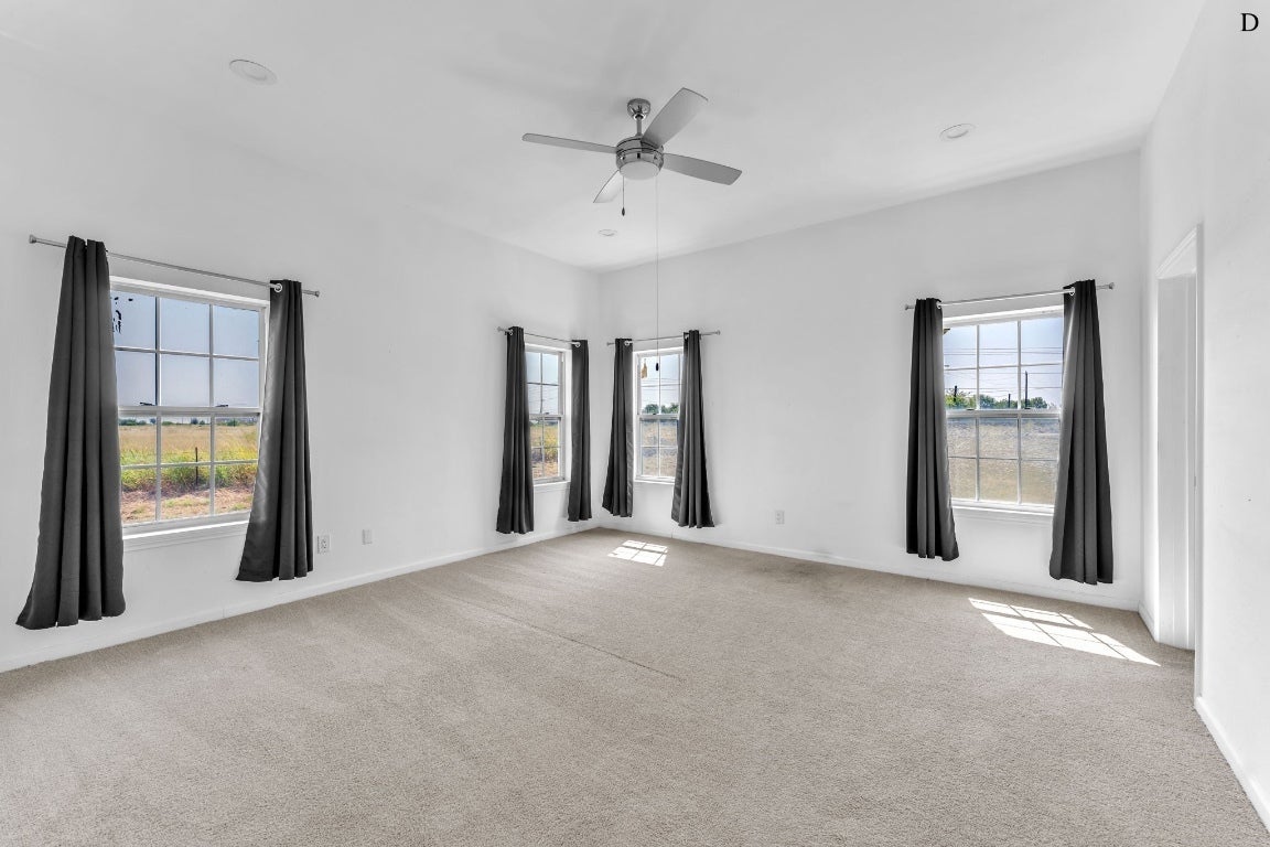 This expansive 10+ acre property includes multiple residences and a workshop: Main Home (3424 B): The primary residence features two living areas, a formal dining room, a breakfast nook, a sunroom, and a covered patio. Additional highlights include a spacious three-car garage, three bedrooms, two bathrooms, and an office/flex space. House C (located directly behind the main home): This home offers a covered patio, a large living area, a shared kitchen and dining space with a small laundry space. It includes three bedrooms and two bathrooms. House D (newest home, located on the far right side of the property): Designed with a welcoming foyer, this home opens into a centrally located living room. It also features a dining area, kitchen, laundry room with access to a two-car garage, and a covered patio. The layout includes three bedrooms, three full bathrooms, and one half bath. Workshop: A versatile two-room workshop with its own covered patio. The asphalt slab has an RV connection with water power and septic. House and rooms are labeled on top right.