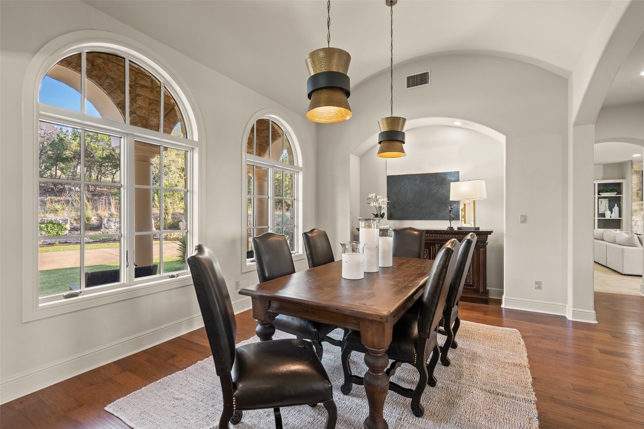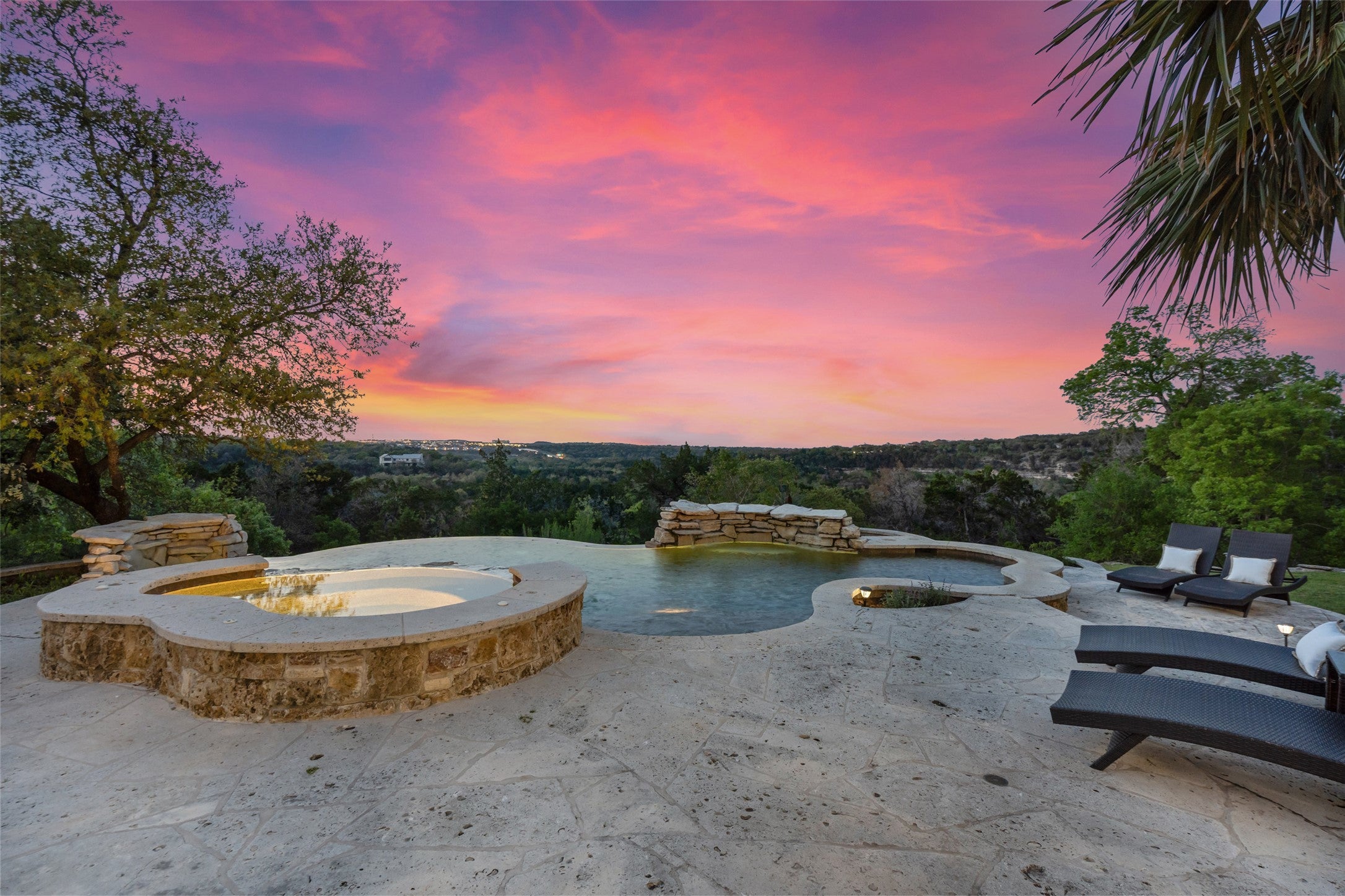Stunning Hill Country estate in an exclusive gated enclave of just 12 homes. Set on over 5 lush acres with dramatic canyon views, 11029 Arroyo Canyon Drive offers resort-style living with unmatched privacy and elegance. The property features a show-stopping pool with cascading waterfalls and spa, multiple covered outdoor living areas, and a private quarter-mile hiking trail- an ideal retreat for those who value nature, space, and sophistication. Inside, the home is filled with natural light and refined finishes. The expansive first-floor primary suite offers a serene escape with a sitting area, dual custom closets, and a spa-like bath featuring a soaking tub, walk-in shower, and dual vanities. A first-floor guest suite with a private bath ensures ideal accommodations for visitors. Upstairs, two spacious bedrooms, each with en-suite bathrooms, provide ample space for family or guests. The floor plan is thoughtfully designed for both daily living and entertaining, with a dedicated home office, formal and casual dining areas, multiple living spaces, and a large upstairs game room. The gourmet kitchen is equipped with premium appliances, abundant cabinetry, and opens seamlessly to the main living areas. Additional conveniences include a spacious laundry room, mudroom, and a two-car garage with a conditioned flex space ideal for a home gym, studio, or workshop. Located in the acclaimed Lake Travis ISD and just minutes from Lake Travis, Hill Country Galleria, dining, shopping, and outdoor recreation, this rare property offers a luxurious lifestyle immersed in natural beauty- just a short drive from downtown Austin. A rare opportunity to own a private Hill Country compound in one of Austin’s most peaceful settings.