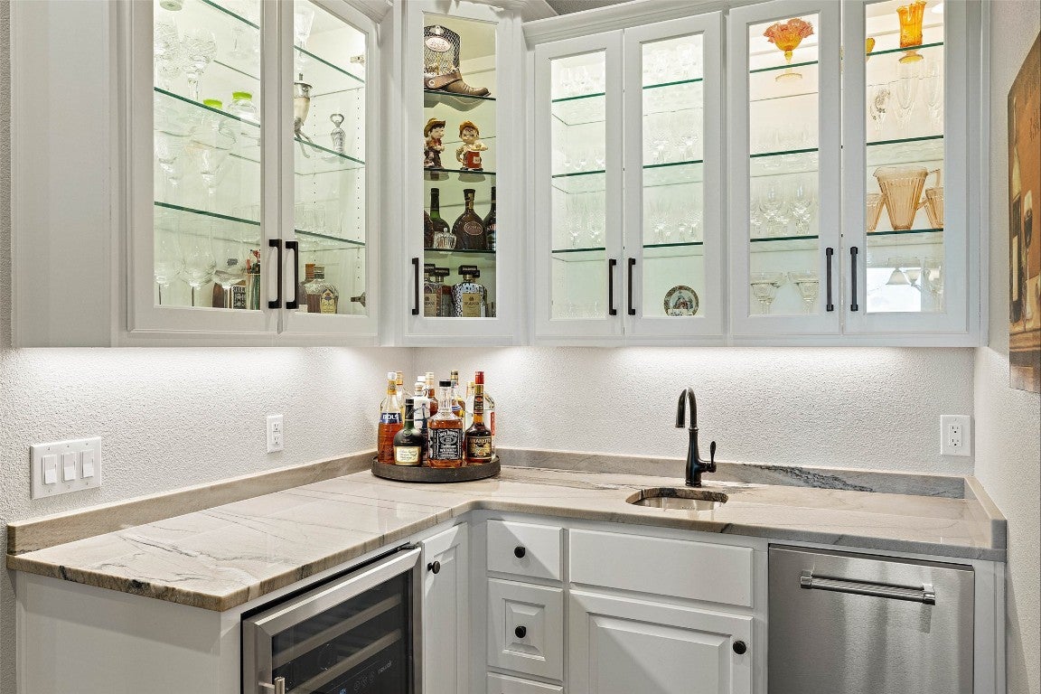 - Built-In Gas Oven, Built-In Gas Range, Built-In Refrigerator, Dishwasher, Disposal, Ice Maker, Microwave, Wine Refrigerator