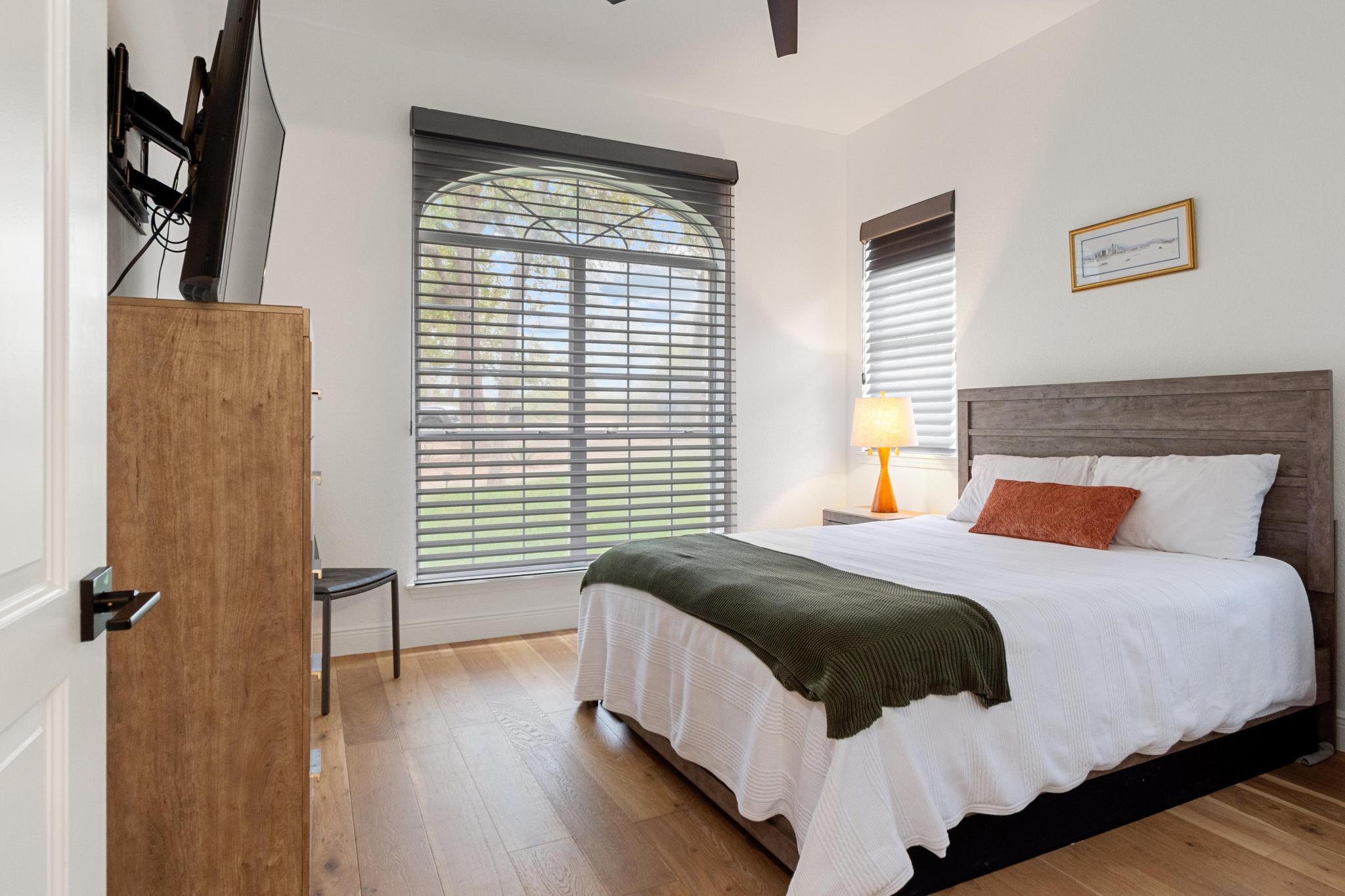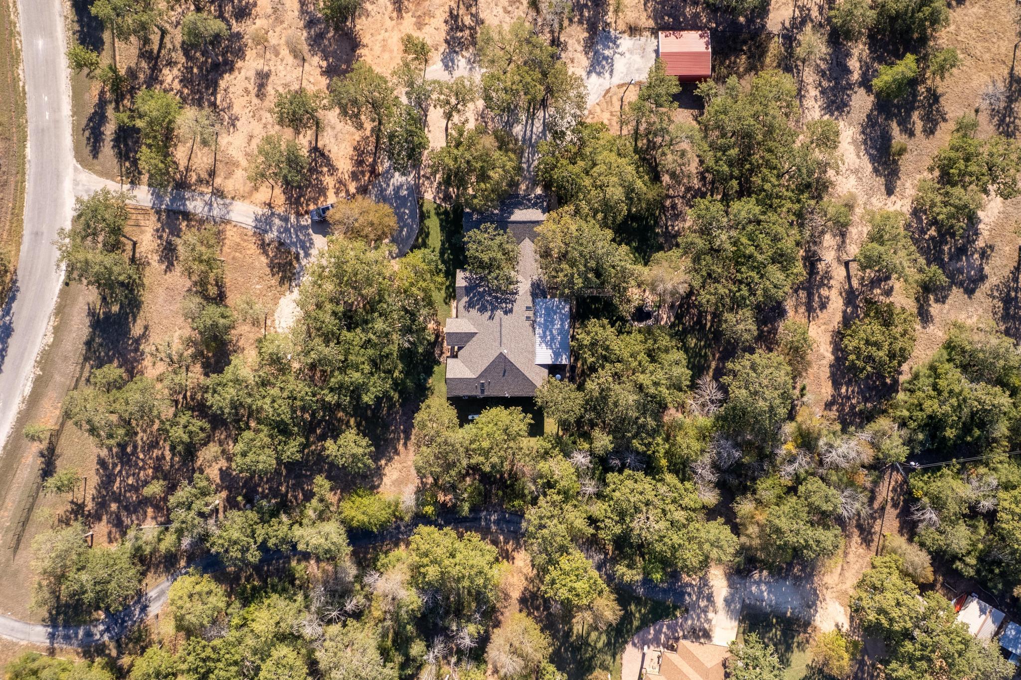 Discover peaceful Hill Country living on 5 private acres in The Oaks community. This updated property offers modern comfort surrounded by mature trees and open space, conveniently located closer to Bastrop than Elgin and only 30 minutes from Austin-Bergstrom International Airport. The main home features a spacious 3-bedroom, 2-bath layout with bright natural light and contemporary finishes. The oversized primary suite includes hardwood floors, large windows, and a renovated spa-style bath with a soaking tub, tiled walk-in shower, double vanities, and sleek black fixtures. Two additional bedrooms are generously sized with updated flooring and modern touches, and the dedicated home office includes custom wall shelving and statement lighting. Just off the laundry room, the home offers a built-on in-law suite thoughtfully finished inside the converted garage space. This suite includes a private bedroom and full bathroom, with potential for kitchenette space and laundry connections—ideal for multigenerational living, long-term guests, or rental flexibility. Enjoy multiple covered patios overlooking the tree-filled backyard, complete with walking paths and a stone water feature. The property also includes two large workshops/garages: a detached stone 2-car garage with power and AC, plus a red metal workshop with double roll-up doors for equipment, vehicles, or hobby use. Located on a quiet, gated street with room to roam, this property offers privacy, convenience, and a beautifully updated home with versatile living options.