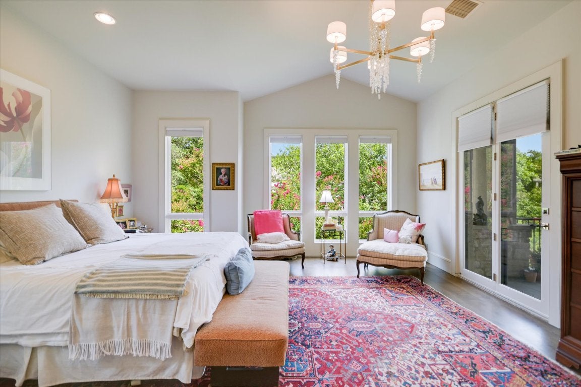 Beautifully updated home in the Fairways at Barton Creek. Welcome to this tastefully renovated home in the sought-after Fairways community of Barton Creek. Light, bright, and move-in ready, the residence offers scenic views, multiple outdoor living spaces, and a prime location next to Barton Creek Country Club. The home lives like a one-story, with the oversized primary suite on the main level and three additional bedrooms plus two full baths downstairs. With three living areas, two up and one down, there is space for everyone to gather or unwind. The chef’s kitchen is the heart of the home, featuring honed white marble countertops, Viking stainless steel appliances, a Sub-Zero refrigerator, warming drawer, double French-door oven, large center island, and a breakfast nook. It opens seamlessly to the great room, perfect for relaxed evenings or casual entertaining. The serene primary suite includes two walk-in closets and spa-like bath with soaking tub, dual vanities, marble countertops, and walk-in shower. A private door leads directly to the upper covered patio - ideal for morning coffee or relaxing evenings. Additional highlights include wood floors throughout, high ceilings, abundant natural light, a whole-house air filtration system, Levolor cellular shades, and a large utility room. The two-car garage also offers a dedicated golf cart space. Exclusions include drapes in the living area adjacent to the kitchen, formal dining room, the pink drapes in the bedroom downstairs, and the chandeliers in the breakfast room and formal dining room, both family heirlooms. The Fairways is a private, gated community of just 50 residences with direct access to the Fazio Foothills golf course. Residents enjoy proximity to Barton Creek Country Club, creating a true resort-style lifestyle. The homeowner pays 2 HOA dues: Fairways HOA dues & Barton Creek HOA dues. HOA dues cover the entrance gates and landscaping in common areas. Enjoy direct access to Barton Creek Country Club.