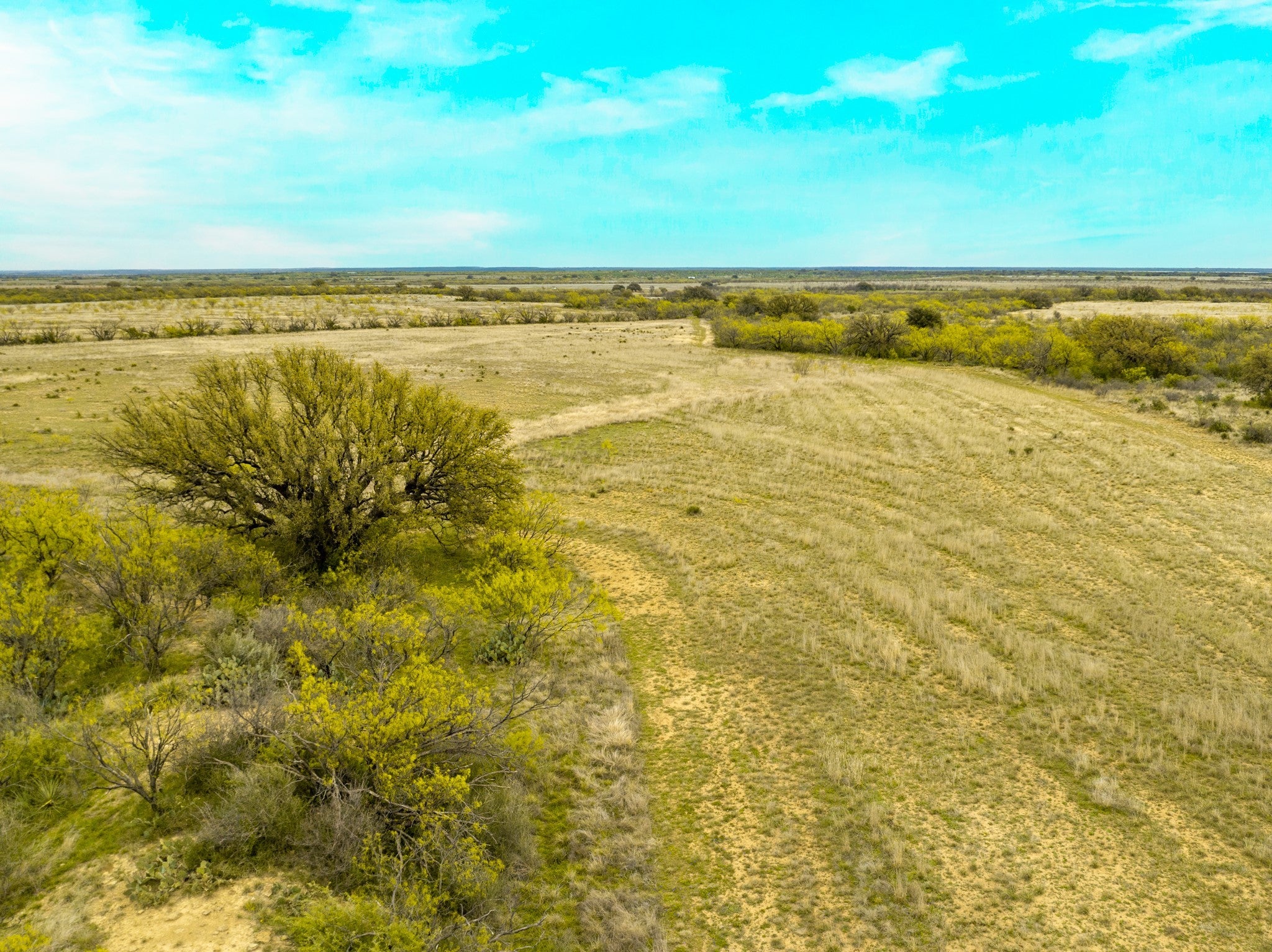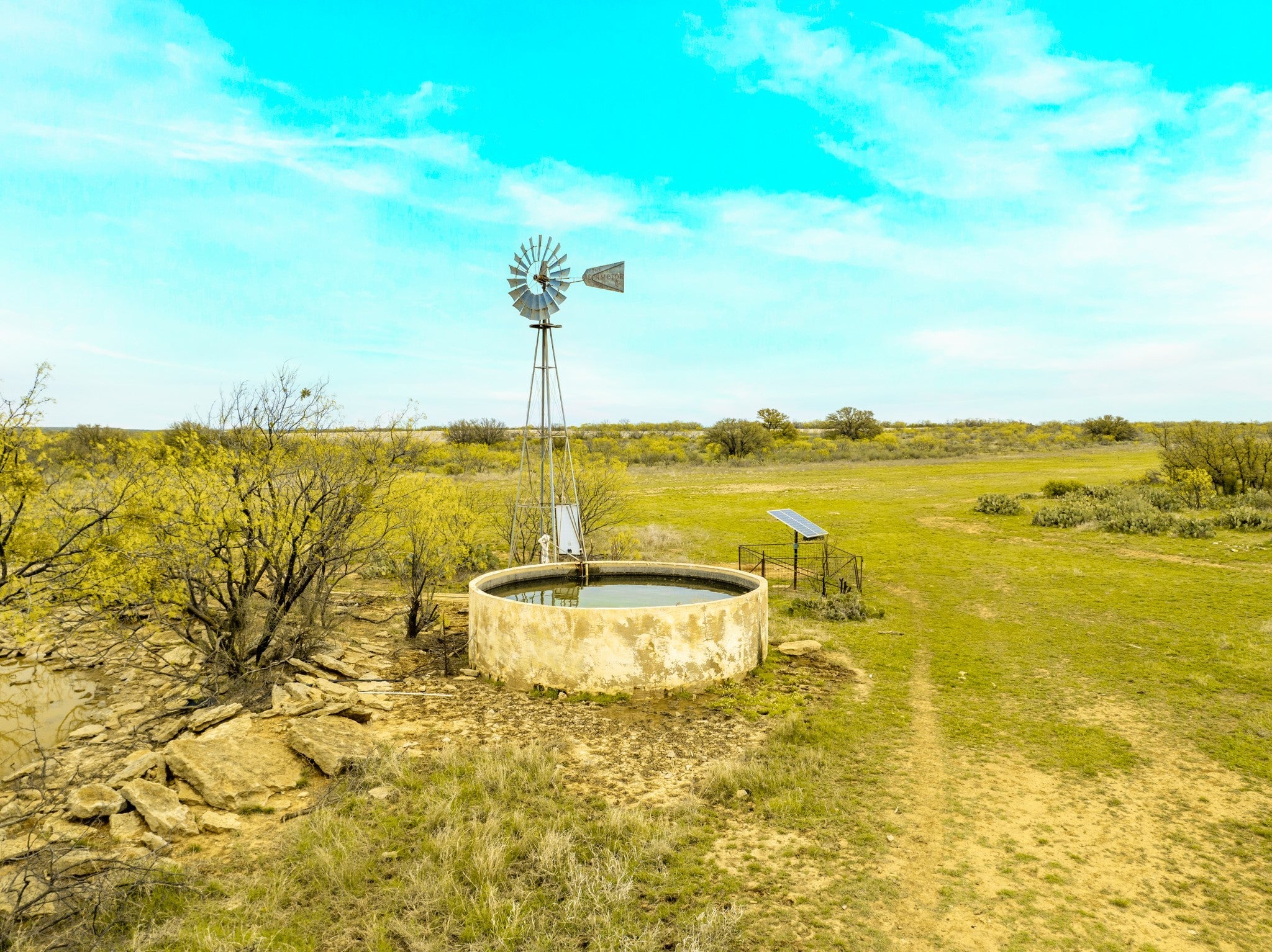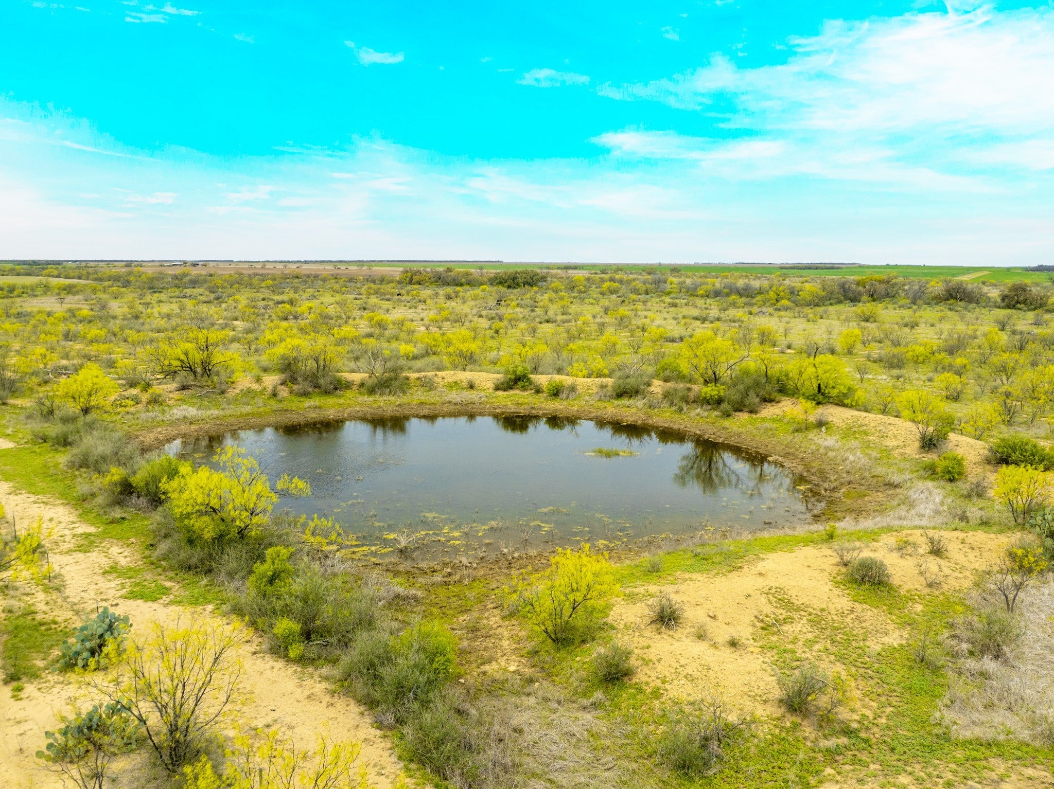 Welcome to Elm Creek Ranch, a 2,165 acre property in McCulloch County offers a rare opportunity to own a large, well-put-together ranch in the heart of Texas. This is a ranch you can step into and truly use, whether that’s building a family place to gather, running cattle, hunting, or holding as a long-term investment. The land lays out with a strong mix of productive bottomland, rolling terrain, and higher points with up to 100 feet of elevation change and wide views across the ranch. Two creeks run through the property, with both sides of each creek controlled. Little Elm Creek winds through the south end for over 1.5 miles, while Big Elm Creek runs through the north end for approximately 0.6 miles, adding character, habitat, and year-round appeal. The ranch is primarily mesquite with native brush, balanced by scattered live oaks and elm-lined creek bottoms, along with numerous fields planted in coastal grass and hay production. Water is a major highlight, with 20 stock ponds spread across the ranch, including one approximately 5 acres in size, along with additional water in both creeks after rains and several areas that offer potential for future lake sites. There are three water wells in place (one electric, one windmill, and one not currently equipped), as well as rural water access through Millersview-Doole Water Supply. The wildlife on the ranch consists of whitetail deer, turkey, hogs, coyotes, bobcats, and foxes. It is also not uncommon to see coveys of bobwhite quail while traveling through the ranch. Improvements include an original headquarters with two older homes, barns, outbuildings, working pens, about 2 miles of high fence, 7 miles of low perimeter fencing, cross fencing for rotational grazing, and a solid road system that allows you to comfortably access the entire property. Electricity is in place, and the property is currently under a 1-D-1 Agricultural Valuation for property tax purposes.