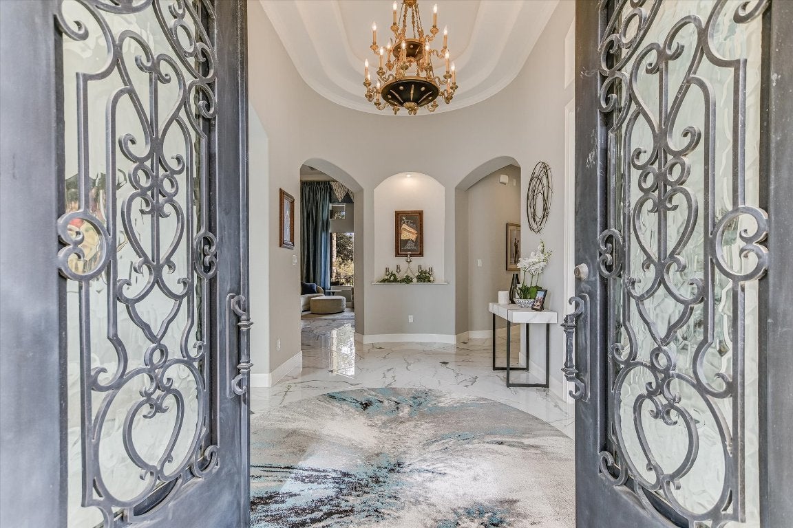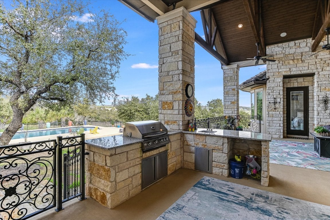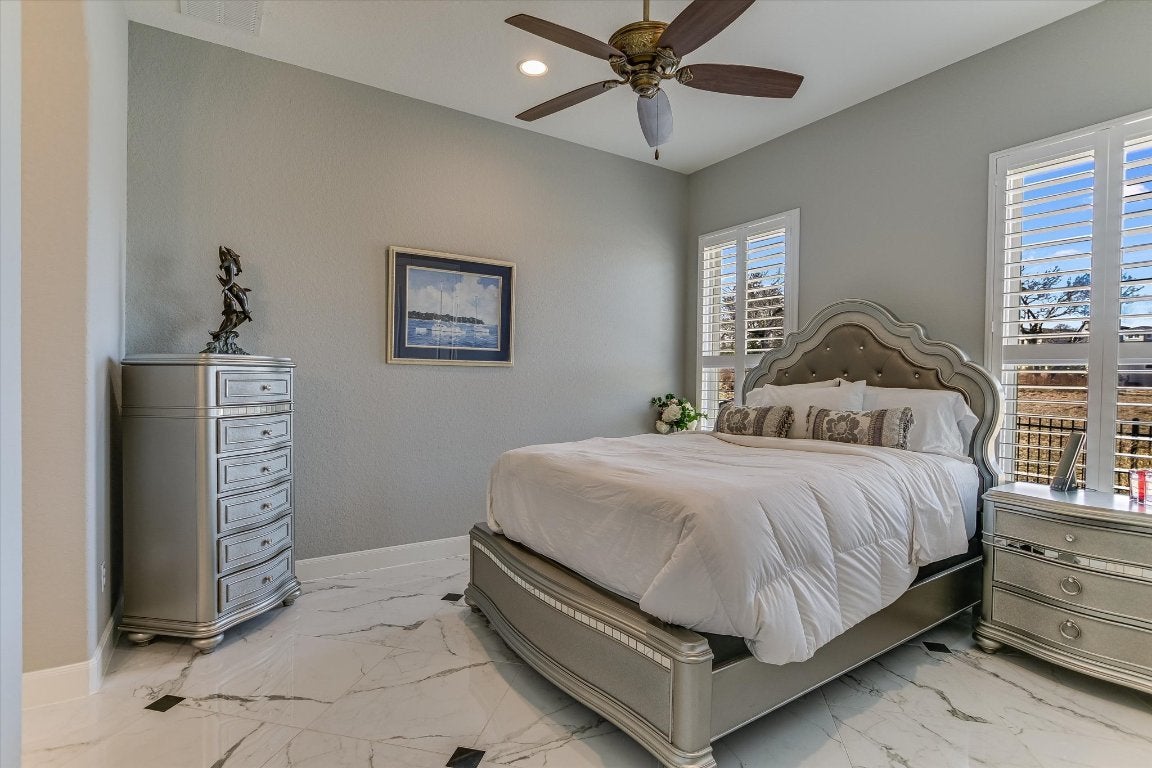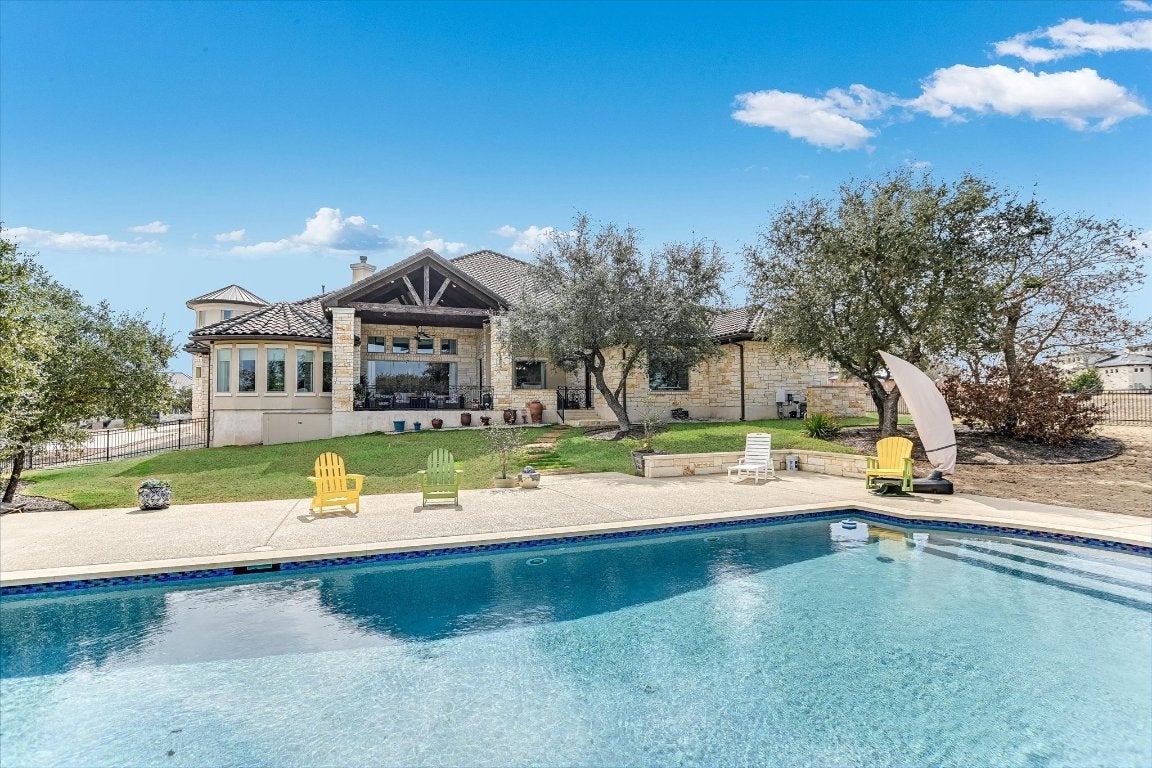 FURNISHED - UTILITIES & LAWN & POOL CARE INCLUDED: Luxury property available in the premier lakefront community of The Enclave at Canyon Lake. This cul-de-sac hilltop home offers stunning 360-degree panoramic views. This custom home is over 4,000 sq ft on 1+ acre, featuring a fruit tree orchard, large, heated pool, outdoor living areas, and a patio grilling area. High-level finishes are present throughout, 15-foot soaring ceilings, extra-large gourmet kitchen and oversized marble dining island, equipped with Thermador stainless steel appliances. Polished porcelain floors throughout the home. Enjoy a stunning owners suite and luxury porcelain bathroom with 20-foot tower ceiling and chandelier, separate fitness and movie rooms for your enjoyment. The home is highly energy-efficient and includes an oversized triple car garage with space for a golf cart. The exclusive gated community features an adjacent private airport and a nearby marina, with options for purchasing an airplane and hangar, as well as a boat and covered boat slip and 1+ adjacent acre, all available separately. The Enclave includes a fabulous privately owned 28-acre waterfront park with amenities such as a lakeside pool and pavilions, half mile of shoreline, cabanas, groomed walking paths, hiking trails and small cliffs for climbing. All utilities underground. The home offers exceptional outdoor living with privacy, scenic views and sunsets, luxury heated pool and fenced backyard. Experience the best of Canyon Lake, with opportunities for hiking, flying, boating, fishing, wind surfing or just relaxing on the lake.