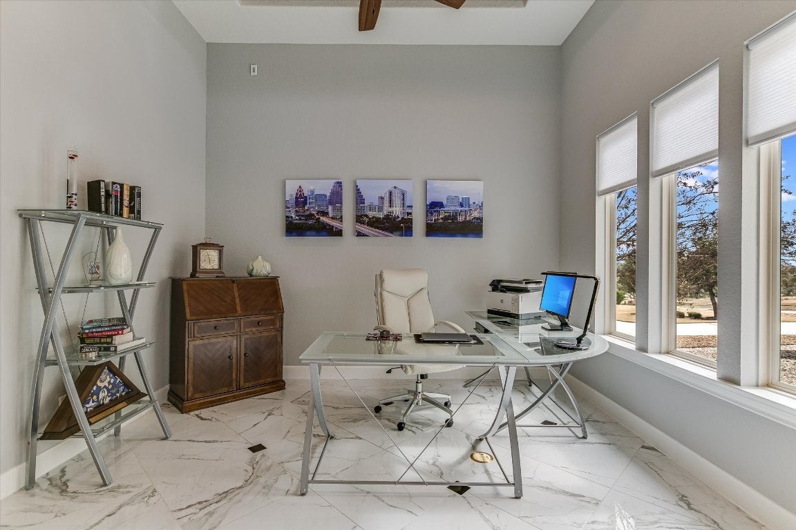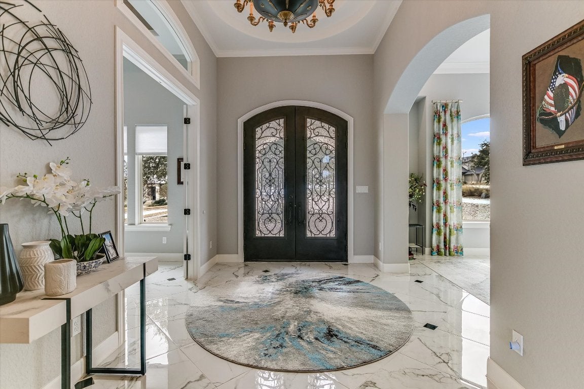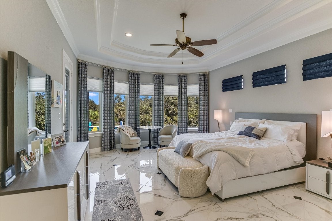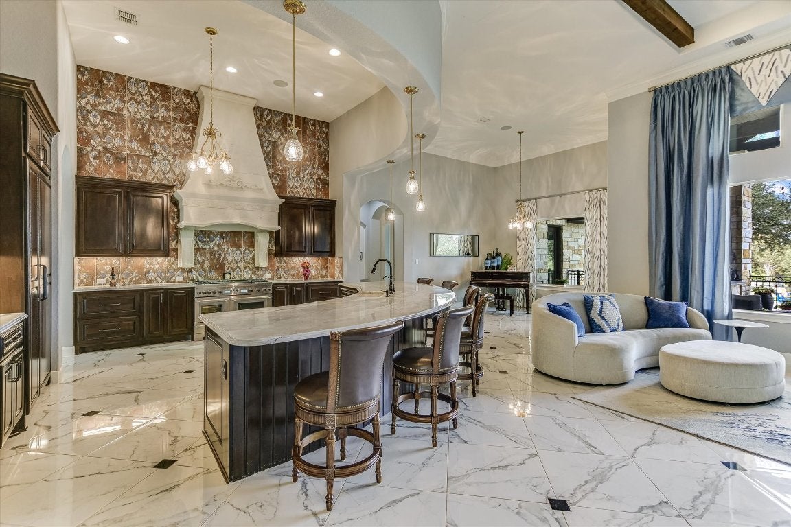 FURNISHED - UTILITIES & LAWN & POOL CARE INCLUDED: Luxury property available in the premier lakefront community of The Enclave at Canyon Lake. This cul-de-sac hilltop home offers stunning 360-degree panoramic views. This custom home is over 4,000 sq ft on 1+ acre, featuring a fruit tree orchard, large, heated pool, outdoor living areas, and a patio grilling area. High-level finishes are present throughout, 15-foot soaring ceilings, extra-large gourmet kitchen and oversized marble dining island, equipped with Thermador stainless steel appliances. Polished porcelain floors throughout the home. Enjoy a stunning owners suite and luxury porcelain bathroom with 20-foot tower ceiling and chandelier, separate fitness and movie rooms for your enjoyment. The home is highly energy-efficient and includes an oversized triple car garage with space for a golf cart. The exclusive gated community features an adjacent private airport and a nearby marina, with options for purchasing an airplane and hangar, as well as a boat and covered boat slip and 1+ adjacent acre, all available separately. The Enclave includes a fabulous privately owned 28-acre waterfront park with amenities such as a lakeside pool and pavilions, half mile of shoreline, cabanas, groomed walking paths, hiking trails and small cliffs for climbing. All utilities underground. The home offers exceptional outdoor living with privacy, scenic views and sunsets, luxury heated pool and fenced backyard. Experience the best of Canyon Lake, with opportunities for hiking, flying, boating, fishing, wind surfing or just relaxing on the lake.