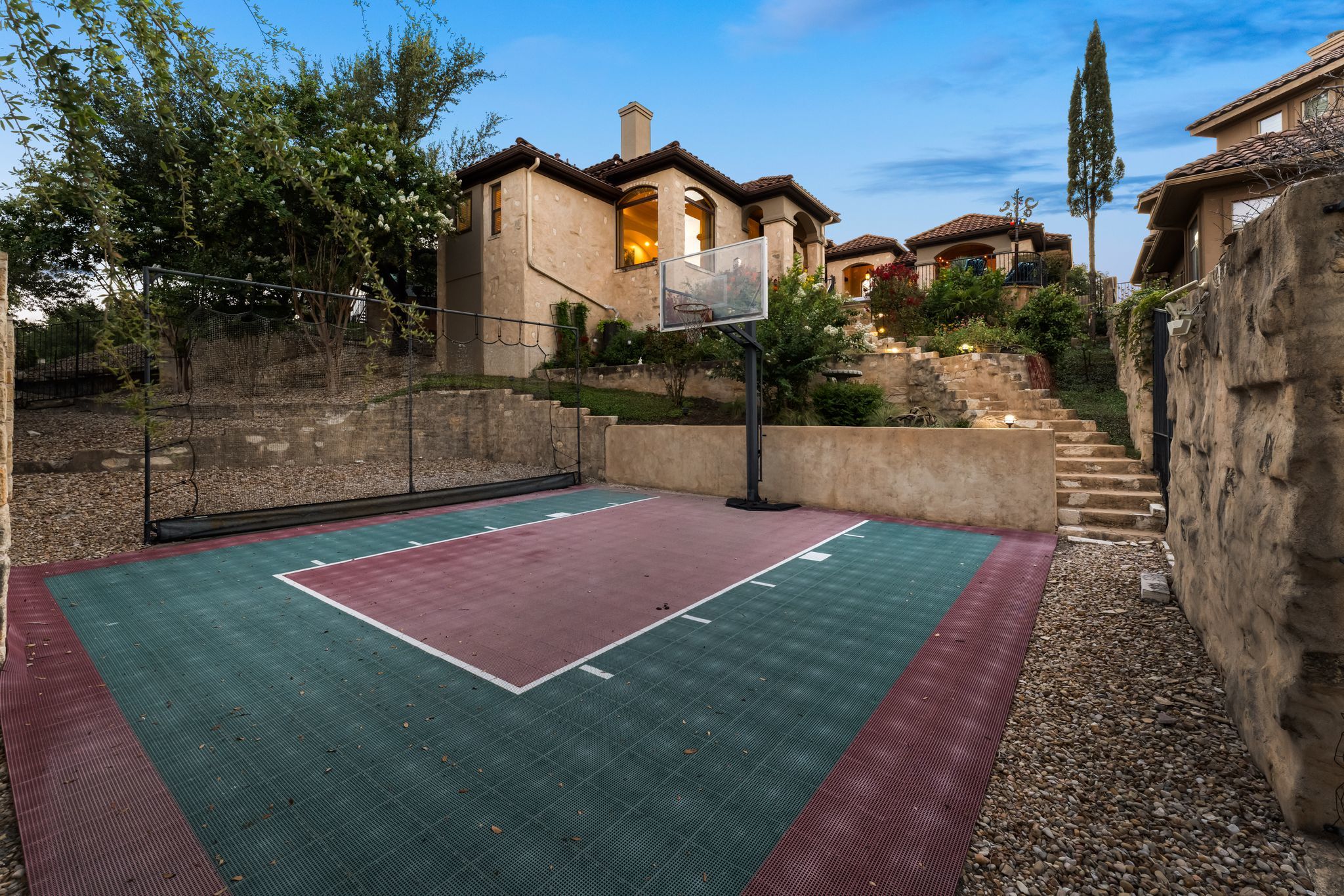 - Basketball Court, Balcony, Barbecue, Exterior Steps, Garden, Outdoor Grill, Playground, Private Yard, Sport Court