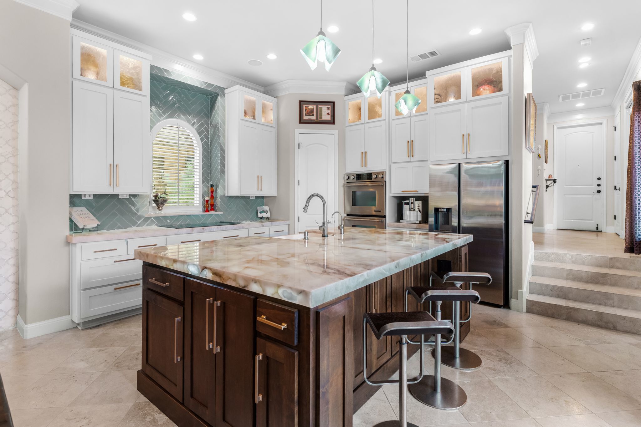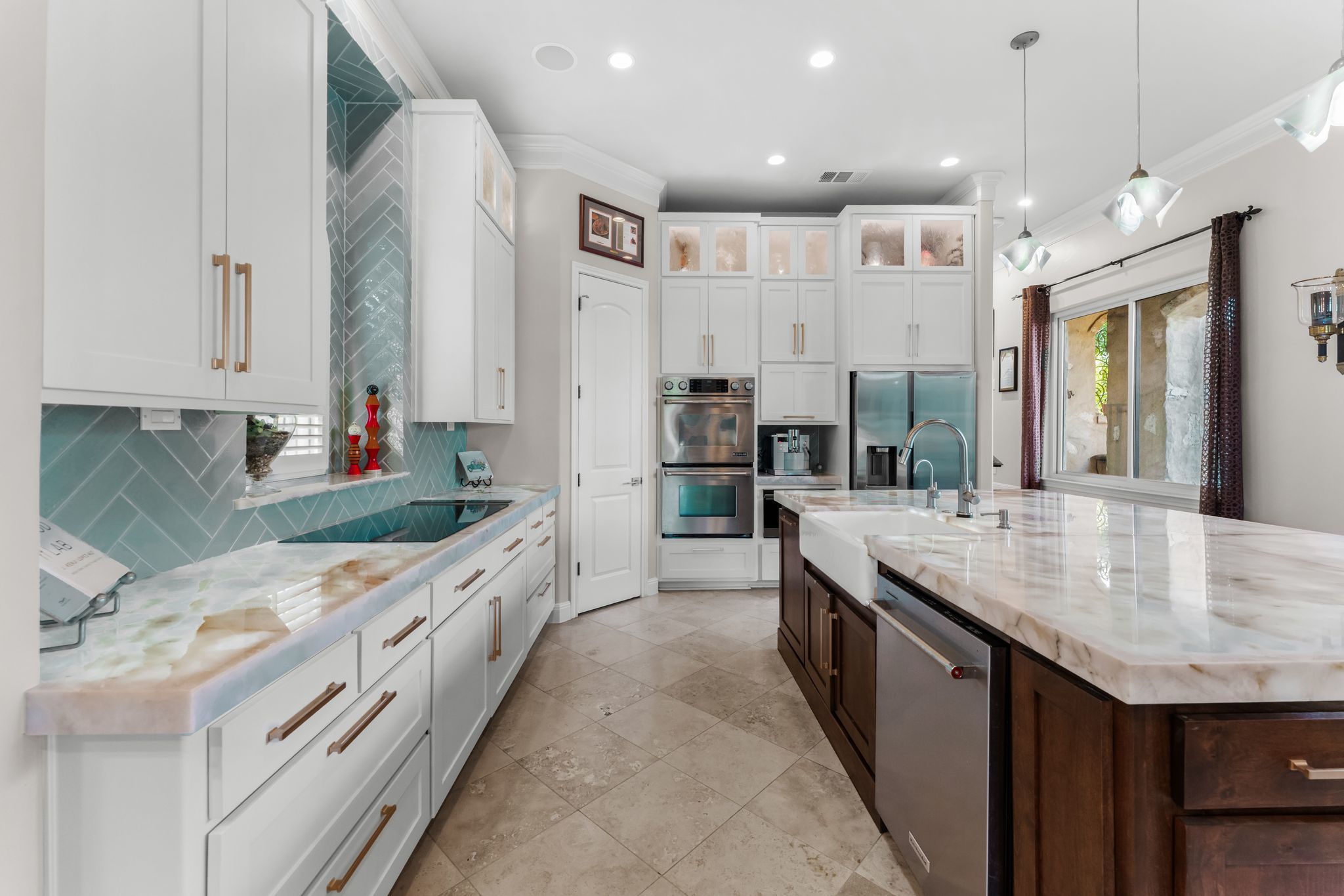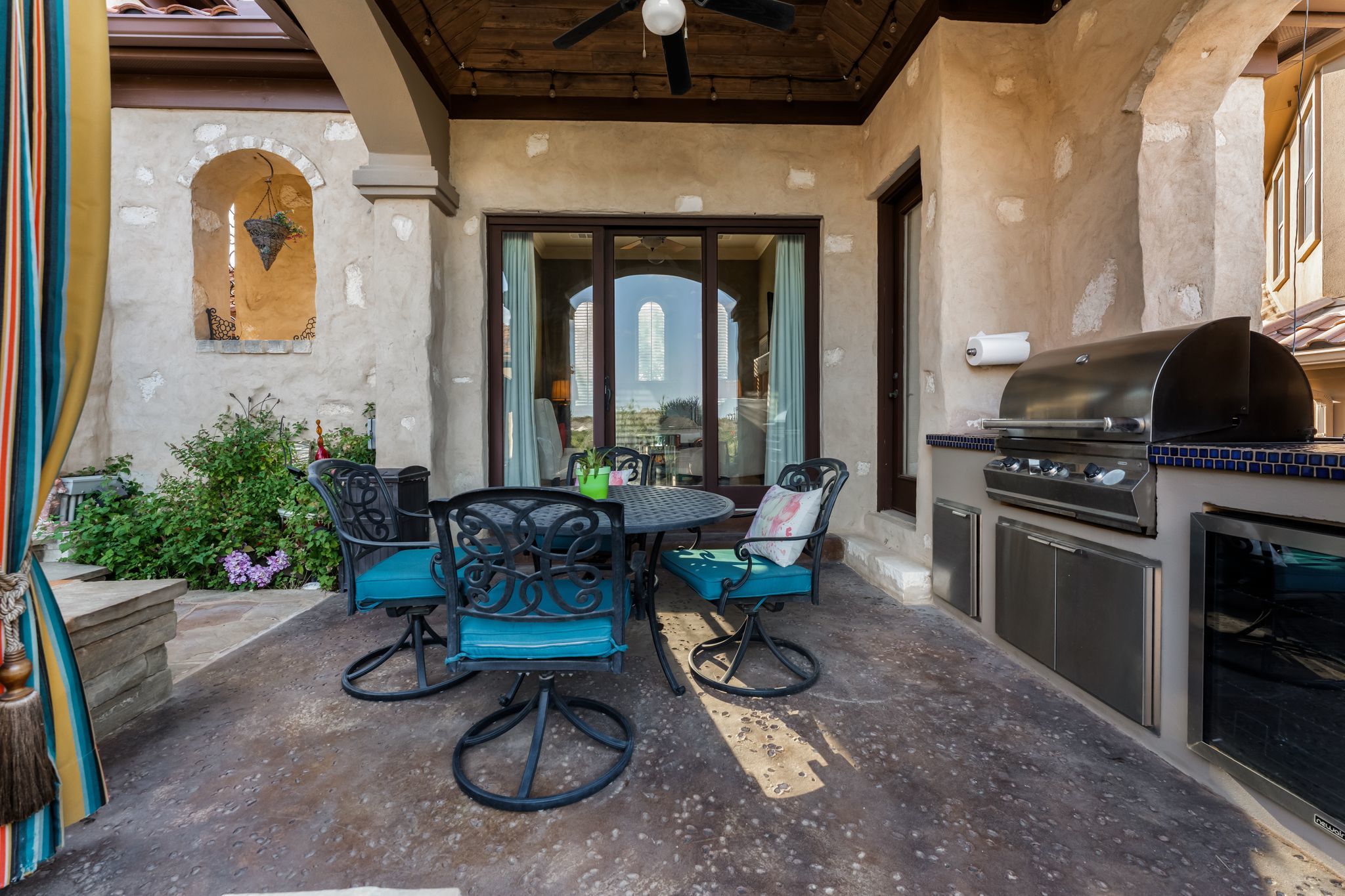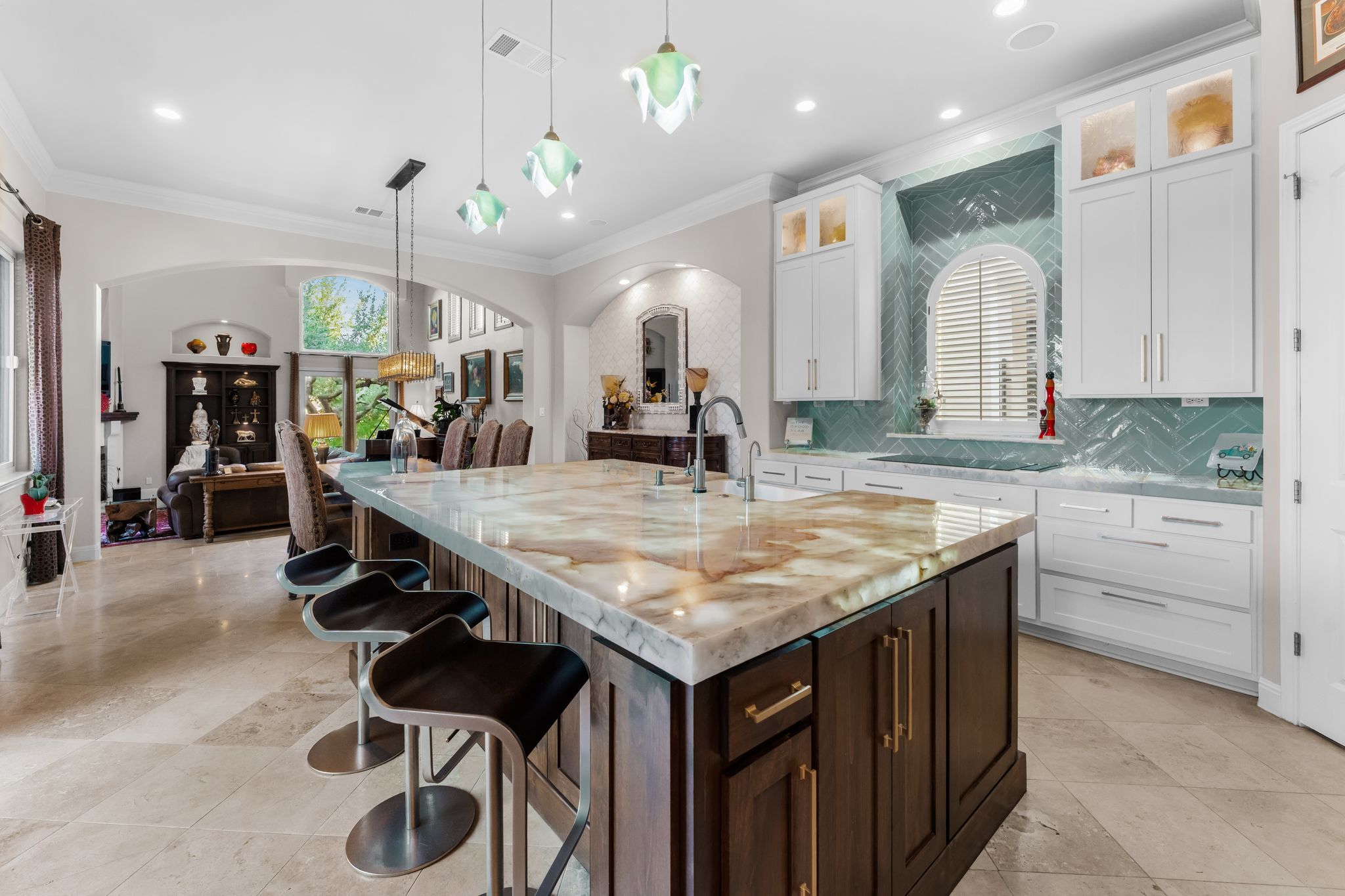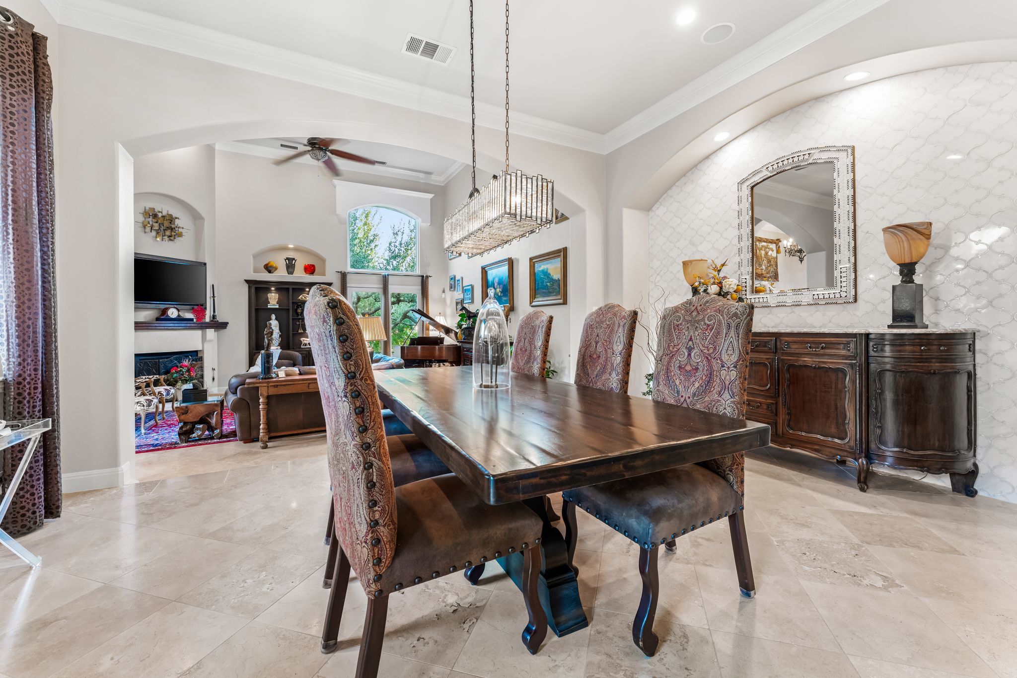 What if your backyard felt like a private resort - and Lake Austin was just a golf cart ride away? Set on a beautifully landscaped 0.4-acre lot in the coveted Lake Pointe community, this Mediterranean-inspired 4-bedroom, 4.5-bath villa pairs timeless architecture with a poolside lifestyle rarely found this close to the water. Inside, soaring ceilings, travertine floors, arched passageways, and a striking domed ceiling give the home a sense of character and warmth. The 2024-remodeled chef’s kitchen is both dramatic and functional, featuring backlit quartzite countertops, custom cabinetry, and an induction cooktop. A well-appointed utility room adds convenience with an ice maker, wine fridge, and additional storage. Designed for entertaining and everyday relaxation, the backyard feels like a private retreat with a heated infinity-edge pool and spa, outdoor kitchen, multiple patios, and mature trees providing privacy and shade. A detached casita with its own en suite bath offers ideal space for guests, extended family, or a quiet home office. Additional highlights include three fireplaces, automatic shades, plantation shutters, Renewal by Andersen windows and doors, zoned HVAC with newer systems (2017 & 2023), a 3-car garage with epoxy floors and built-ins, and a private basketball half-court. Lake Pointe residents enjoy private access to Lake Austin, scenic hiking trails, and Freedom Boat Club dock service, where your boat of choice is delivered directly to the community dock. The neighborhood is also adding two new docks, including a day dock with boat slips and a double-decker swim platform with sunning areas and a trapeze into the lake. Just one mile to Lake Pointe Elementary, a quick golf cart or e-bike ride to the lake, five minutes to Whole Foods, H-E-B, and the Hill Country Galleria, and approximately 20 minutes to Downtown Austin. Homes that combine this level of privacy, outdoor living, and lake lifestyle in Lake Pointe rarely come along.