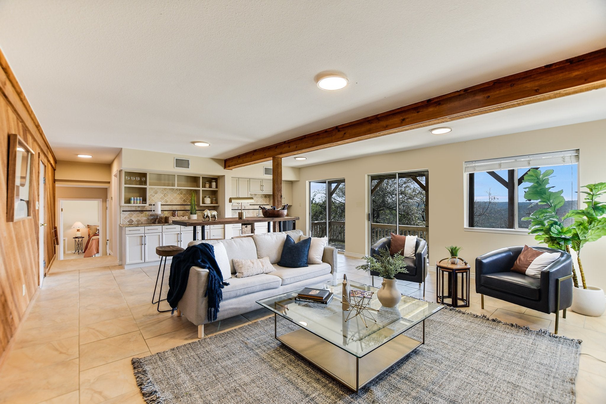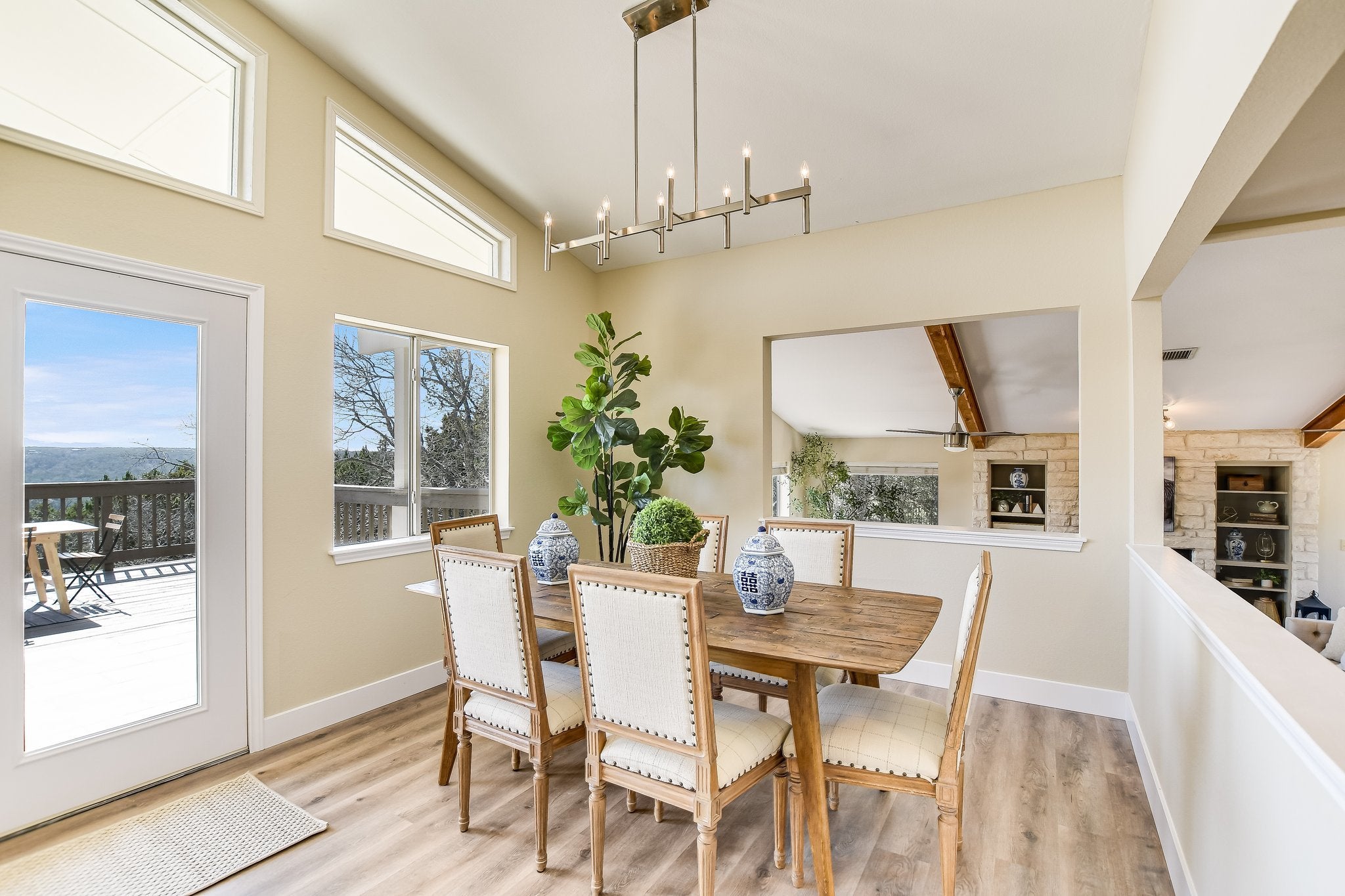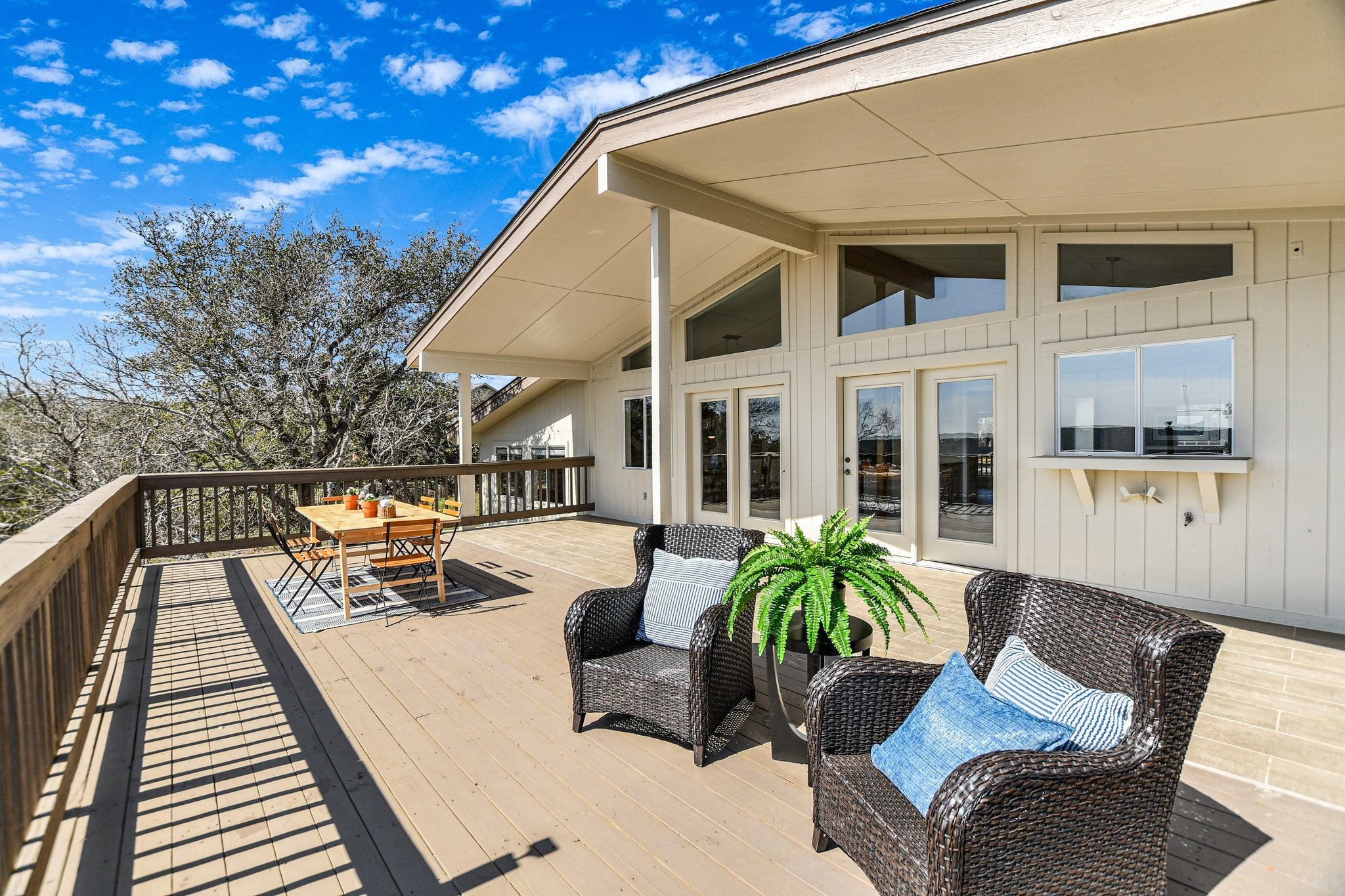 This private retreat offers panoramic views on a 3.88 acre cul-de-sac lot! The long asphalt and concrete driveway leads to the updated stone home that includes 3 bedrooms, 2.5 baths, 3 living areas, two decks, and two covered patios. This property also includes an attached two-car garage, an attached storeroom, a detached garage/workshop, a greenhouse, and a well house. Updates include luxury vinyl flooring, new carpet, fresh paint inside and out, new ceiling fans, and new light fixtures. The primary bathroom has been updated with a free-standing tub, quartz counters, new sinks and faucets, new tile on floors and shower walls, a frameless shower door, and new toilet. New stainless kitchen appliances include induction cooktop, wall oven, dishwasher, and refrigerator. Quality upgrades include a new sliding door in the primary bedroom that leads to a deck with new joists, a new French door in the study/flex room, a new tile and wood upper deck ( including some new joists), several new windows, new water softener, new water filtration system, roof replacement (2023), two replaced AC units (2024), and replaced well pump (2023). The main floor has a living area, a kitchenette, two bedrooms, and full bathroom. The main living areas are on the second level as to best enjoy the unobstructed views. The large family room has a cathedral ceiling and a fireplace. The study/flex room has built-in shelves, a laundry closet, a storage closet, a walk-in closet, and a door leading to a balcony. The kitchen and dining area overlook the upper deck & the gorgeous views. The private primary bedroom is tucked away with access to its own deck. This home is zoned to Mason Elementary, Cedar Park Middle School, & Cedar Park High School, which won the Texas UIL 5A Lone Star Award for being the most accomplished 5A high school in academics, sports, and music. Although privately located, this home is conveniently located near 1431, Hwy 183, RR620, TR 45, HEB, shopping, and restaurants. No HOA.
