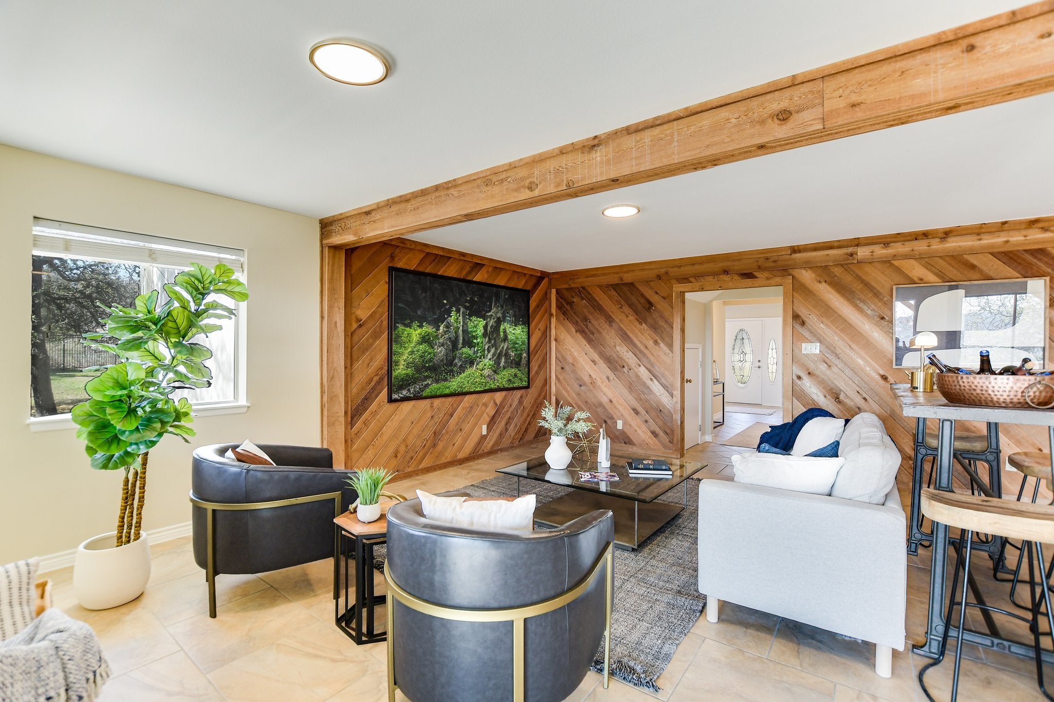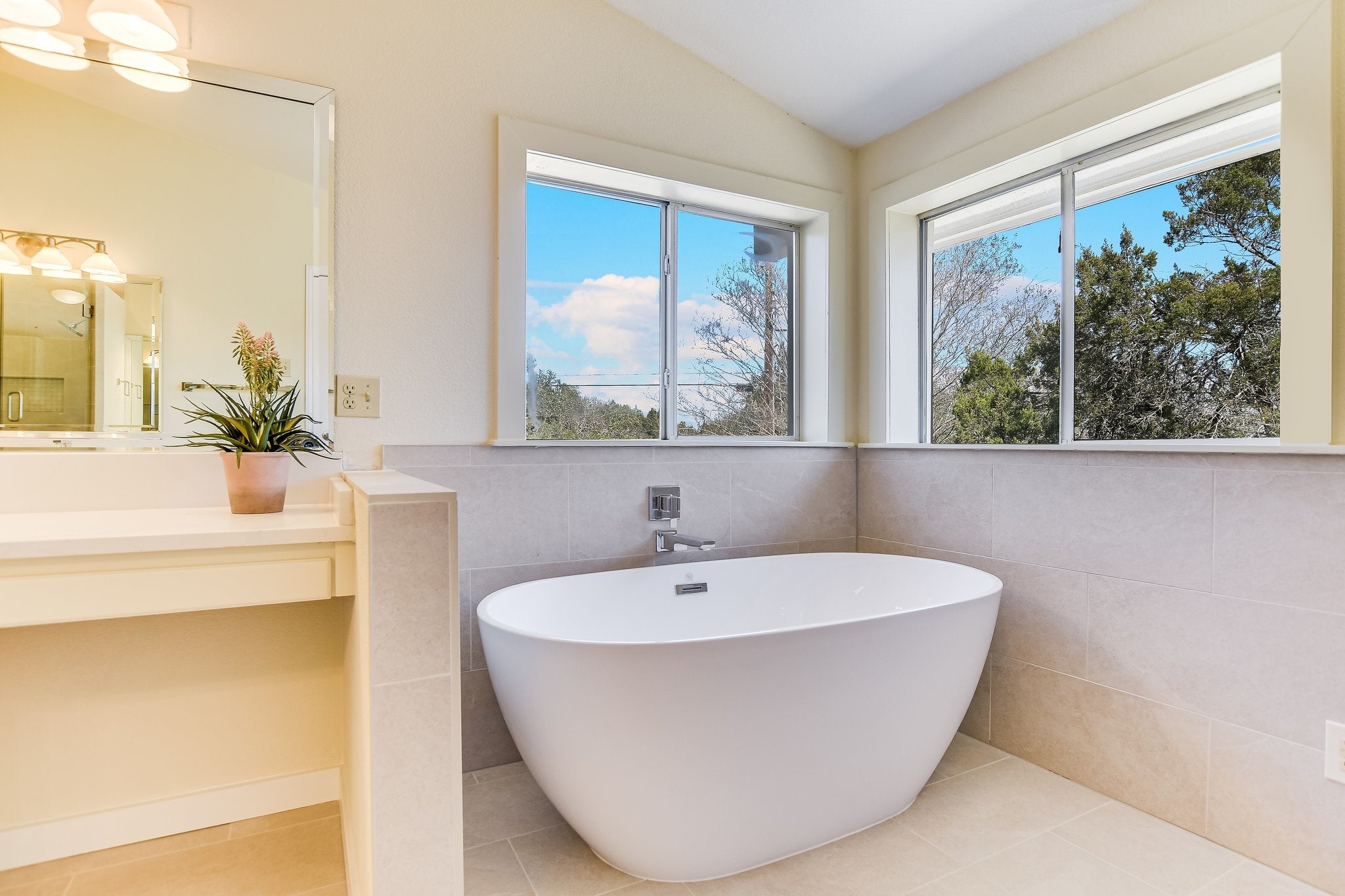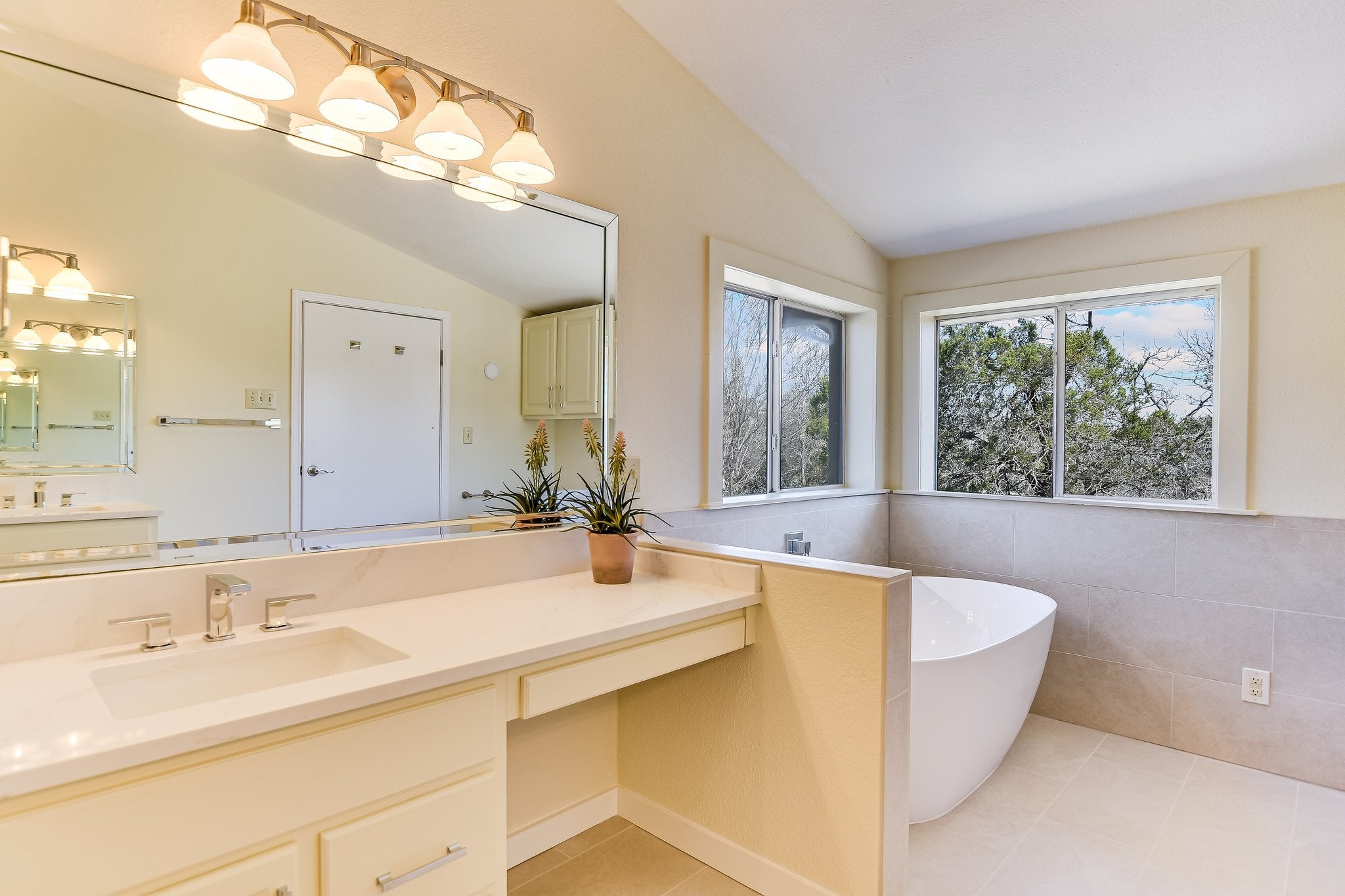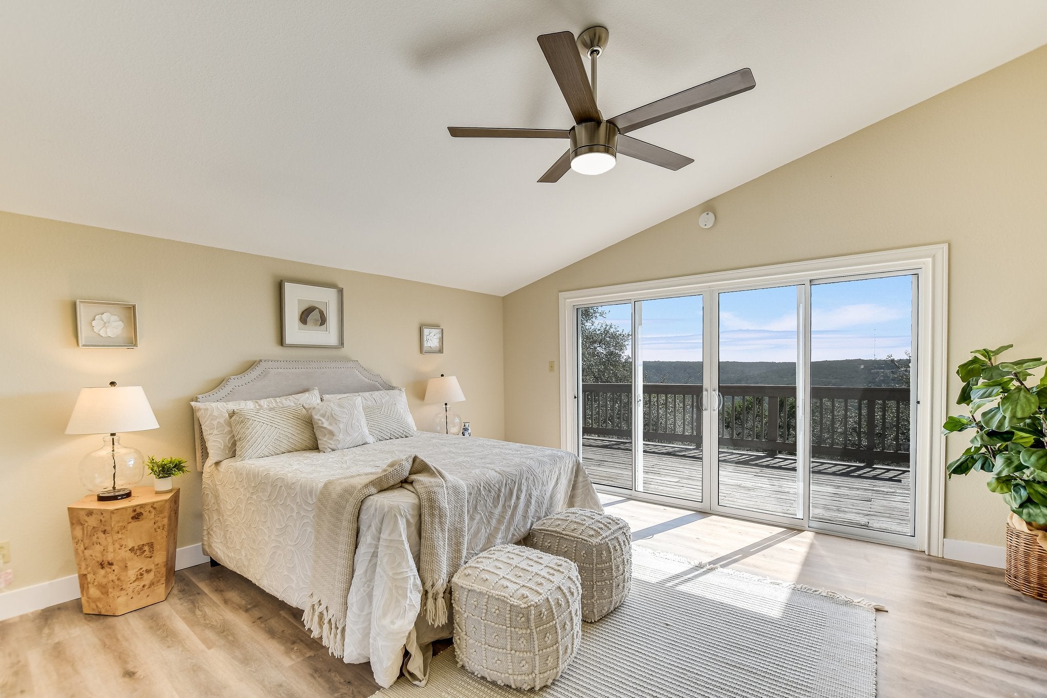 This private retreat offers panoramic views on a 3.88 acre cul-de-sac lot! The long asphalt and concrete driveway leads to the updated stone home that includes 3 bedrooms, 2.5 baths, 3 living areas, two decks, and two covered patios. This property also includes an attached two-car garage, an attached storeroom, a detached garage/workshop, a greenhouse, and a well house. Updates include luxury vinyl flooring, new carpet, fresh paint inside and out, new ceiling fans, and new light fixtures. The primary bathroom has been updated with a free-standing tub, quartz counters, new sinks and faucets, new tile on floors and shower walls, a frameless shower door, and new toilet. New stainless kitchen appliances include induction cooktop, wall oven, dishwasher, and refrigerator. Quality upgrades include a new sliding door in the primary bedroom that leads to a deck with new joists, a new French door in the study/flex room, a new tile and wood upper deck ( including some new joists), several new windows, new water softener, new water filtration system, roof replacement (2023), two replaced AC units (2024), and replaced well pump (2023). The main floor has a living area, a kitchenette, two bedrooms, and full bathroom. The main living areas are on the second level as to best enjoy the unobstructed views. The large family room has a cathedral ceiling and a fireplace. The study/flex room has built-in shelves, a laundry closet, a storage closet, a walk-in closet, and a door leading to a balcony. The kitchen and dining area overlook the upper deck & the gorgeous views. The private primary bedroom is tucked away with access to its own deck. This home is zoned to Mason Elementary, Cedar Park Middle School, & Cedar Park High School, which won the Texas UIL 5A Lone Star Award for being the most accomplished 5A high school in academics, sports, and music. Although privately located, this home is conveniently located near 1431, Hwy 183, RR620, TR 45, HEB, shopping, and restaurants. No HOA.