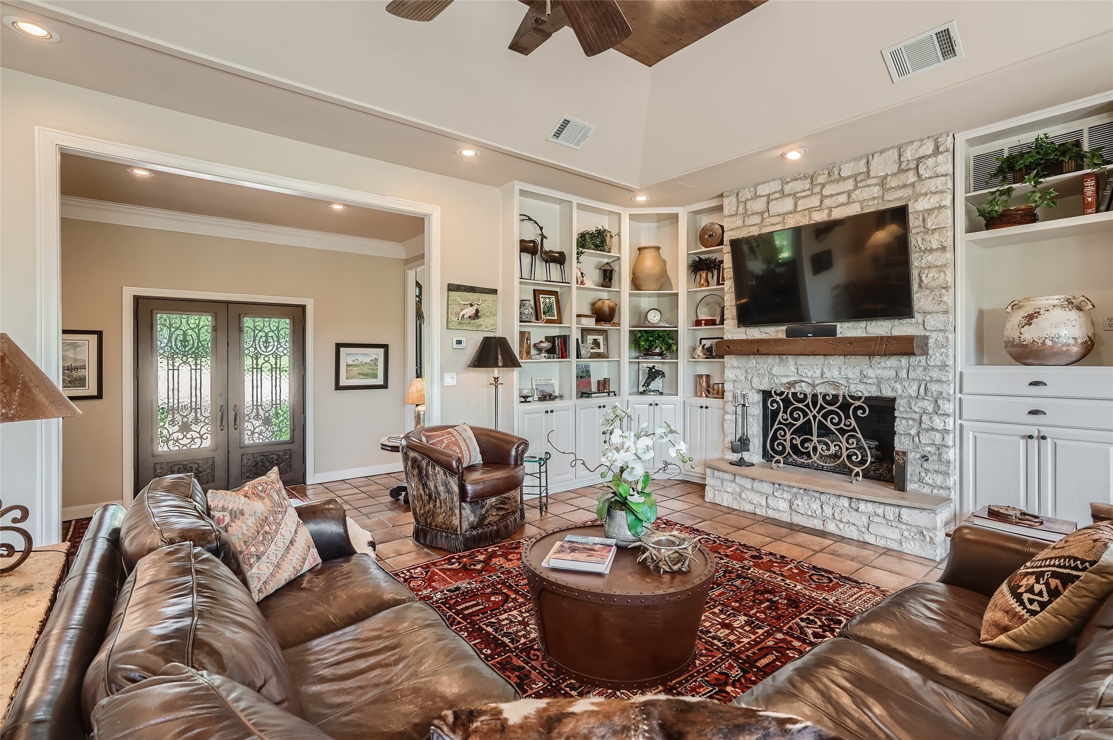 - Family Room, Gas Log, Gas Starter, Insert, Propane, Raised Hearth, Stone