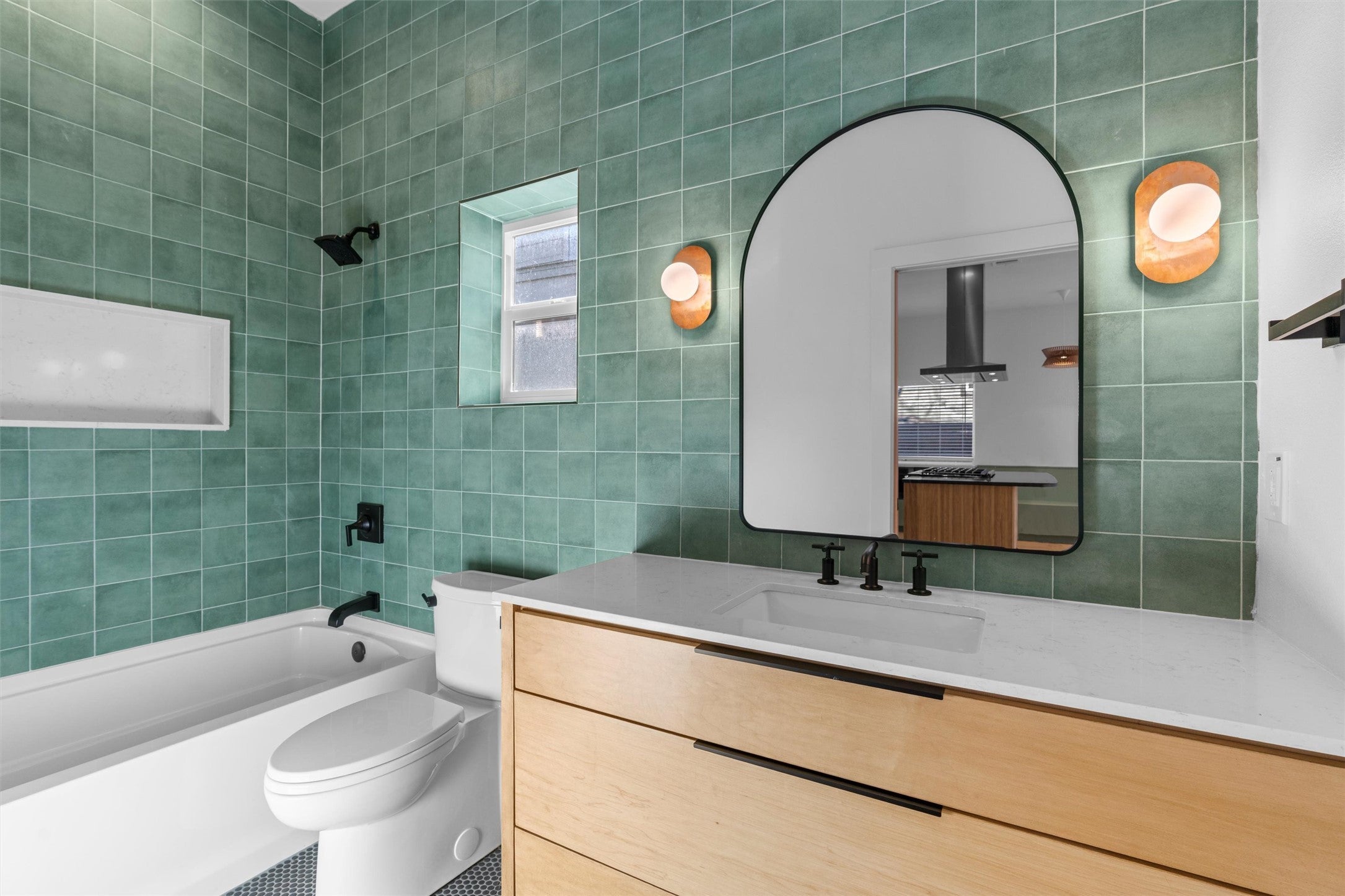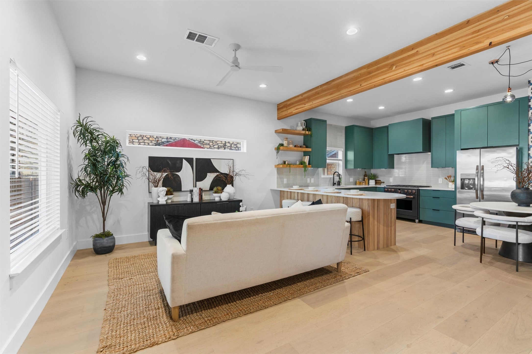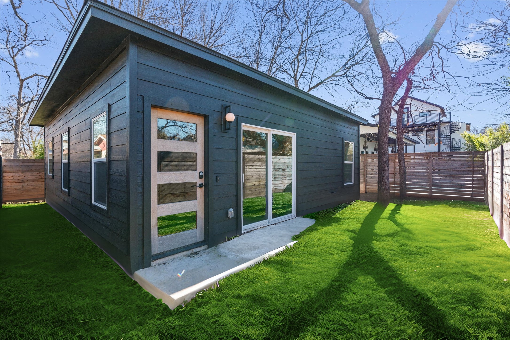 A true masterpiece of design located in the heart of East Austin! Thoughtfully remodeled by Kelle Contine Interior Design, this 3-bedroom, 2-bathroom residence is a celebration of style and function. The property is uniquely positioned for those who love to host, featuring a separate 1/1 casita that serves as a private, luxurious retreat for guests or extended family. The main house is defined by its curated aesthetic, featuring Chesapeake White Oak flooring, Kristy Stafford wallpaper, and custom wood tambour accents. The designer kitchen is the social hub of the home, featuring Cafe appliances, a wine fridge, and a built-in banquette. For formal relaxation, the primary suite offers a luxurious bathroom with a separate soaking tub and a generous walk-in shower. The separate 1-bedroom casita is a standout amenity, complete with a private entrance, a trendy kitchen with KitchenAid appliances, a beverage fridge, and a large walk-in closet. It even includes its own built-in desk and washer/dryer, ensuring your guests have every convenience at their fingertips. The outdoor living space is anchored by a majestic heritage pecan tree, with a deck designed for effortless entertaining and relaxation. Located just blocks from the Hike & Bike Trail, Rainey Street, and downtown, you are walking distance to Austin’s best dining, including EastSide Tavern and Emmer & Rye. This property perfectly blends contemporary design with a premier lifestyle location.