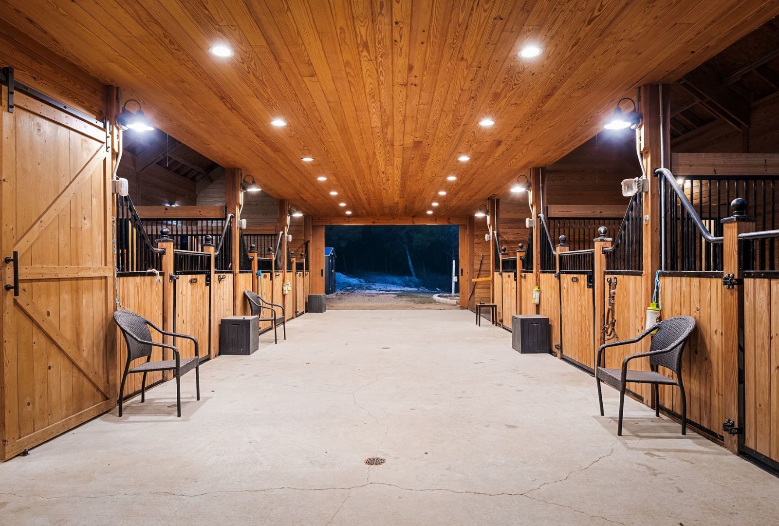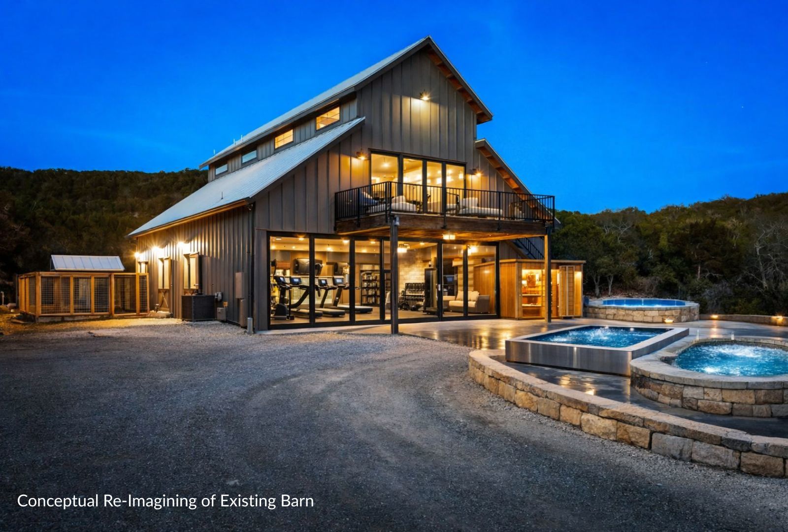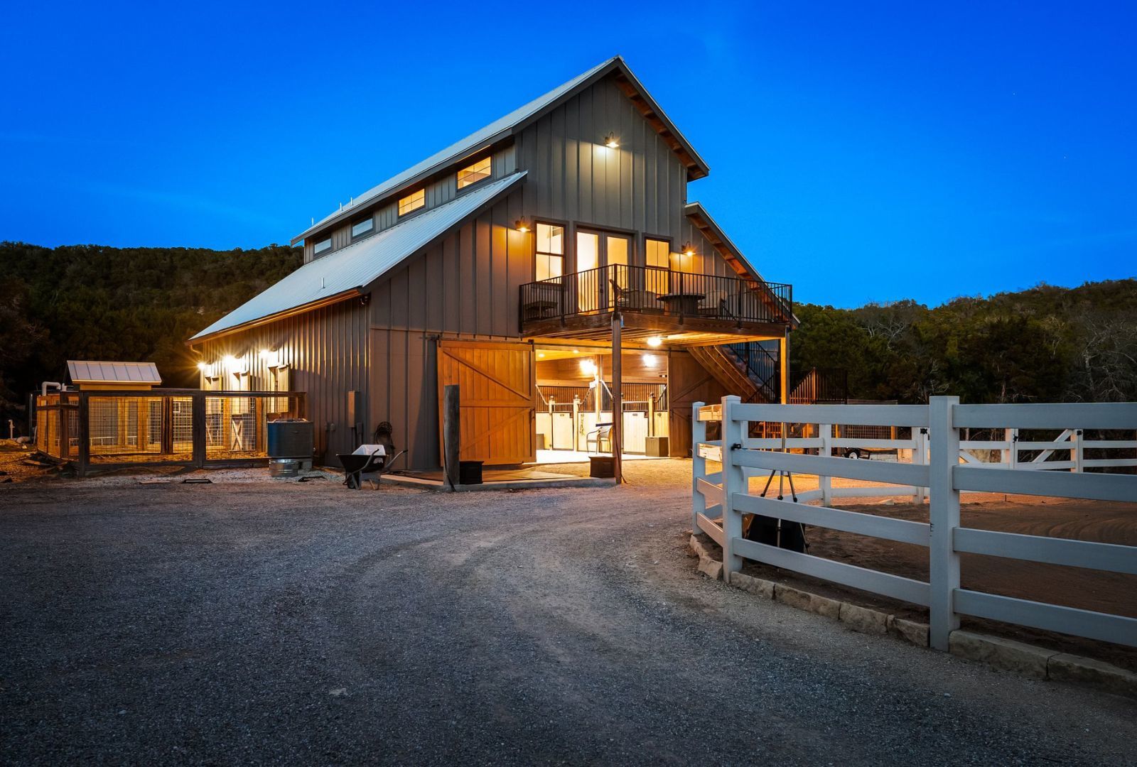 Perched on a private, gated 10+/- acre estate at the end of the road and backing to the Balcones Canyonlands Preserve, this exceptional property offers sweeping views of Lake Travis and the surrounding Hill Country with rare privacy just minutes from lake access. The thoughtfully designed compound includes a 4,744+/- sq ft custom main residence, a 2,600+/- sq ft guest house, and premier equestrian facilities, all oriented to capture the protected natural landscape that will remain forever wild. The main residence features dramatic two-story windows, multiple indoor and outdoor living areas, a two-sided stone fireplace, and expansive covered and uncovered patios with an outdoor kitchen and fireplace, ideal for entertaining and sunset views. The primary suite offers a spa-like bath with copper sinks, soaking tub, walk-in shower, and custom closet. A chef’s kitchen with a Bertazzoni range, custom cabinetry, butler’s pantry, office, media room, and additional living spaces complete the home. The guest house includes a private courtyard with cooking center, flexible bedroom and office spaces, porcelain tile floors, and an upstairs apartment with private entrance and preserve views. Equestrian amenities include a ~2,000 sq ft six-stall barn with smart-controlled water systems, indoor and outdoor wash racks, tack room with bath, and a second-floor one-bedroom apartment with balcony, plus a riding arena and two fenced pastures. The barn offers versatility and could be reimagined to support a variety of hobbies from a party barn for entertaining, to a toy barn, or a private workshop, gym, or creative studio. Located about 20 minutes from the iconic Pennybacker Bridge, the property offers preserve frontage, approximately one mile of trails, multiple dwellings, and turnkey horse facilities, ideal for a private estate, equestrian operation, or family compound, all while remaining just 10 minutes from the Four Points area and about 30 minutes to downtown Austin.