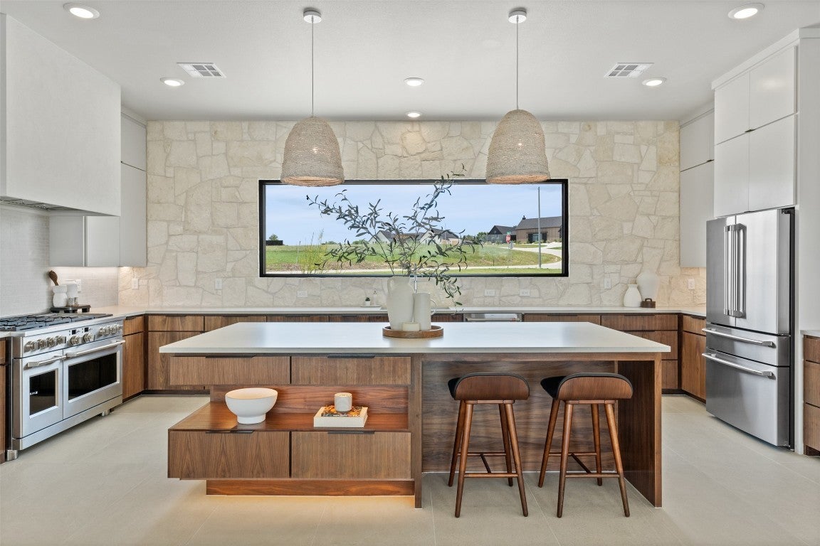 - Double Oven, Dishwasher, Disposal, Gas Range, Microwave, Refrigerator, Tankless Water Heater