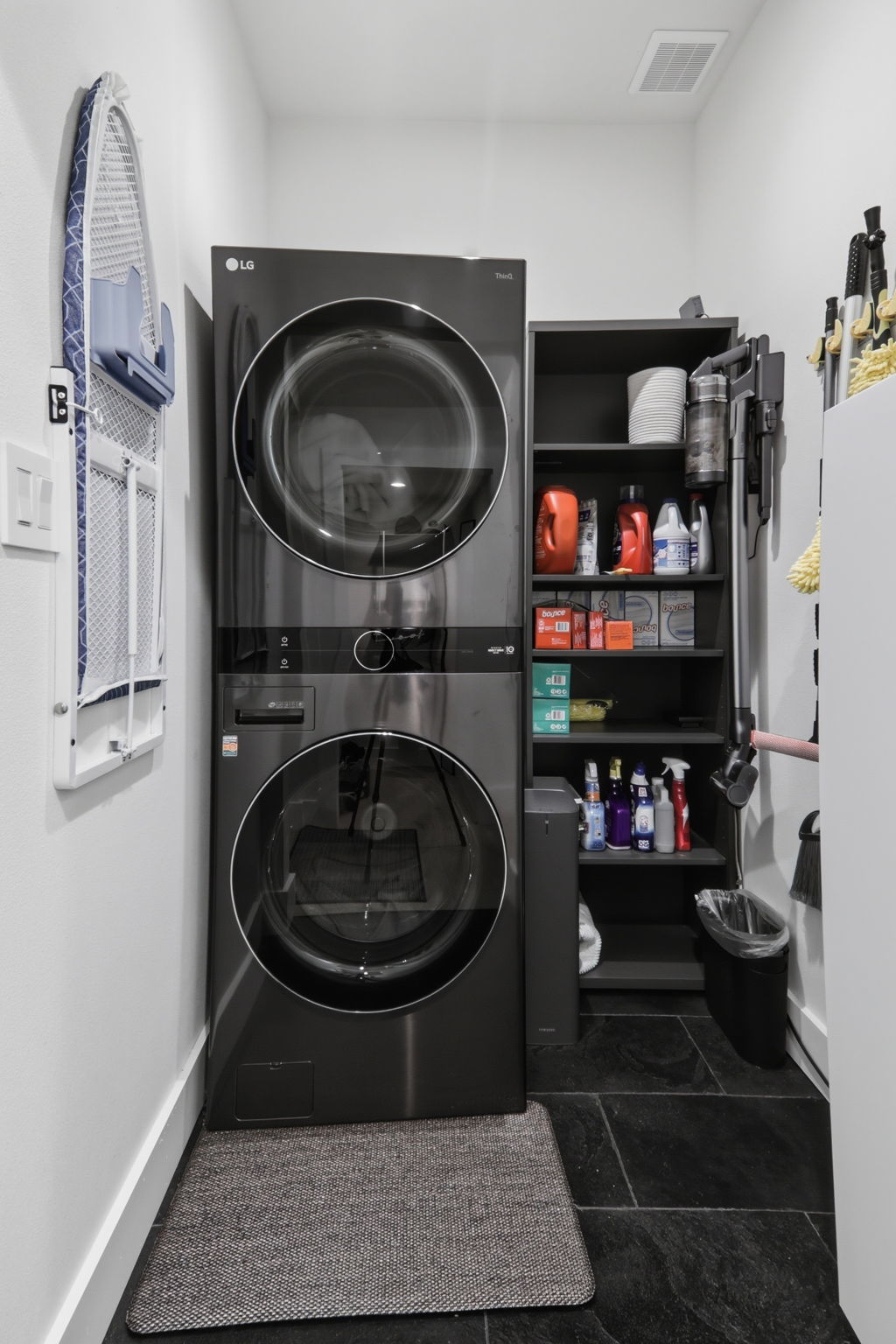 - Built-In Electric Oven, Bar Fridge, Dryer, Washer/Dryer Stacked, Dishwasher, Microwave, Refrigerator, Washer, Built-In Electric Range