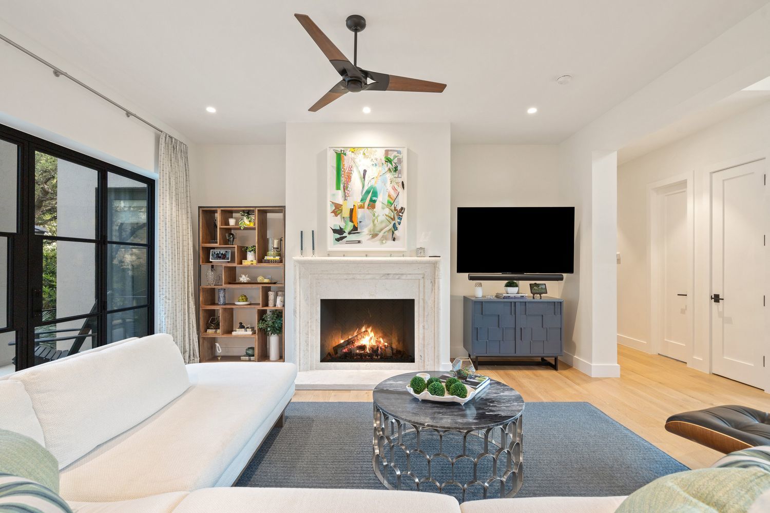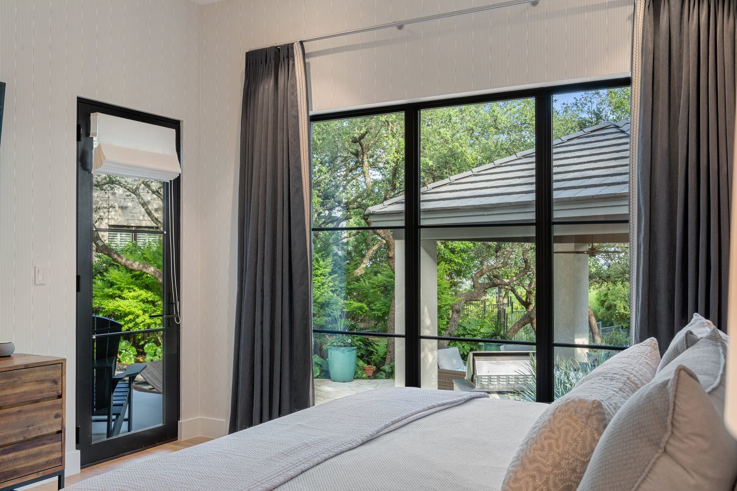 Located within the prestigious gated enclave of Governors Hill in Barton Creek, this completely renovated-to-the-studs Heyl Homes residence offers an exceptional blend of architectural integrity, modern luxury, and effortless living. Thoughtfully reimagined by Steven Radke of Vinson Radke Homes with interiors curated by Glennis Woods, the home reflects meticulous craftsmanship and a refined, cohesive design throughout—complemented by recent exterior stonework, roof, driveway that enhance both its presence and longevity. Inside, expansive living and dining spaces are bathed in natural light through dramatic steel floor-to-ceiling windows, creating a seamless indoor-outdoor connection and framing views of the lush grounds. Warm wood flooring and designer finishes anchor the open layout. The chef’s kitchen is a standout, featuring custom walnut cabinetry, Wolf and Sub-Zero appliances, a Miele coffee system, and a striking quartzite-clad island designed for both everyday living and entertaining. The main-level primary suite is a true sanctuary, offering a spa-inspired bath with terrazzo floors, a freestanding soaking tub, and a bespoke walk-in closet. Additional highlights include a sophisticated bar room, media lounge or oversized bedroom, game room, and two upstairs ensuite guest suites—each thoughtfully designed for comfort and privacy. Outdoors, an ample, beautifully landscaped backyard delivers a private, resort-style experience. A self-cleaning pool and spa invite year-round enjoyment, while a custom cabana with fireplace and fully equipped outdoor kitchen create an ideal setting for effortless entertaining. Mature trees and thoughtful landscaping provide a serene Hill Country backdrop, completing this exceptional indoor-outdoor lifestyle. Designed for those who value an elevated design, and lock-and-leave convenience, this remarkable residence presents a rare opportunity to own a fully reimagined home in one of Austin’s most coveted resort-style communities.