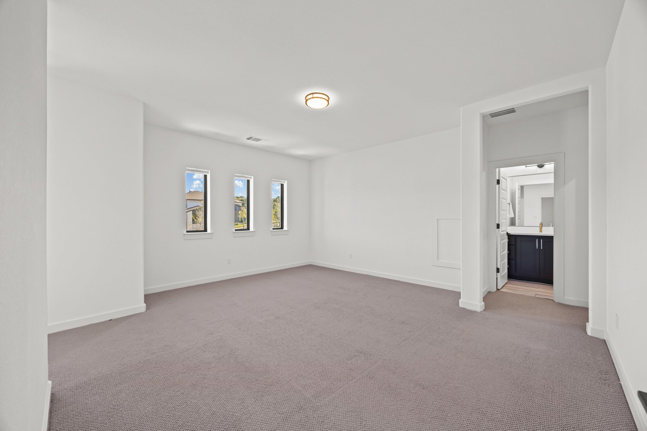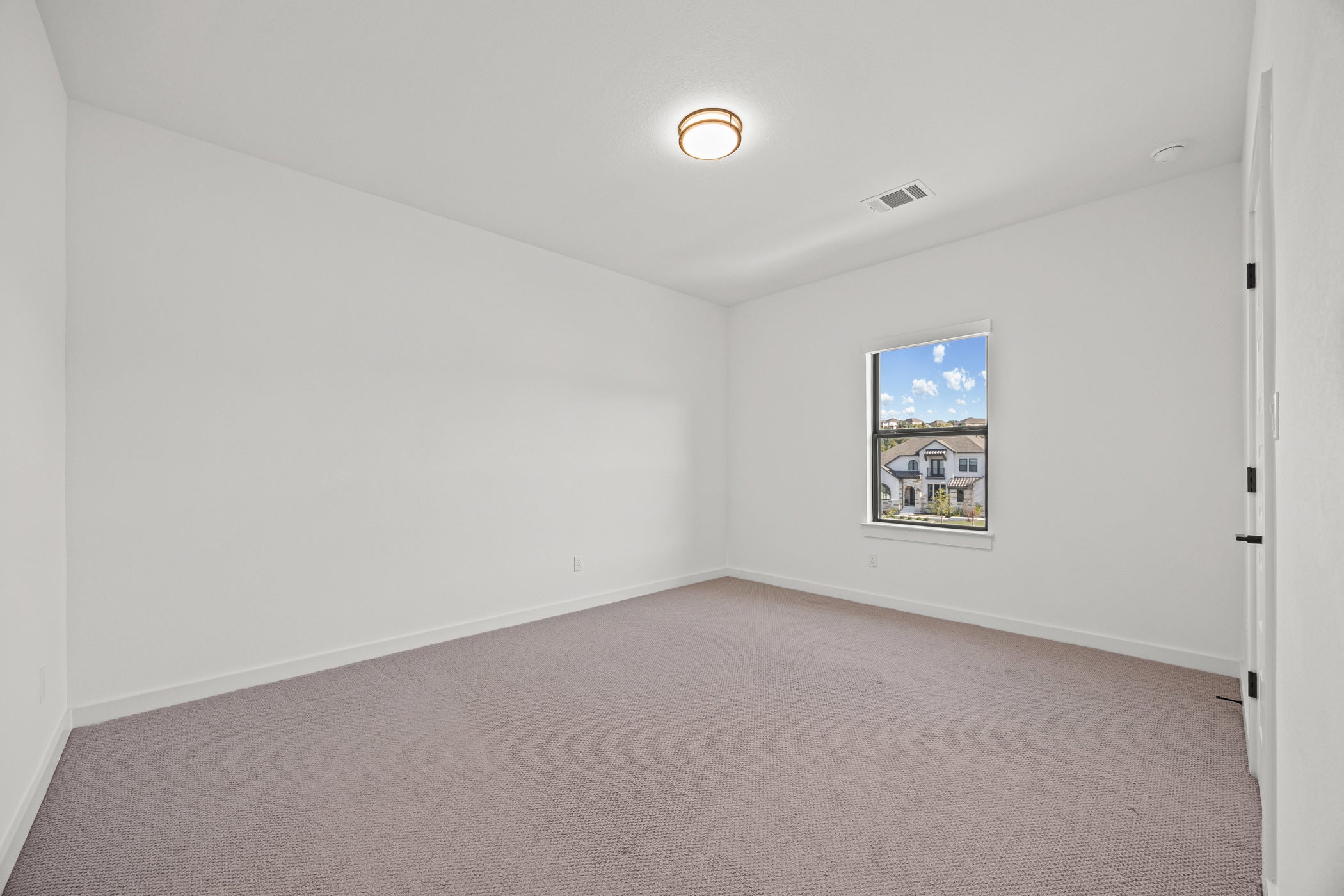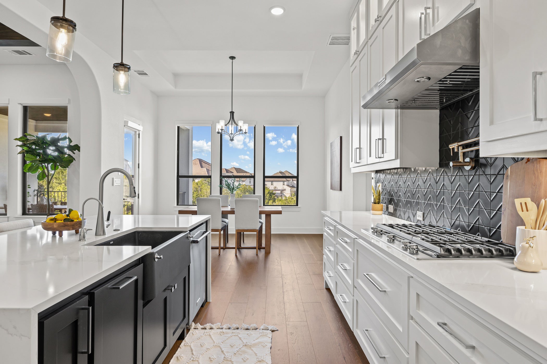 North-East facing 2023 Drees Custom Home on over half an acre, backing to a private greenbelt with no rear neighbors and Hill Country views. One of the final Drees homes built in Travisso with over $200,000 in upgrades. The main level includes a private primary suite, kitchen with large walk-in pantry, a guest bedroom/MIL suite with full en-suite bath, a dedicated large office, two dining areas, and an oversized laundry/utility room. Open living area feature high ceilings, abundant natural light, fireplace, and motorized shades throughout. The balcony opens from the dining area and overlooks the greenbelt. The upper level includes three additional bedrooms, each with a dedicated full bathroom, a family/game room, and a separate media room. A second balcony provides additional Hill Country views. Oversized lot offering privacy on all three sides of the home, with room for a pool (see renderings in photos) and outdoor living, while maintaining greenbelt views. Located in award-winning Leander ISD and just minutes from Travisso’s resort-style amenities, this exceptional property offers a rare combination of privacy, thoughtful layout, luxury finishes, and breathtaking Hill Country scenery.