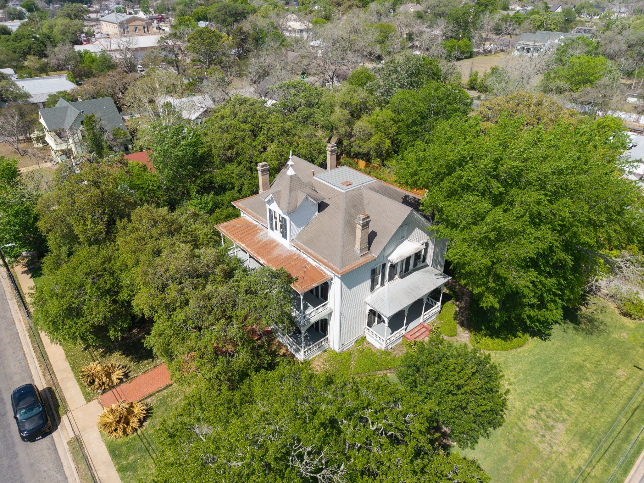 Steeped in history and architectural distinction, nestled on over half of an acre, with the most beautiful and majestic century oaks, the Kaulbach–Wilson Home is a rare offering dating to 1885. This Recorded Texas Historic Landmark showcases timeless Victorian elegance with a two-story columned gallery, intricate woodwork, and a stately presence along one of the town’s most coveted streets. Rich in character, the home seamlessly blends original craftsmanship with enduring charm, including elements from an earlier structure incorporated into its design. Set in the heart of Fayette County and surrounded by La Grange’s treasured historic district, this iconic residence offers a unique opportunity to own a piece of Texas heritage ideal as a refined private home or an exceptional investment property. This home is one to see, you cannot appreciate its beauty simply through photographs. Within walking distance to the downtown square and a short drive to the renown nearby town of Round Top.